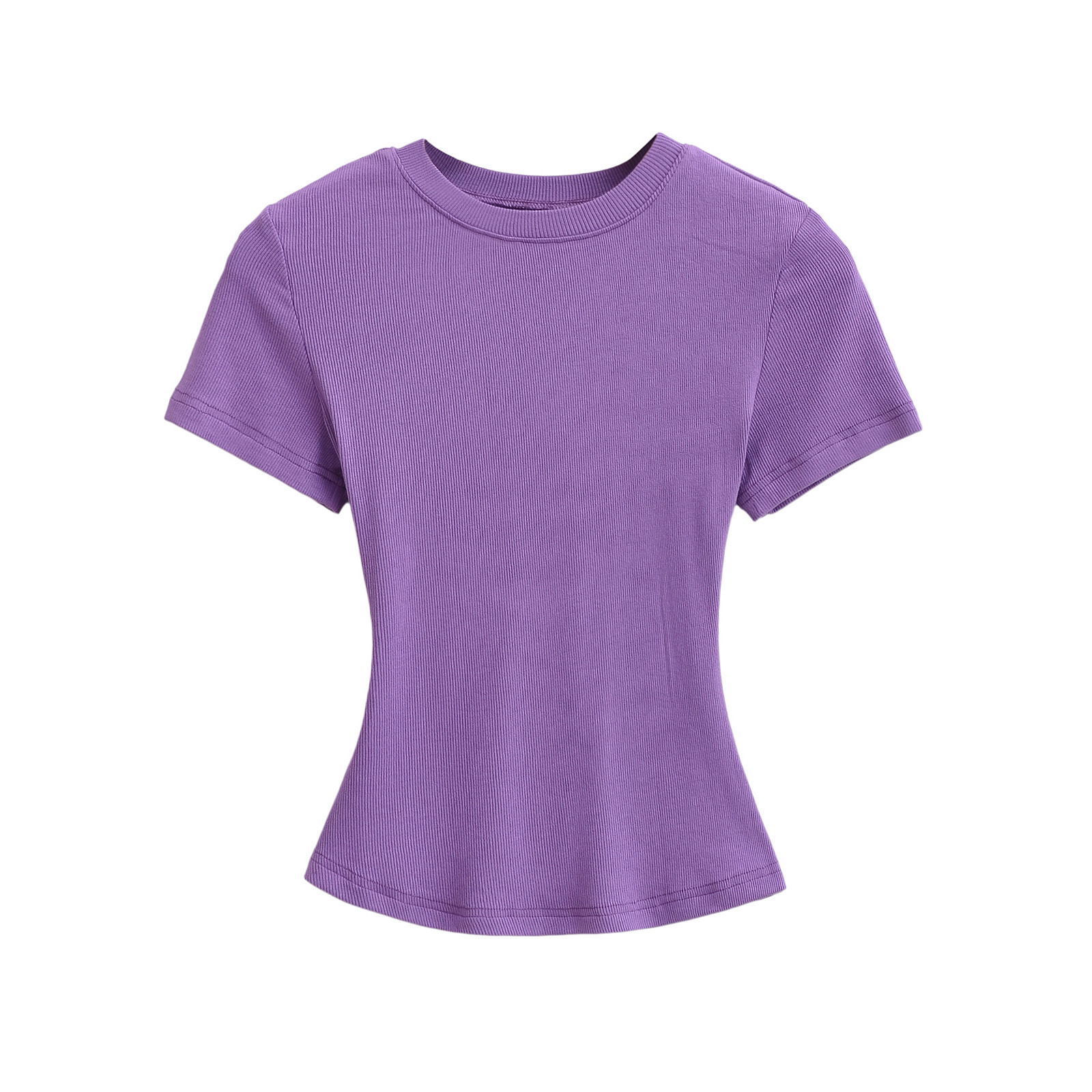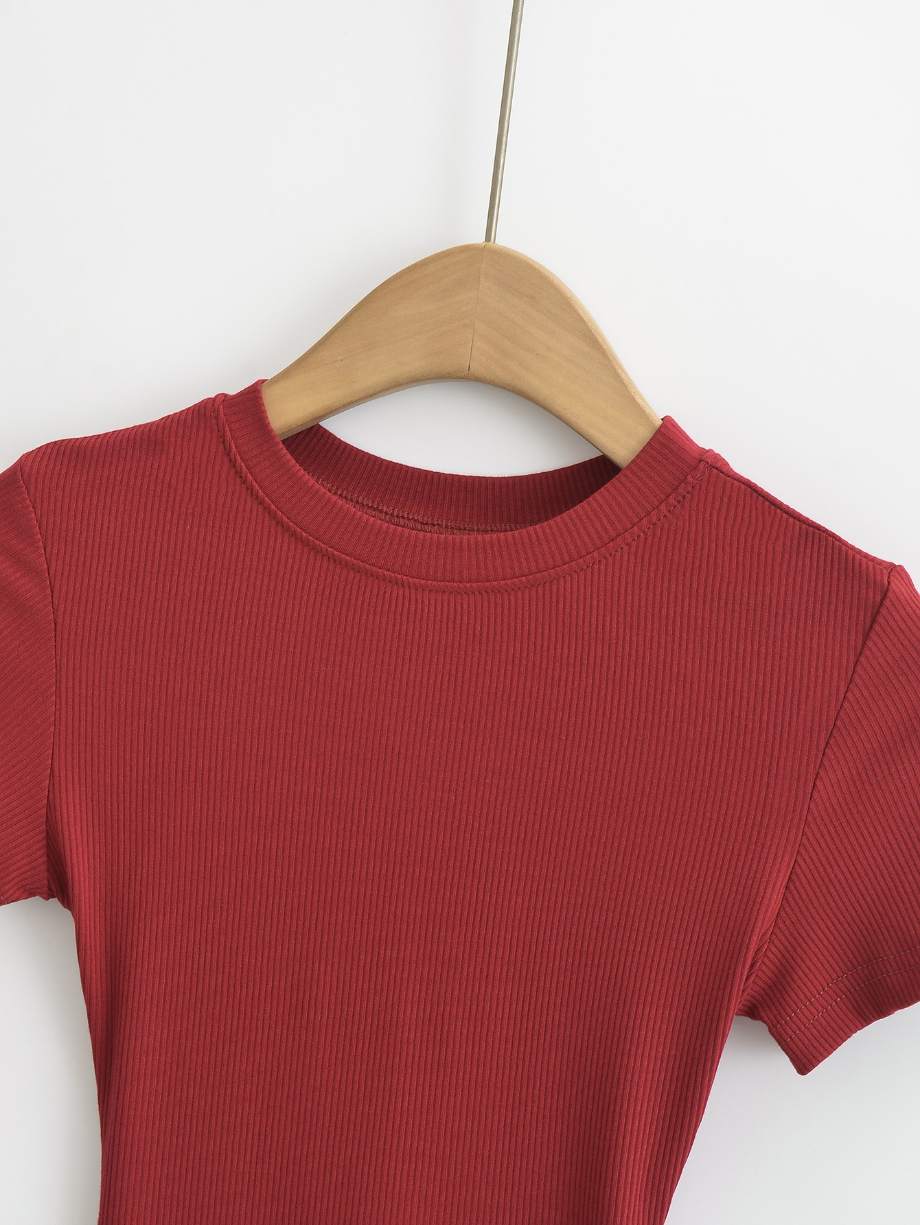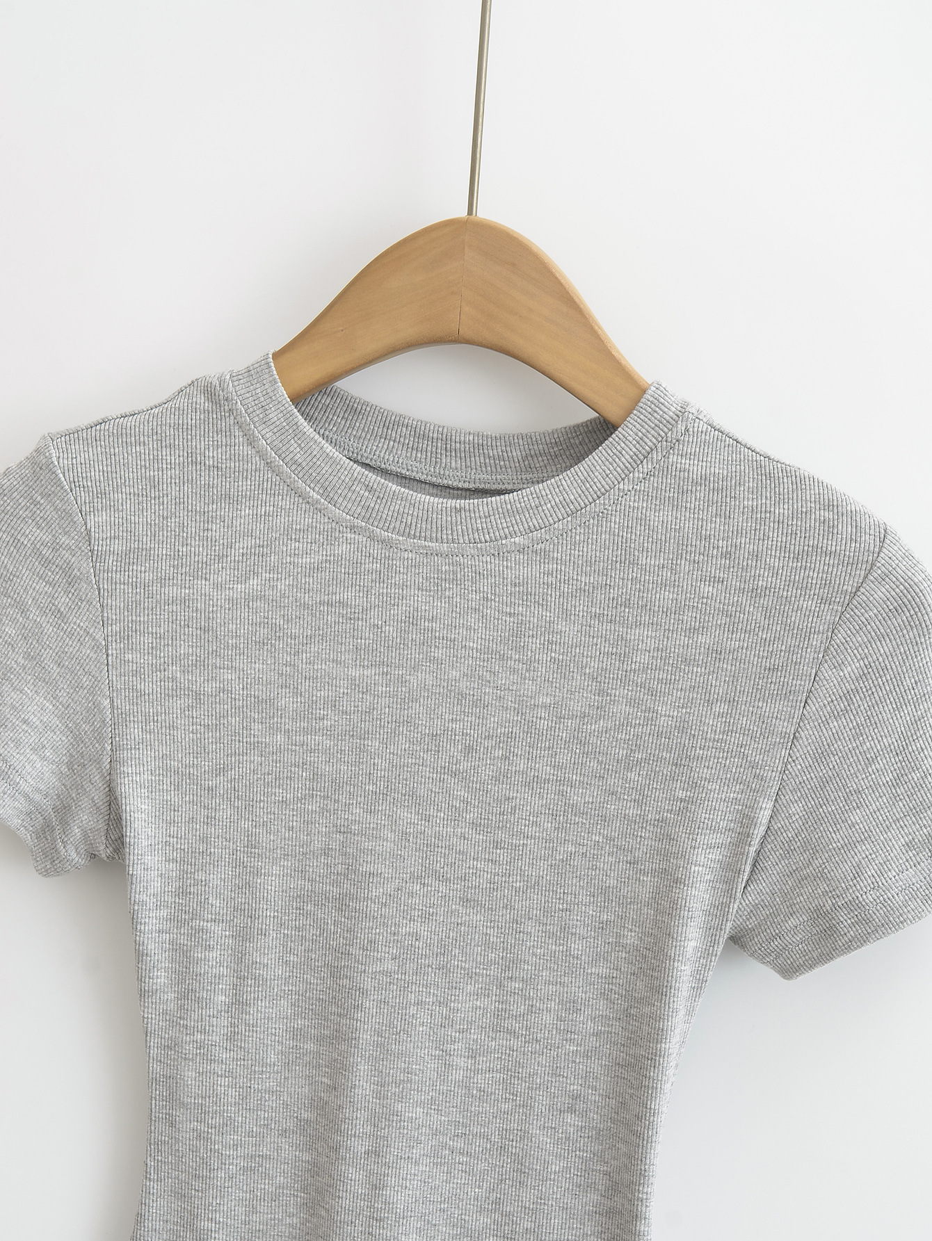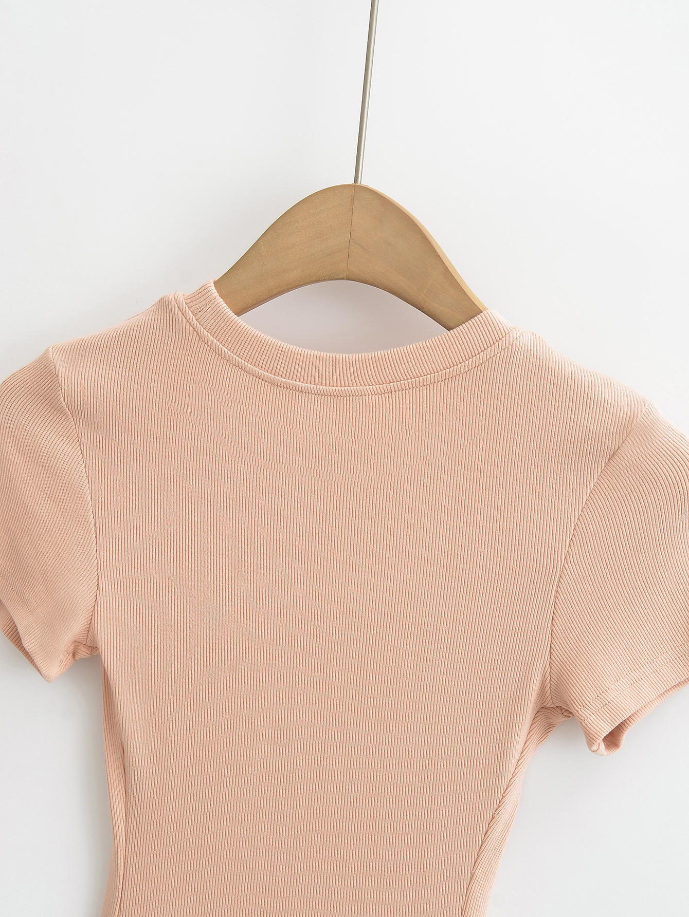 유럽과 미국의 카다시안 스타일 섹시한 작은 둥근 목 반팔 티셔츠 여성의 2024 여름 스킴 단색 기본 스레드 탑