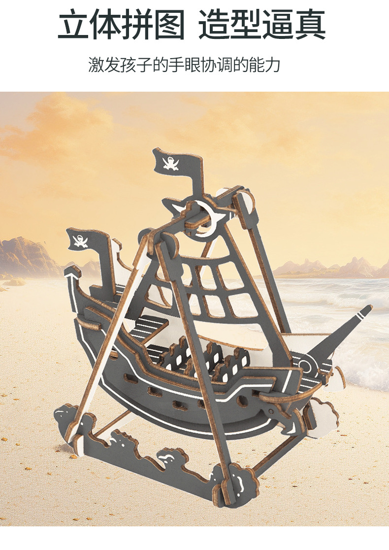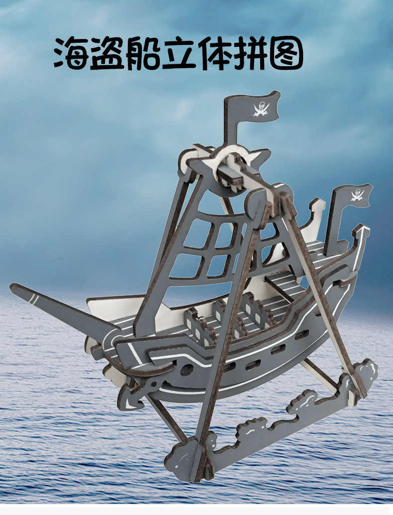 해적 선박 모델 나무 퍼즐 3d 모델 장난감 3 차원 퍼즐 손으로 삽입 된 마구간 도매스토어 가기