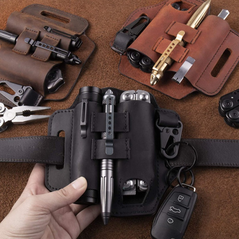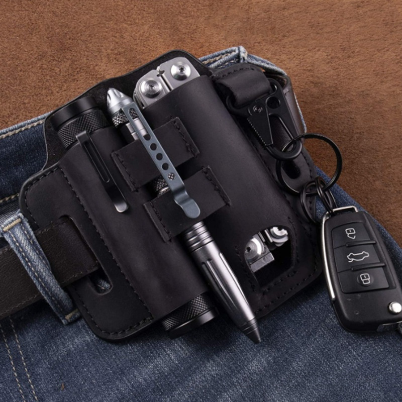 국경 간 야외 EDC 도구 세트 캠핑 손전등 허리 가방 키 체인 보호 커버 다기능 접이식 칼 커버