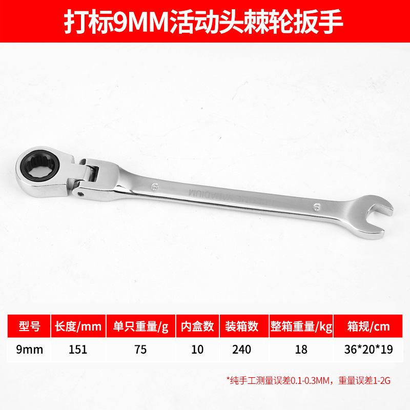 • 9mm 이동식 헤드 래칫 렌치 표시