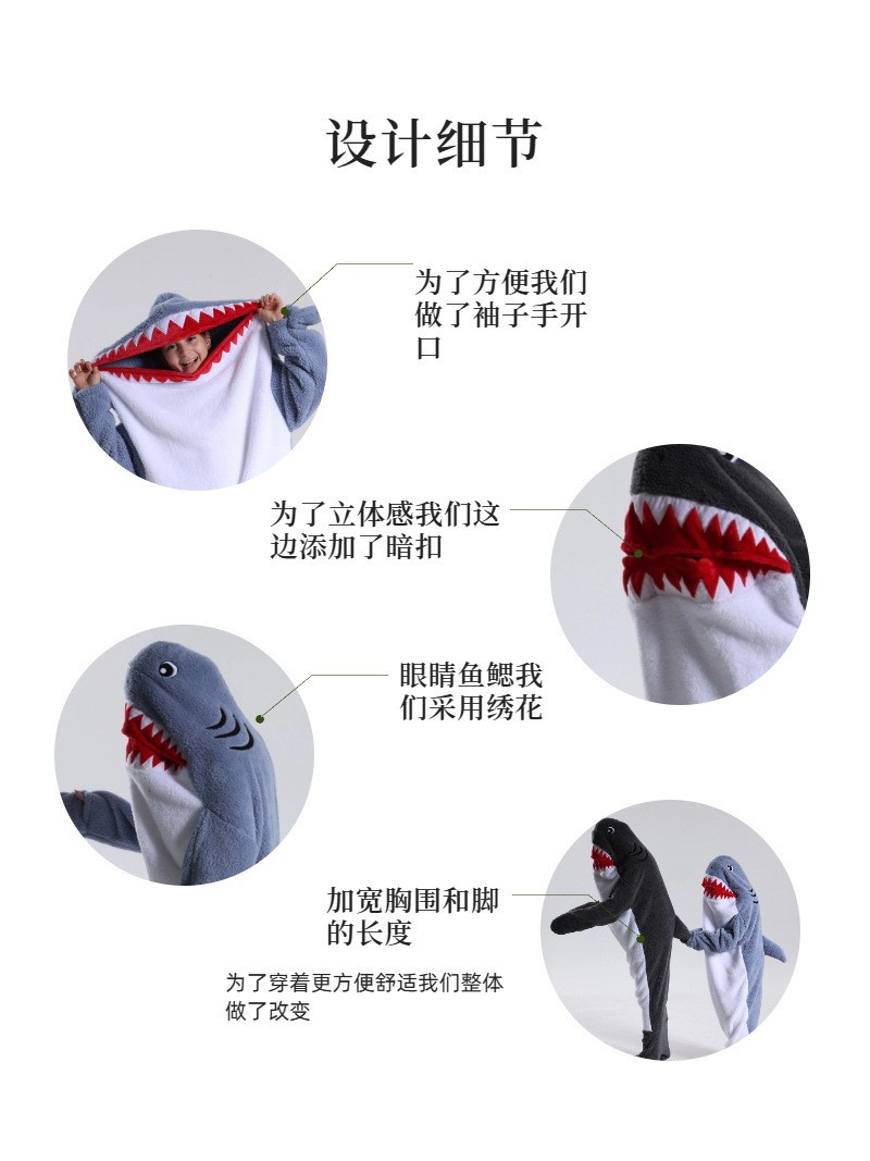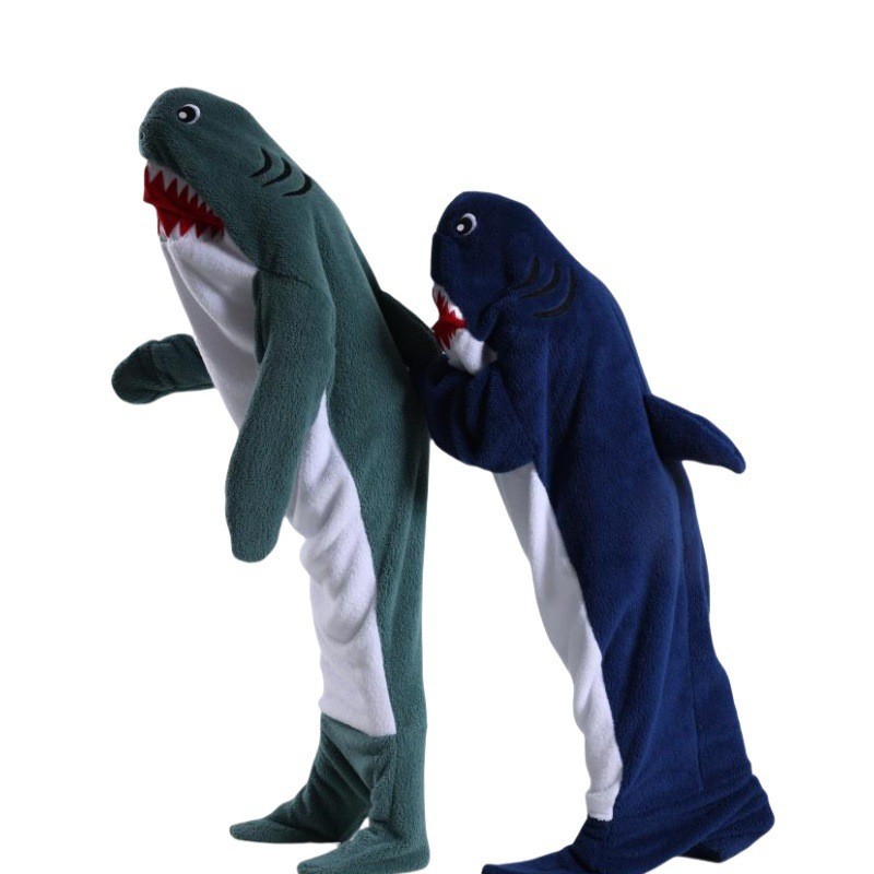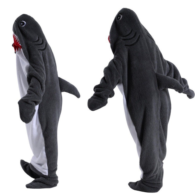 어른 슈퍼 소프트 돌고래 상어 담요 후드 상어 슬리핑 백 지금 느슨한 원피스 파자마를 입고