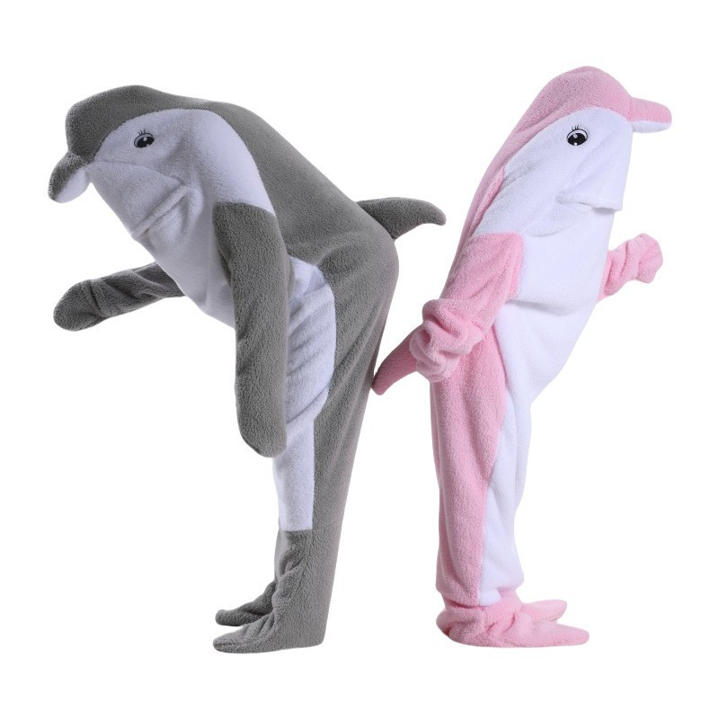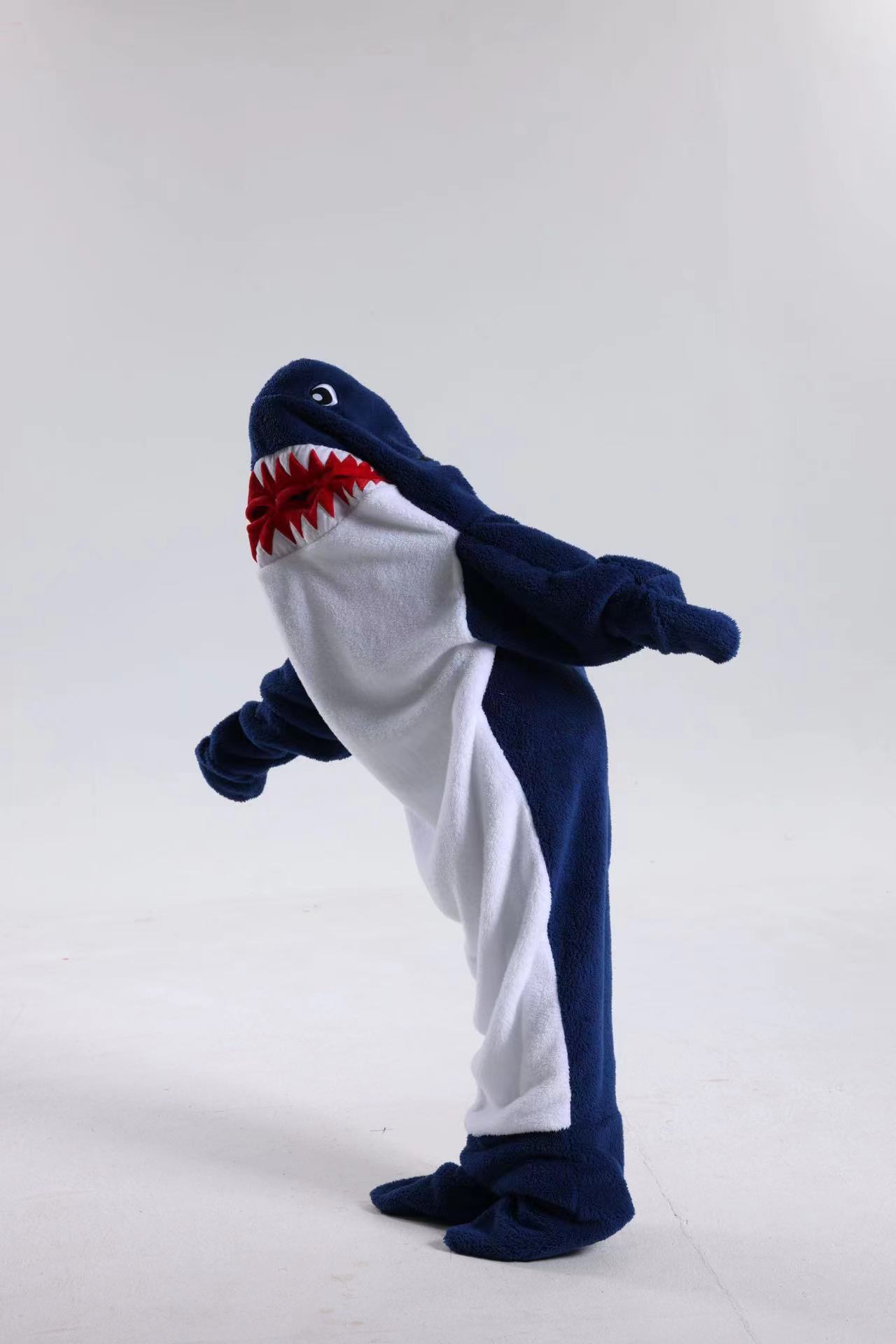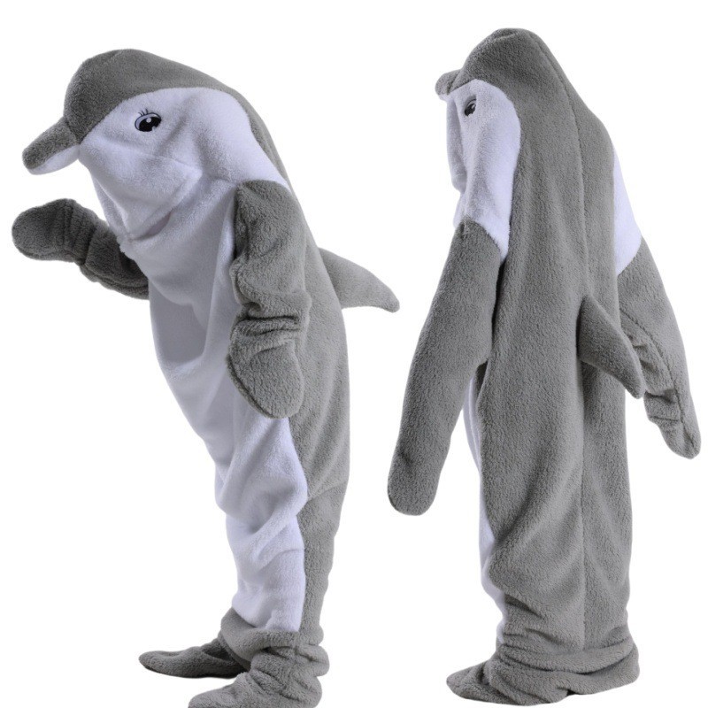 어른 슈퍼 소프트 돌고래 상어 담요 후드 상어 슬리핑 백 지금 느슨한 원피스 파자마를 입고스토어 가기