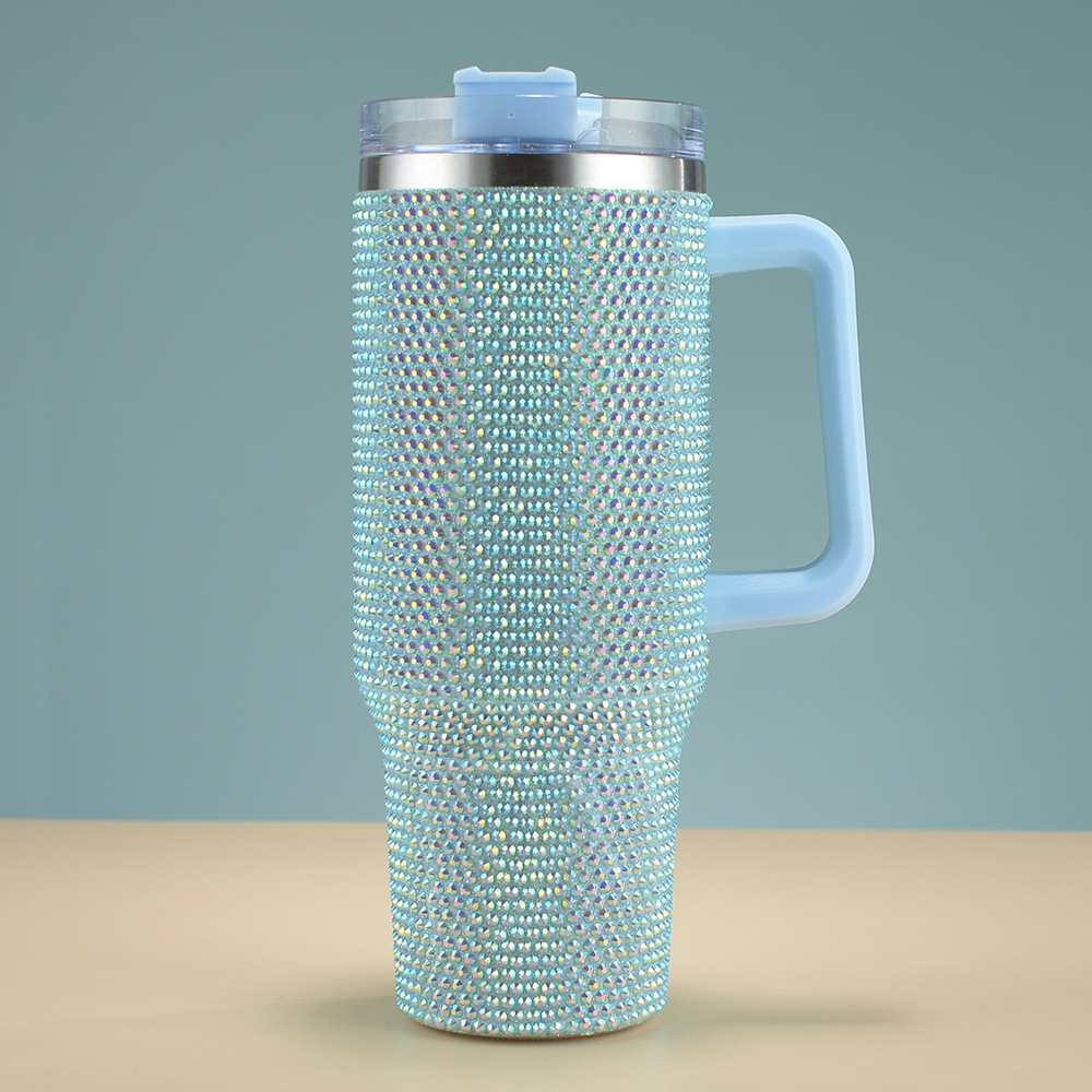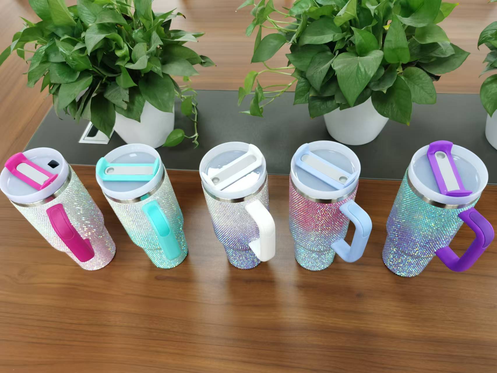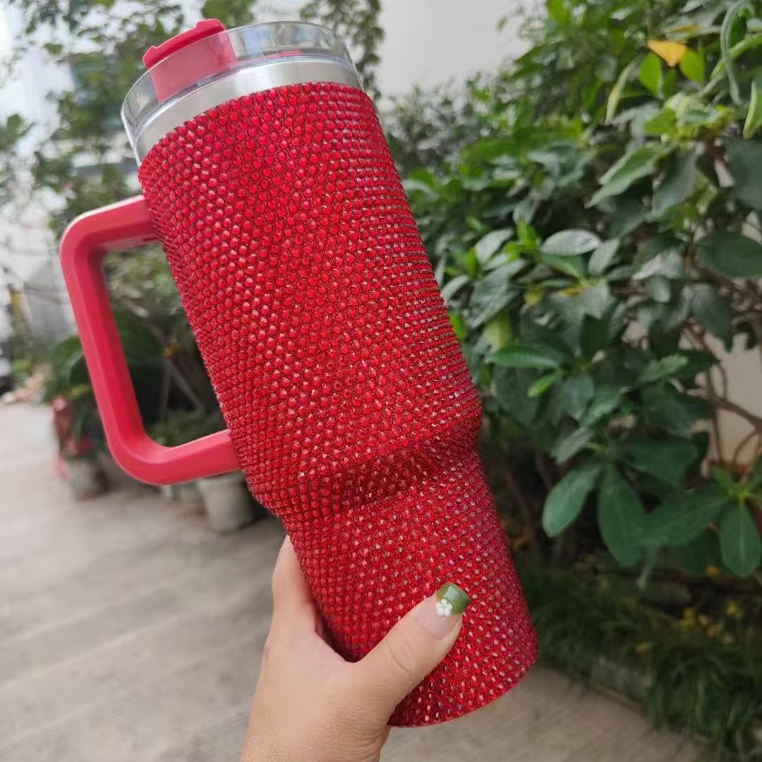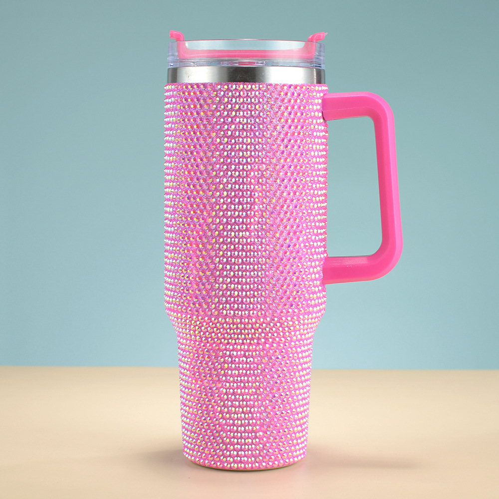 국경 새로운 40oz 다이아몬드 자동차 컵 이중 두꺼운 304 스테인레스 스틸 모조 다이아몬드 높은 색상 가치 보온병 컵 도매