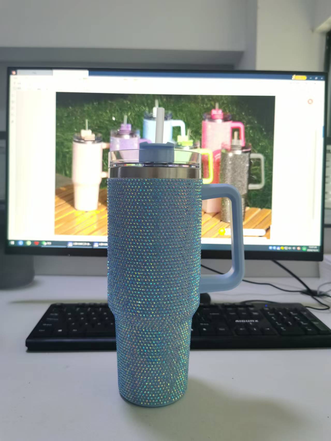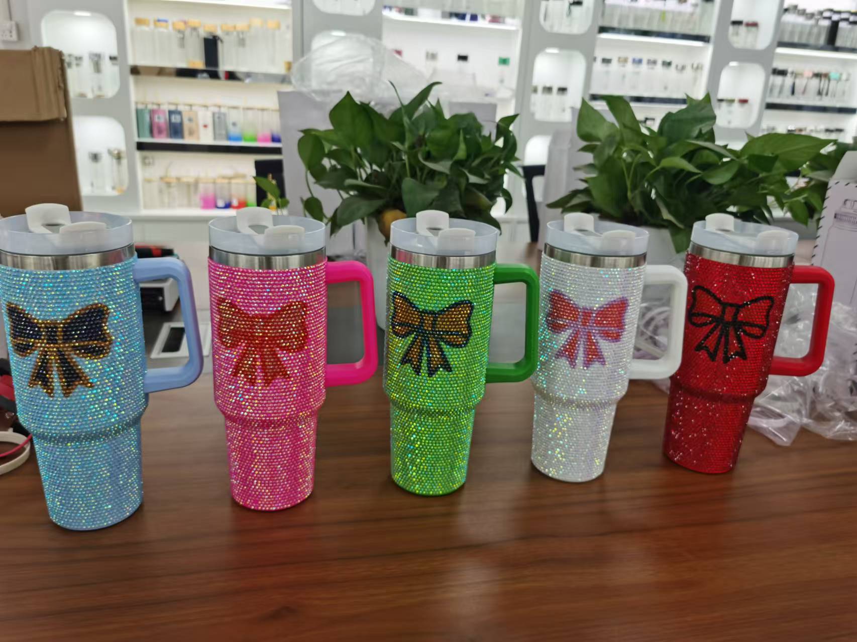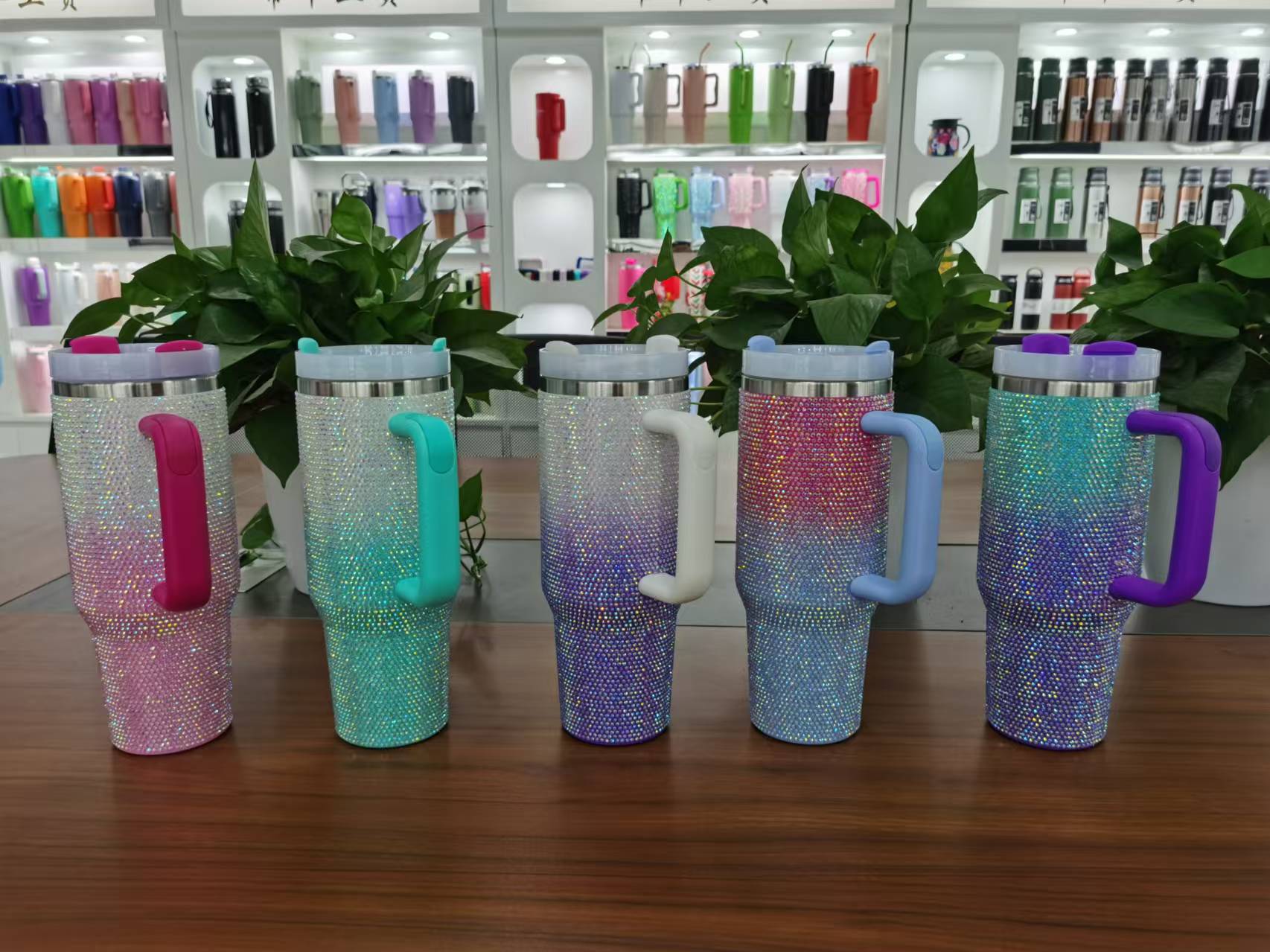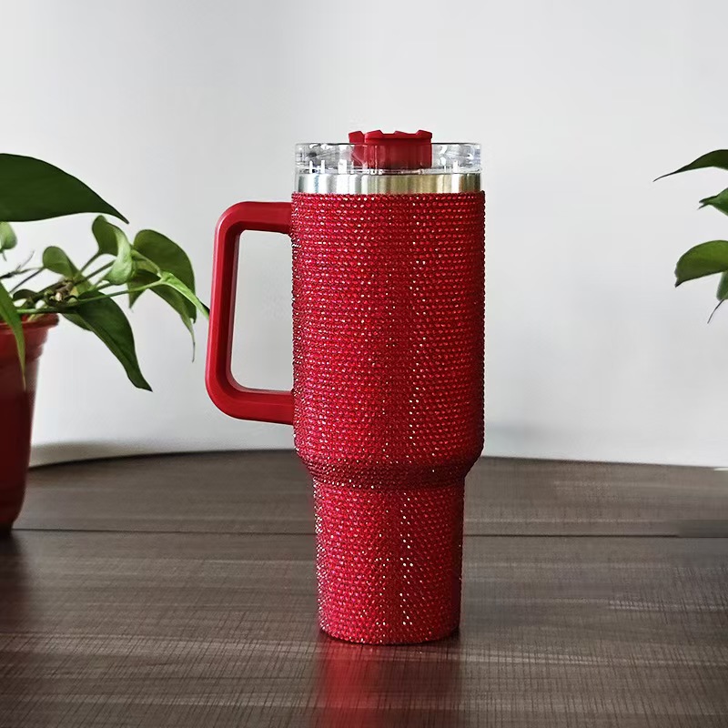 국경 새로운 40oz 다이아몬드 자동차 컵 이중 두꺼운 304 스테인레스 스틸 모조 다이아몬드 높은 색상 가치 보온병 컵 도매