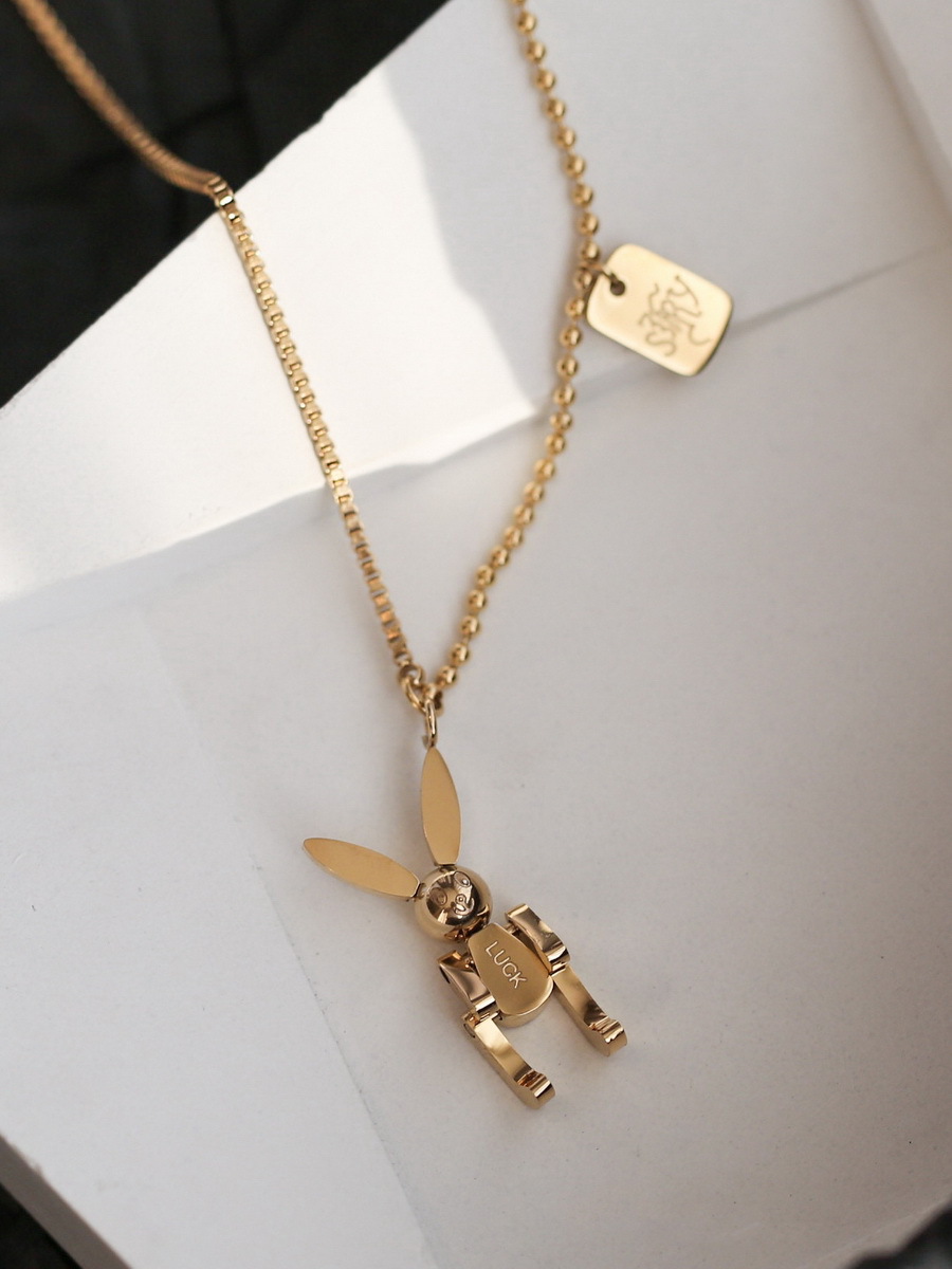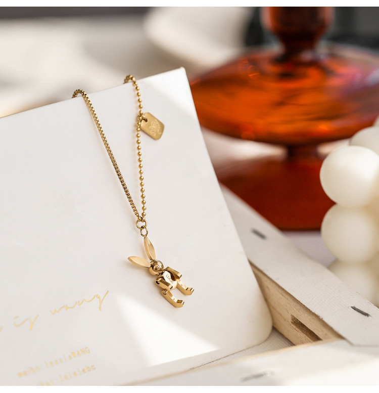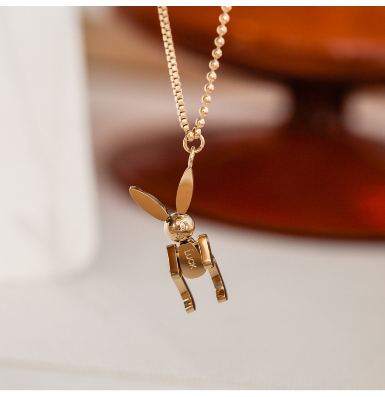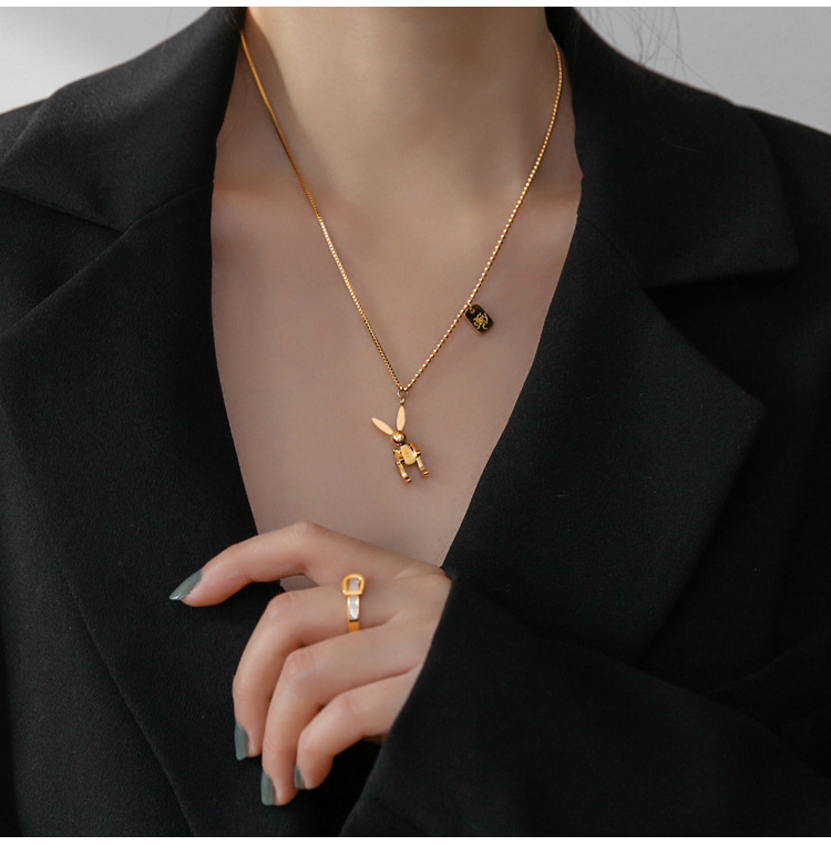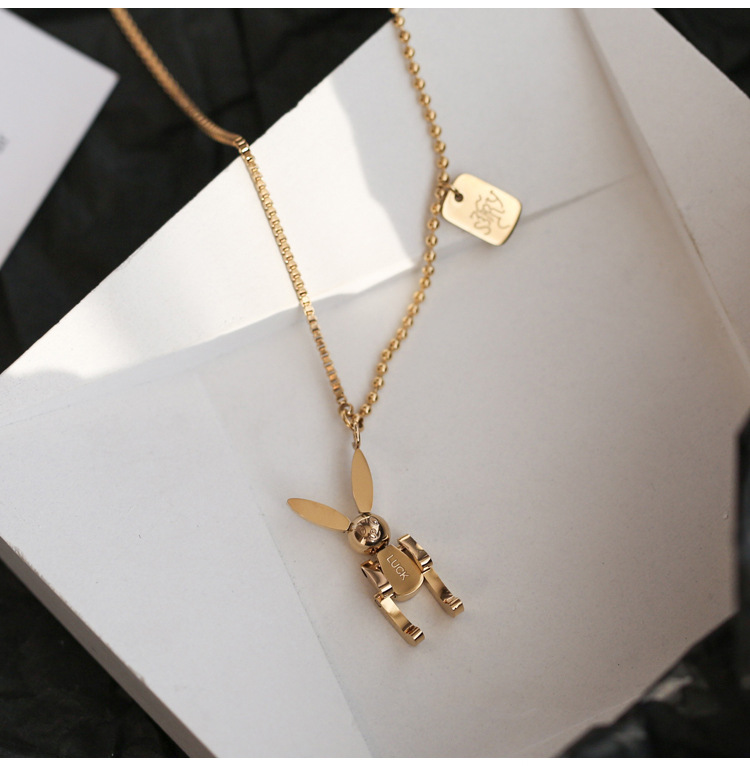 한국 스타일 간단한 기계 토끼 티타늄 강철 목걸이 여성 틈새 디자인 18k 황금 쇄골 체인 사이버 연예인 우아한 유행 보석