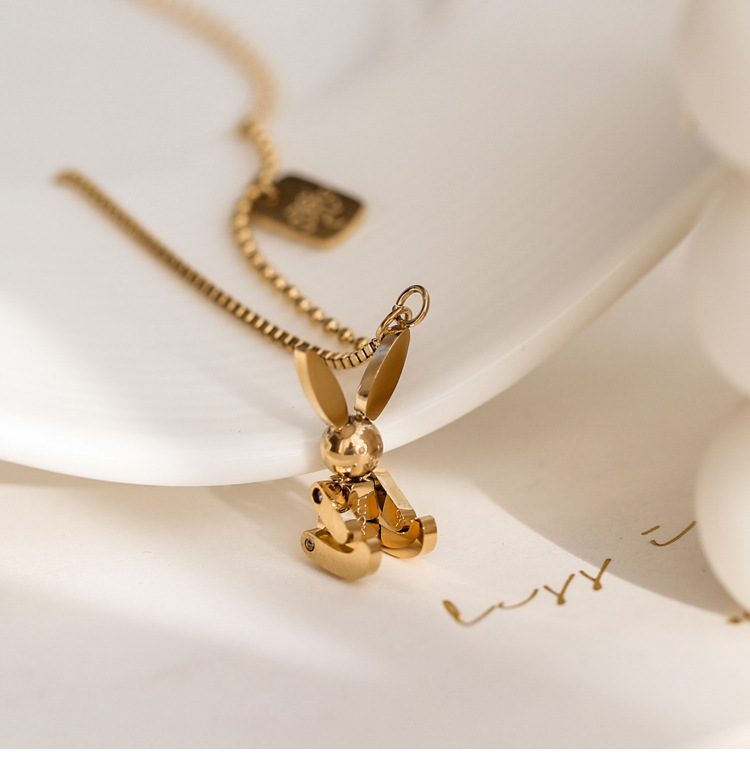 한국 스타일 간단한 기계 토끼 티타늄 강철 목걸이 여성 틈새 디자인 18k 황금 쇄골 체인 사이버 연예인 우아한 유행 보석스토어 가기