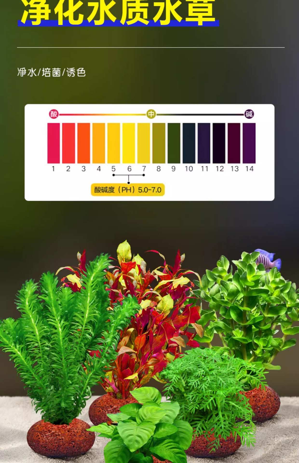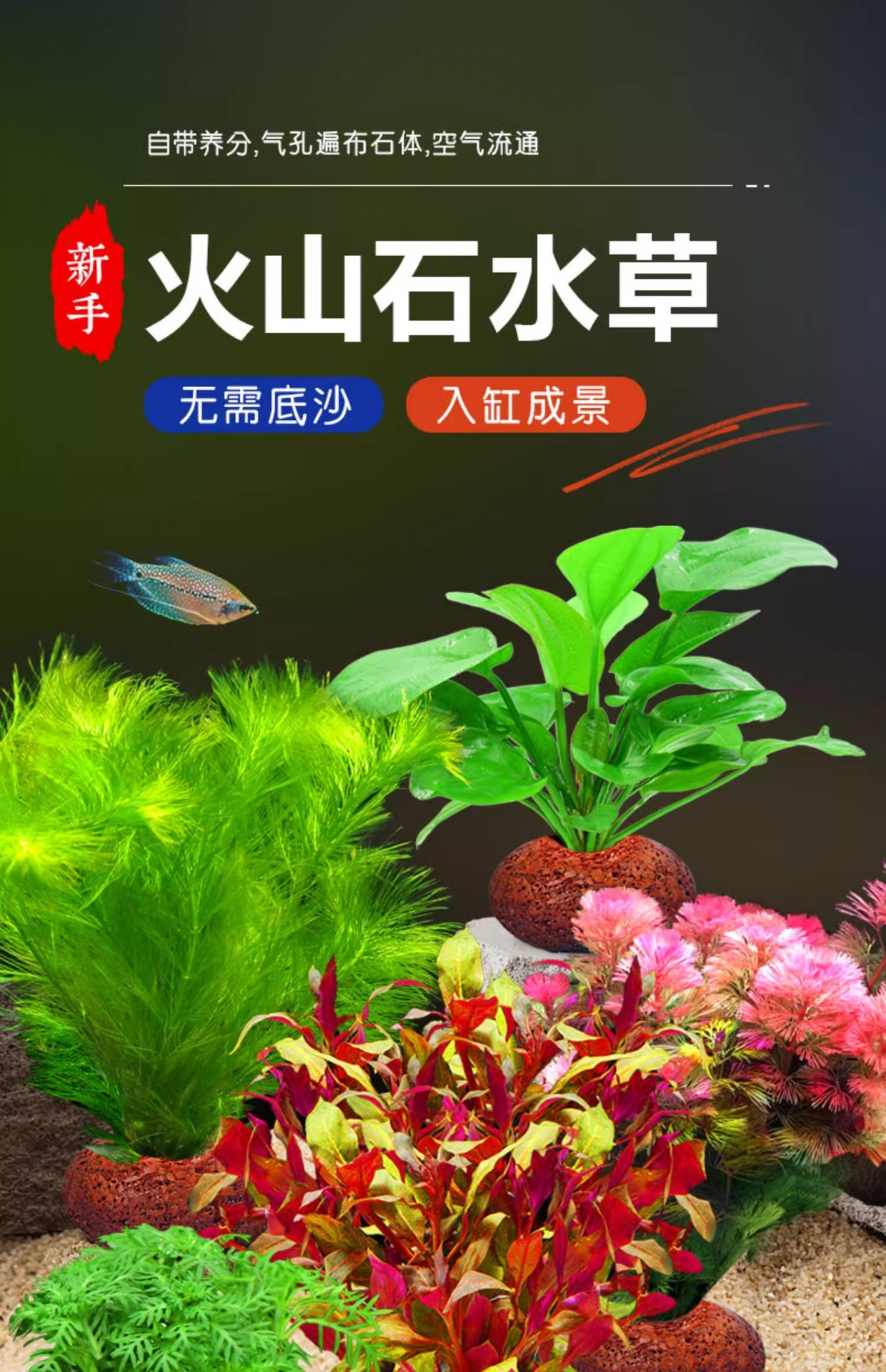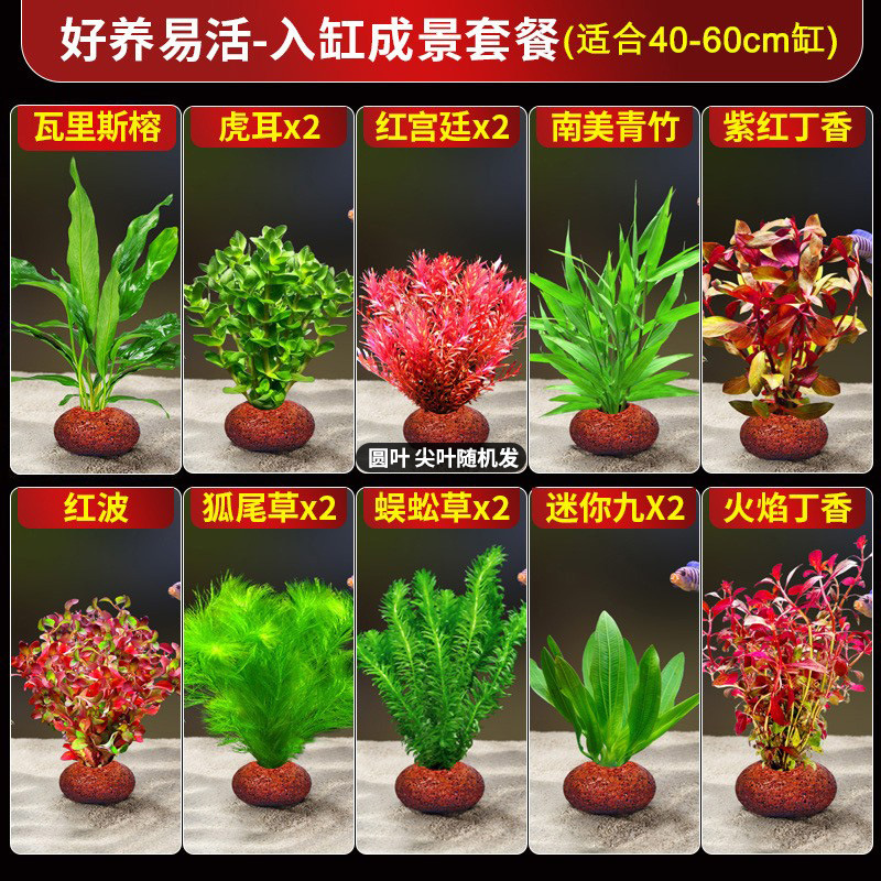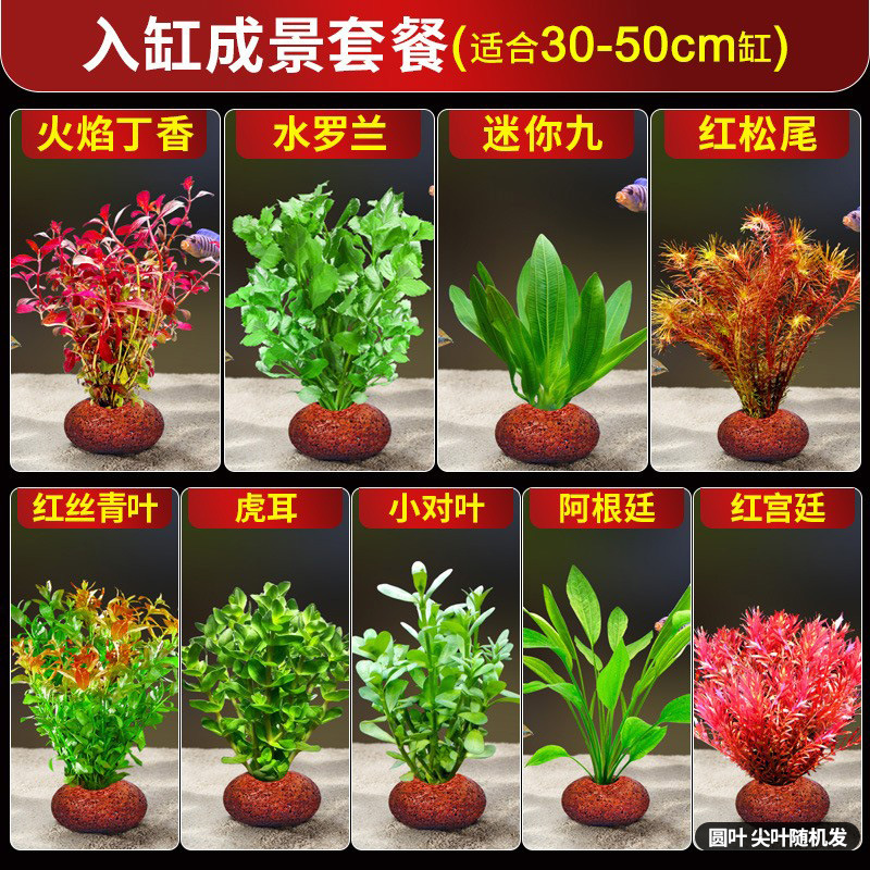 화산석 수초, 수조 조경, 실제 잔디, 수경 지렁이풀, 물망초, 음녹색 국화, 수질정화 패키지스토어 가기