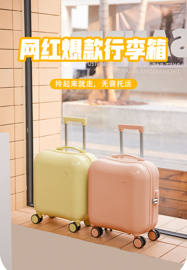 수하물 두꺼운 소형 경량 18inch 여행 가방 범용 휠 남성과 여성은 비밀번호 상자 트롤리 가죽 상자를 탑승할 수 있습니다스토어 가기