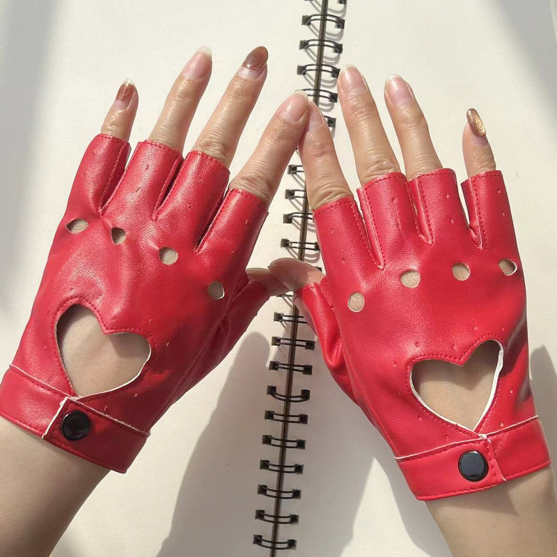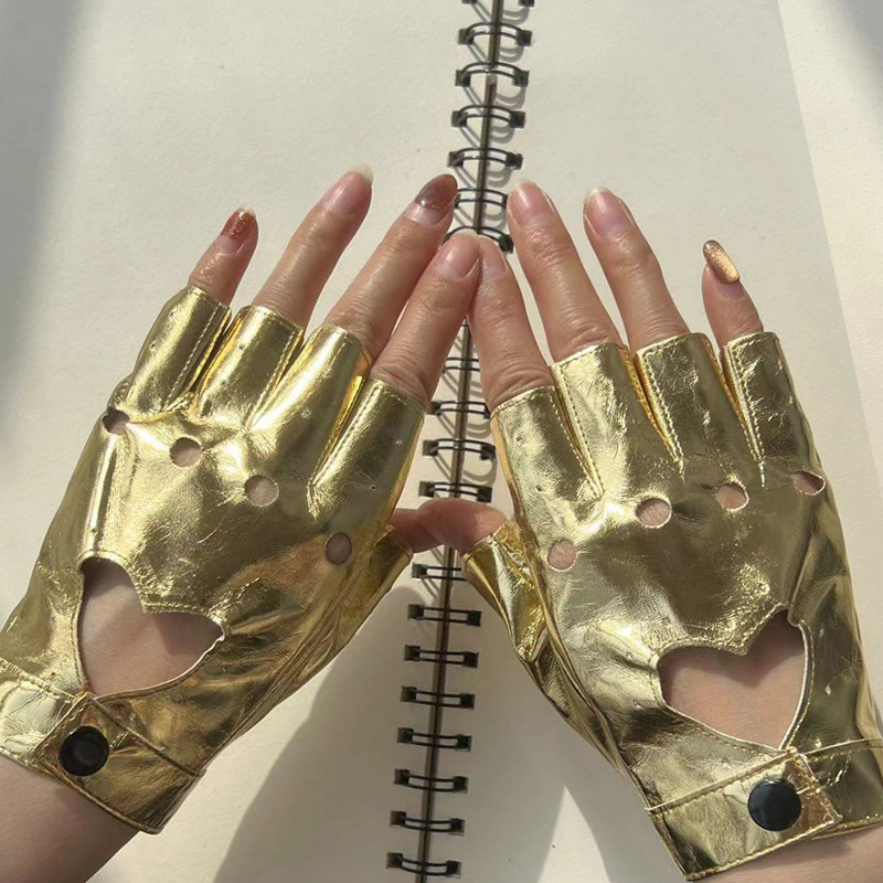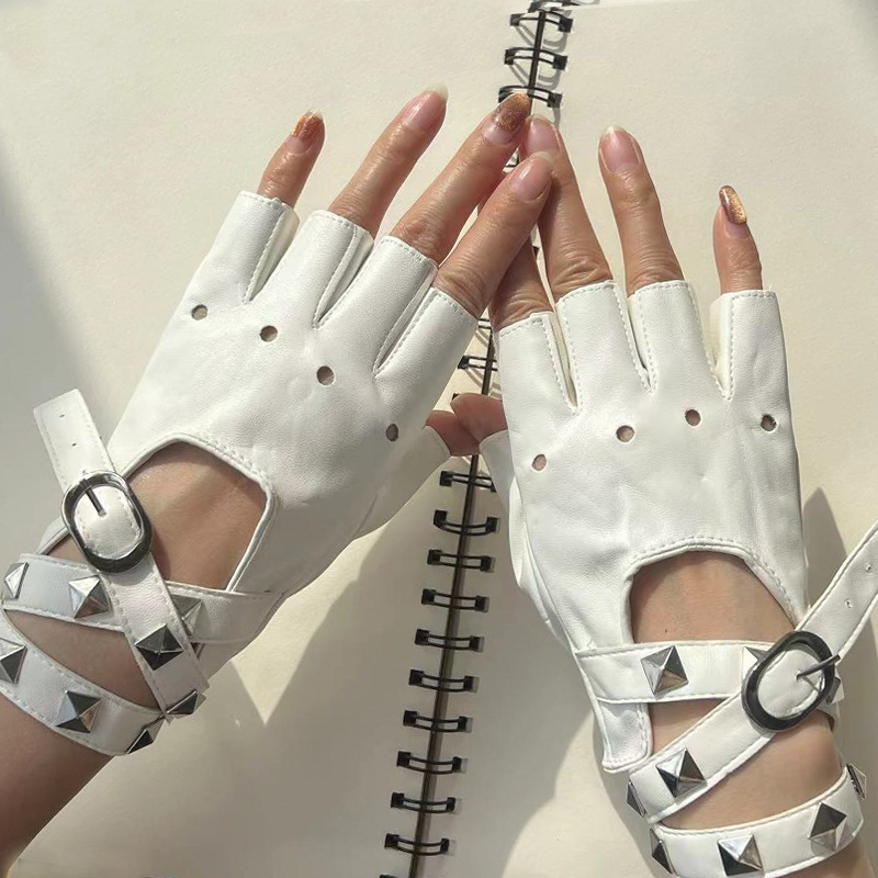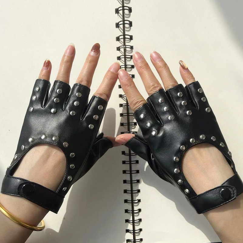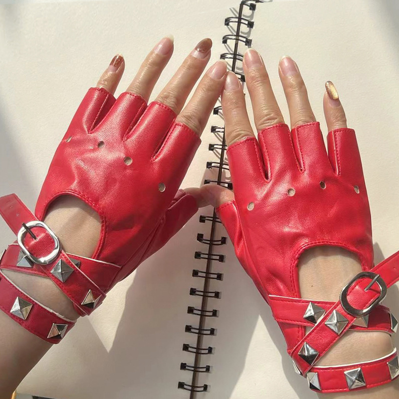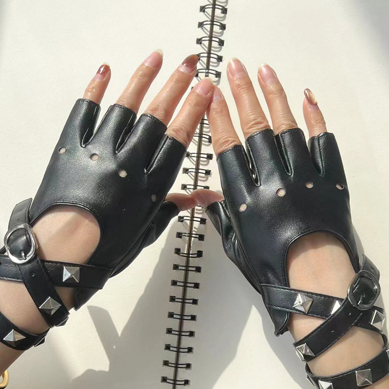 댄스 장갑 PU 쿨 리벳 체인 펑크 폴 댄스 스트리트 댄스 공연 여성 댄스 하프 핑거 장갑