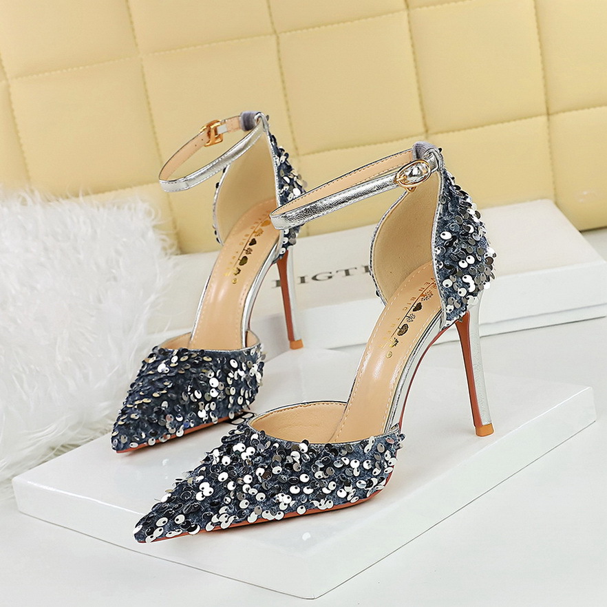 9868-1 얇은 발 뒤꿈치와 로우 컷 뾰족한 발가락 스파클링 스팽글 샌들이 달린 울트라 하이힐이있는 속이 빈 여성용 신발이 달린 하이힐스토어 가기