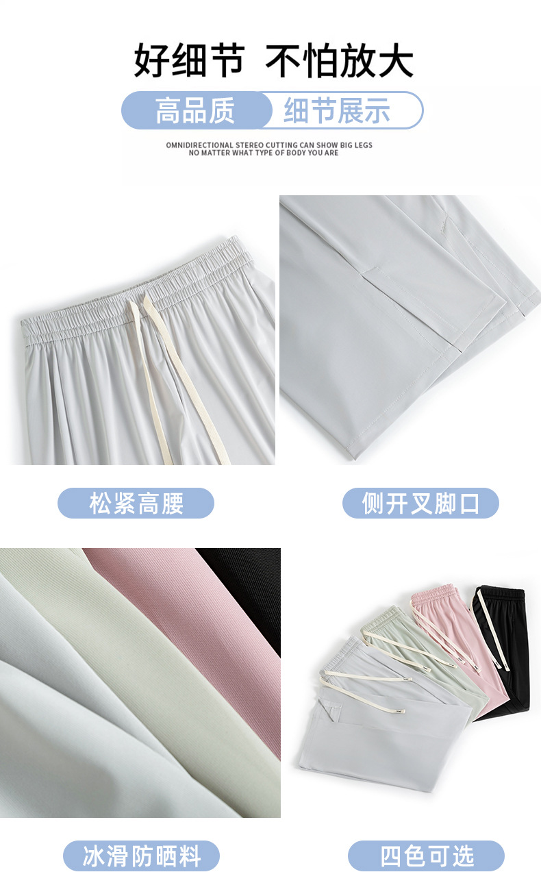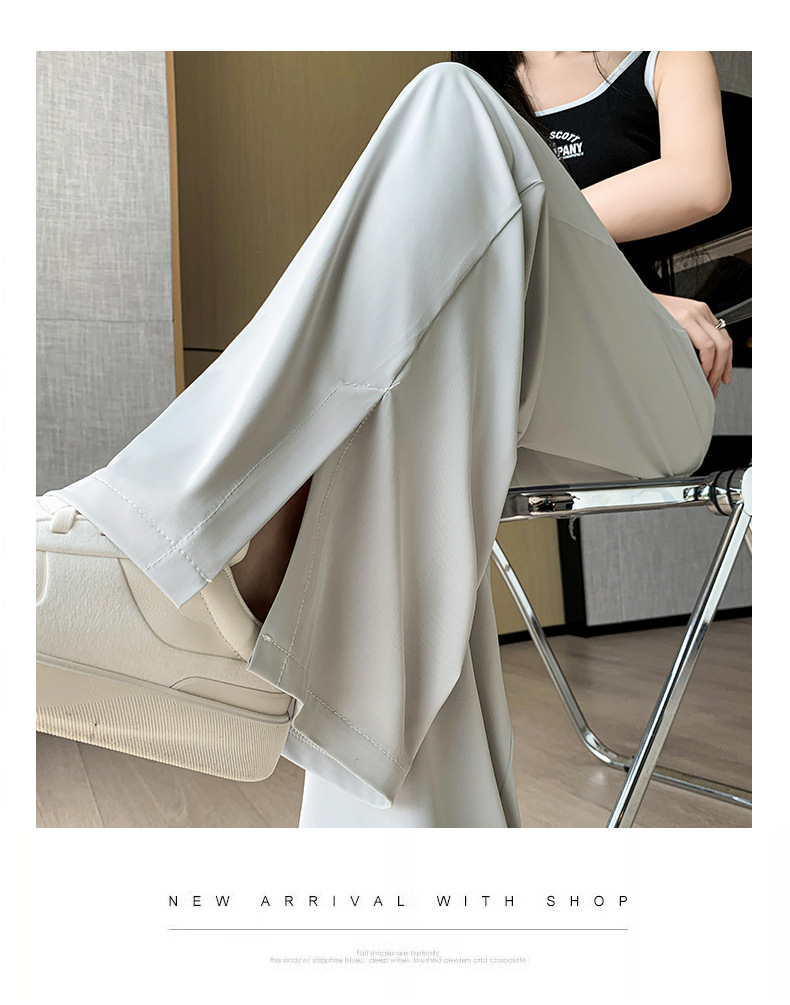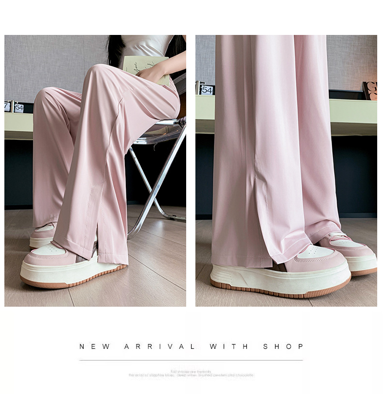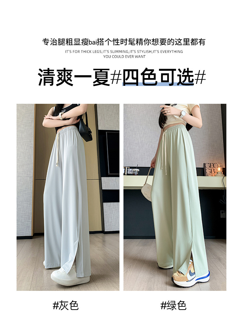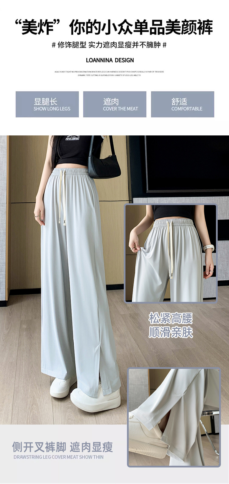 여름 자외선 차단제 와이드 레그 바지 여성용 플러스 사이즈 200kg 통통녀 하이 허리 슬리밍 사이드 스플릿 캐주얼 스트레이트 팬츠스토어 가기