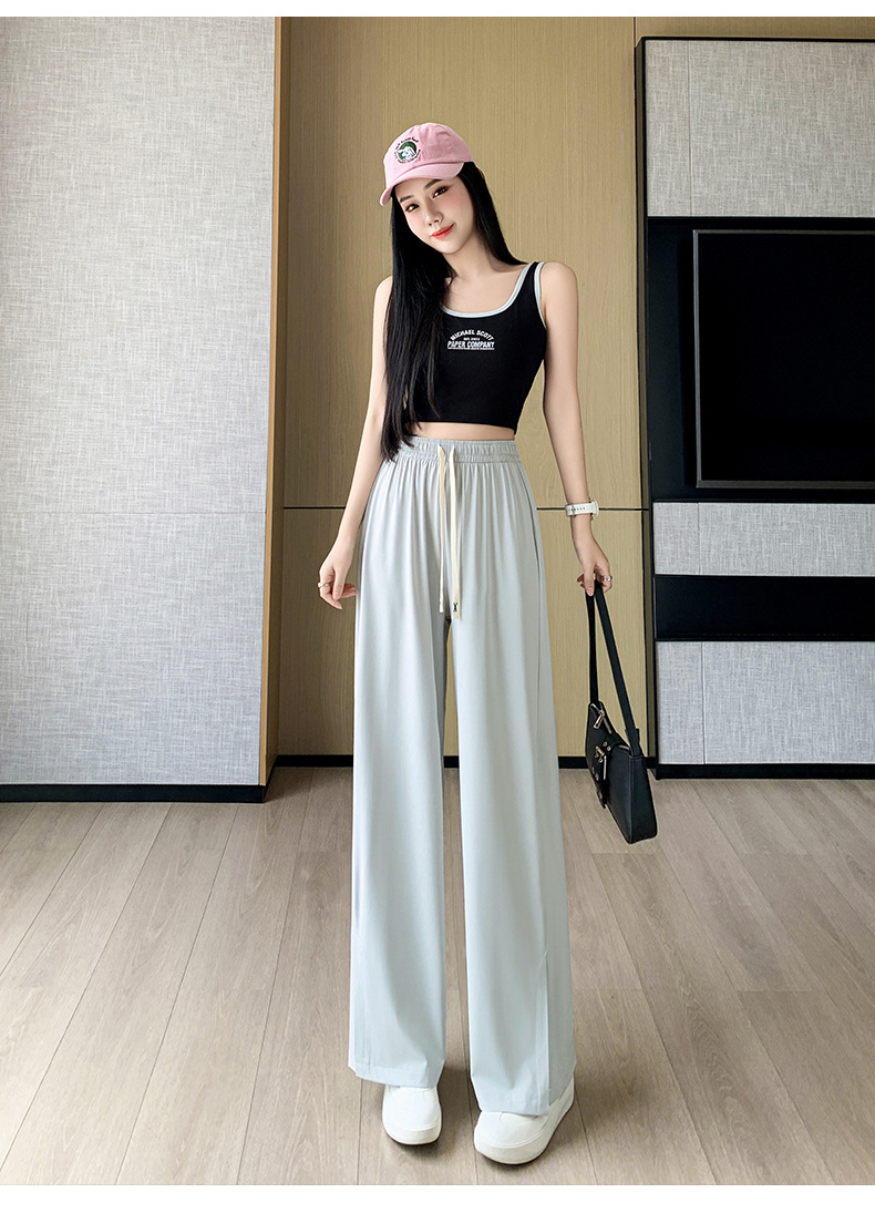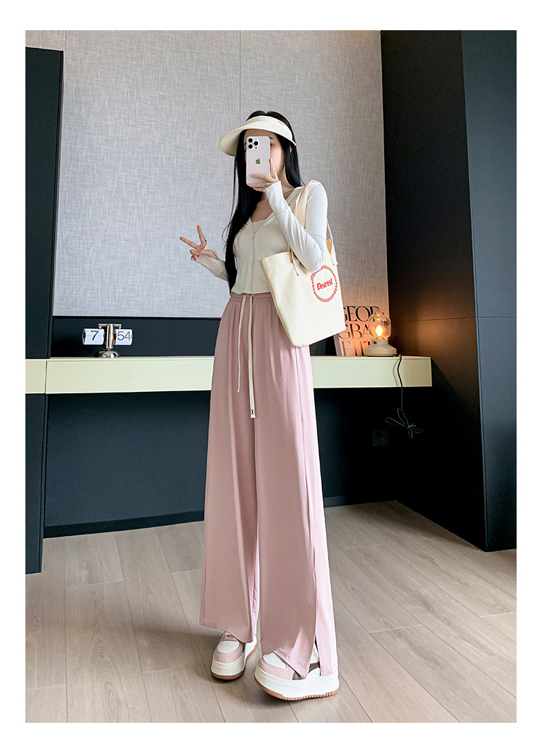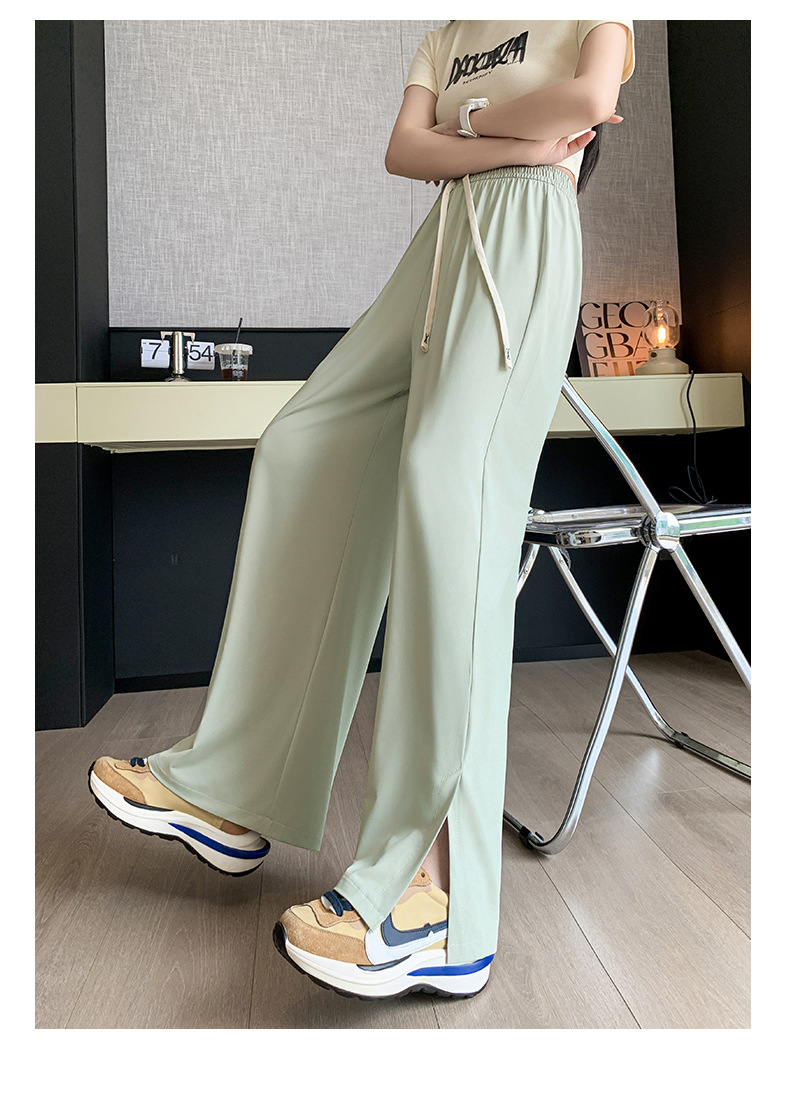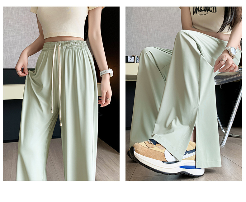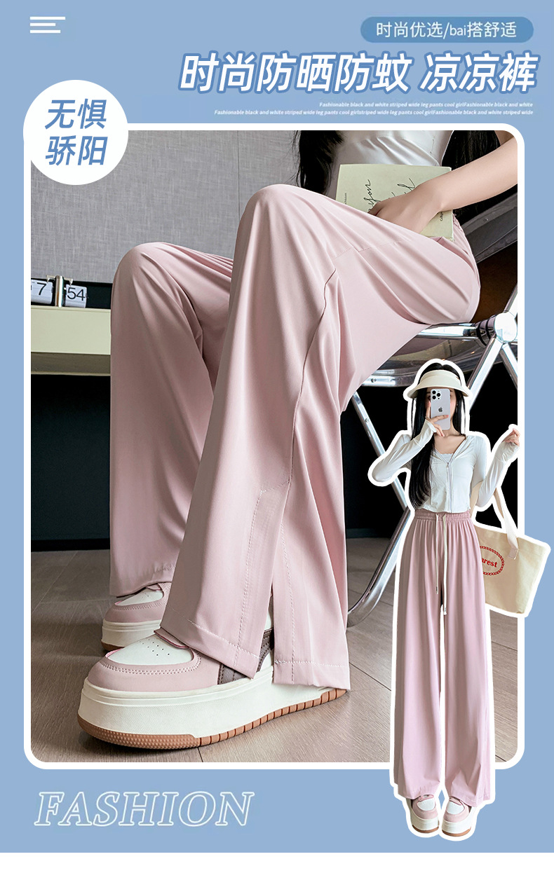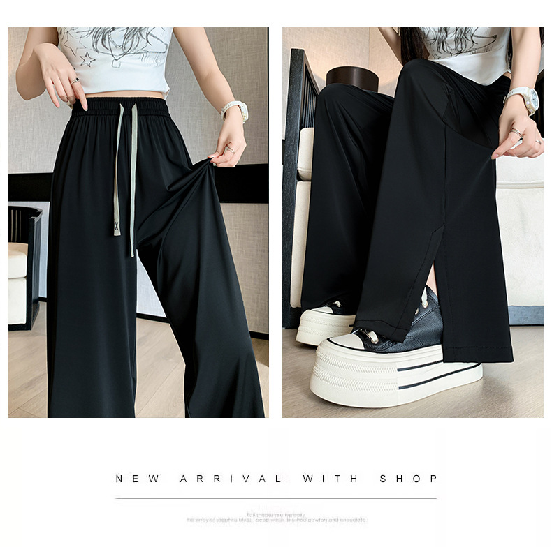 여름 자외선 차단제 와이드 레그 바지 여성용 플러스 사이즈 200kg 통통녀 하이 허리 슬리밍 사이드 스플릿 캐주얼 스트레이트 팬츠스토어 가기