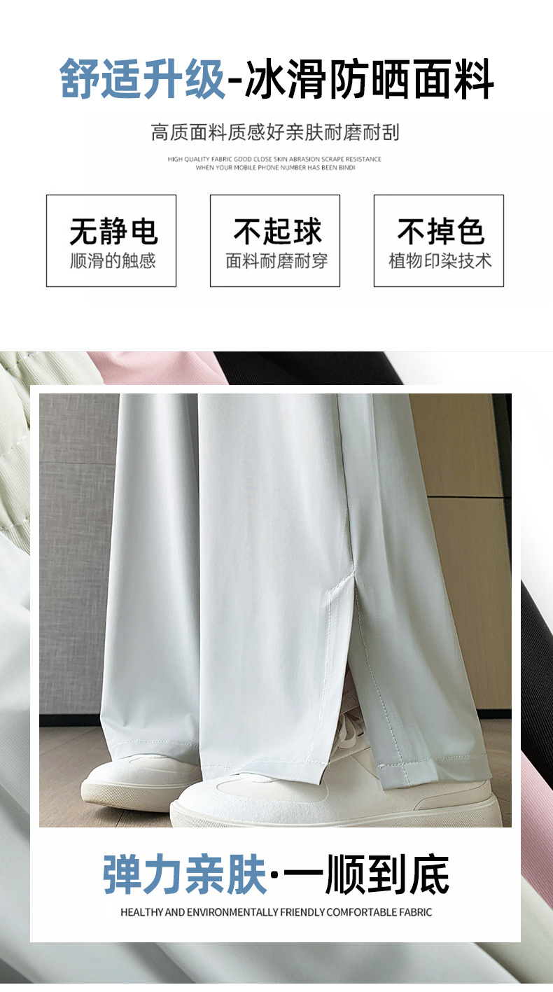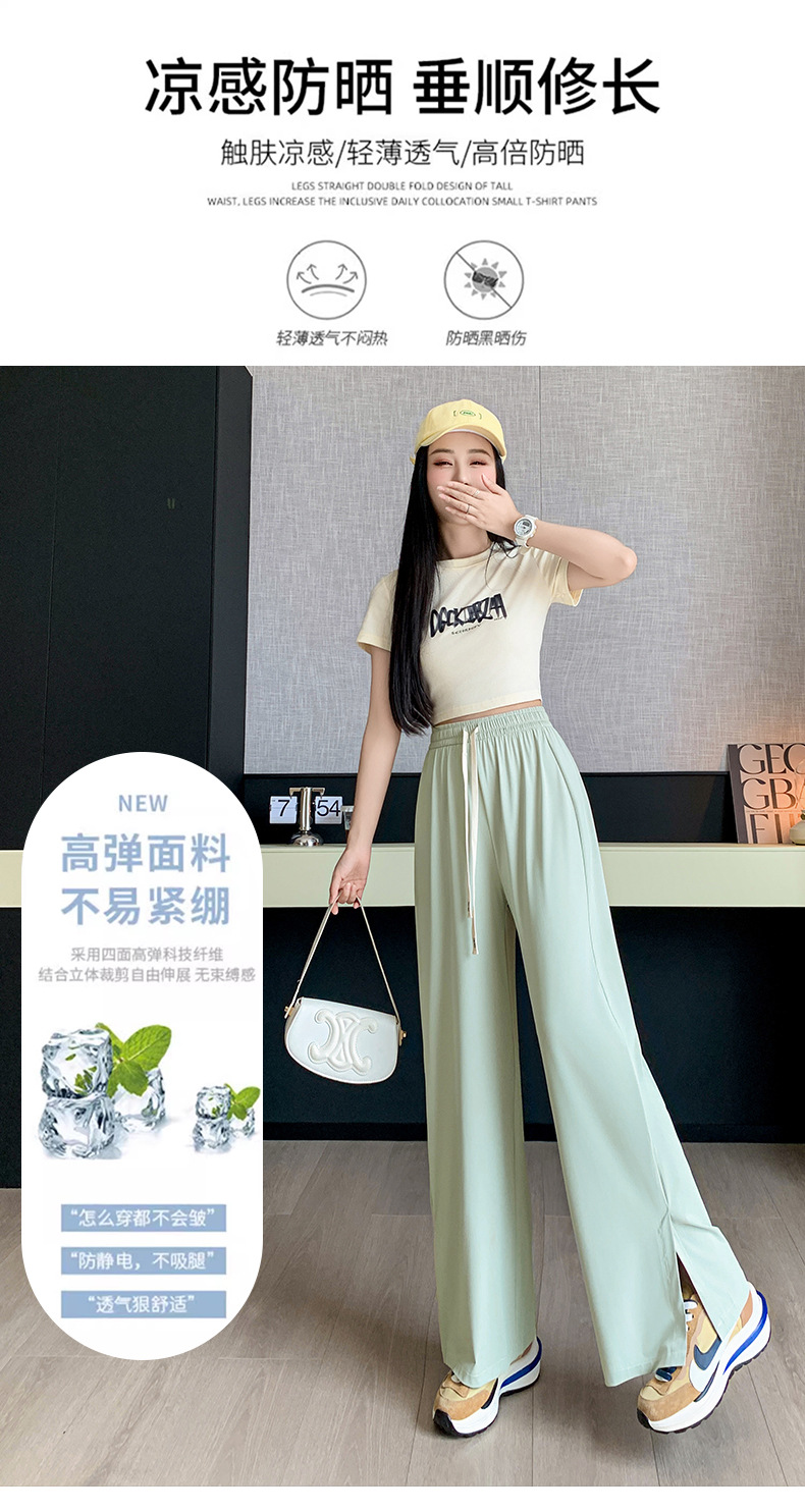 여름 자외선 차단제 와이드 레그 바지 여성용 플러스 사이즈 200kg 통통녀 하이 허리 슬리밍 사이드 스플릿 캐주얼 스트레이트 팬츠