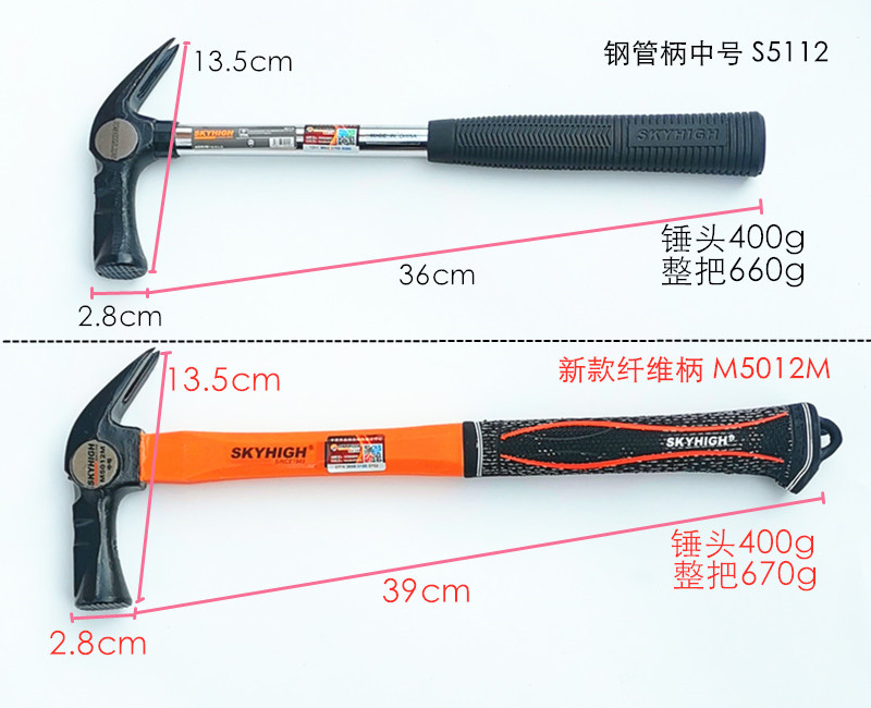 6、锤柄由含80%玻璃纤维芯棒二次包塑而成,抗折性好、握感