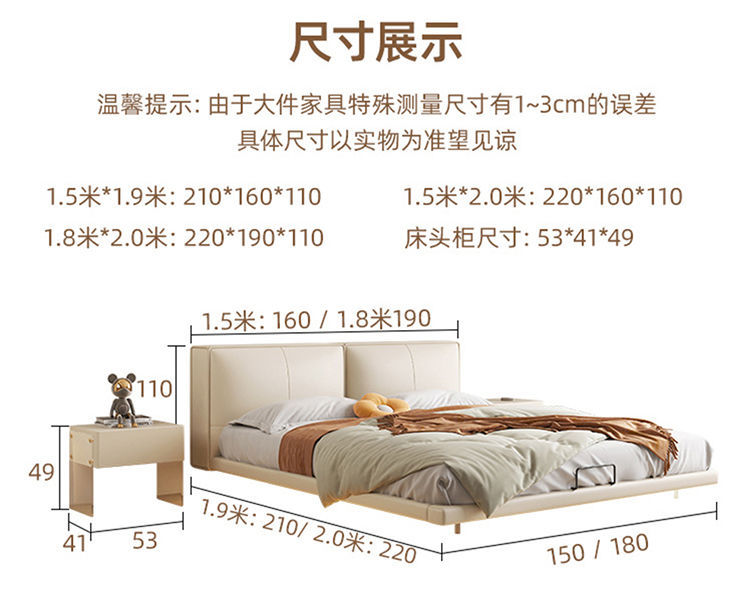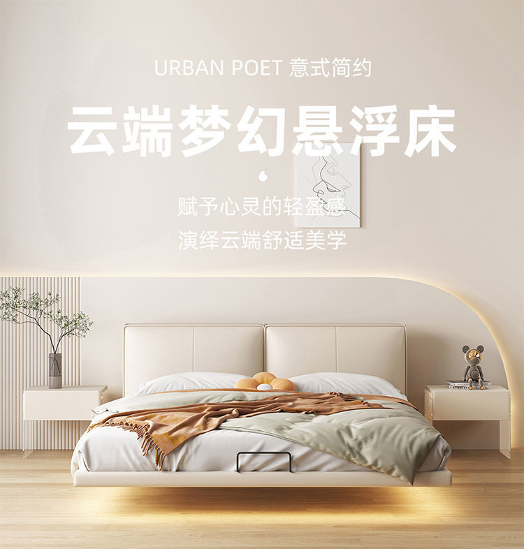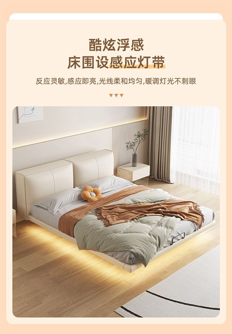 가죽 침대 이탈리아 스타일 미니멀리스트 두부 블록 가죽 침대 현대 간단한 마스터 침실 소프트 가방 더블 침대 인터넷 레드 크림 스타일 웨딩 침대스토어 가기