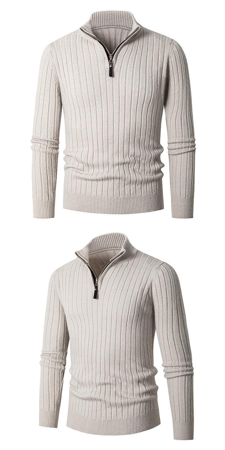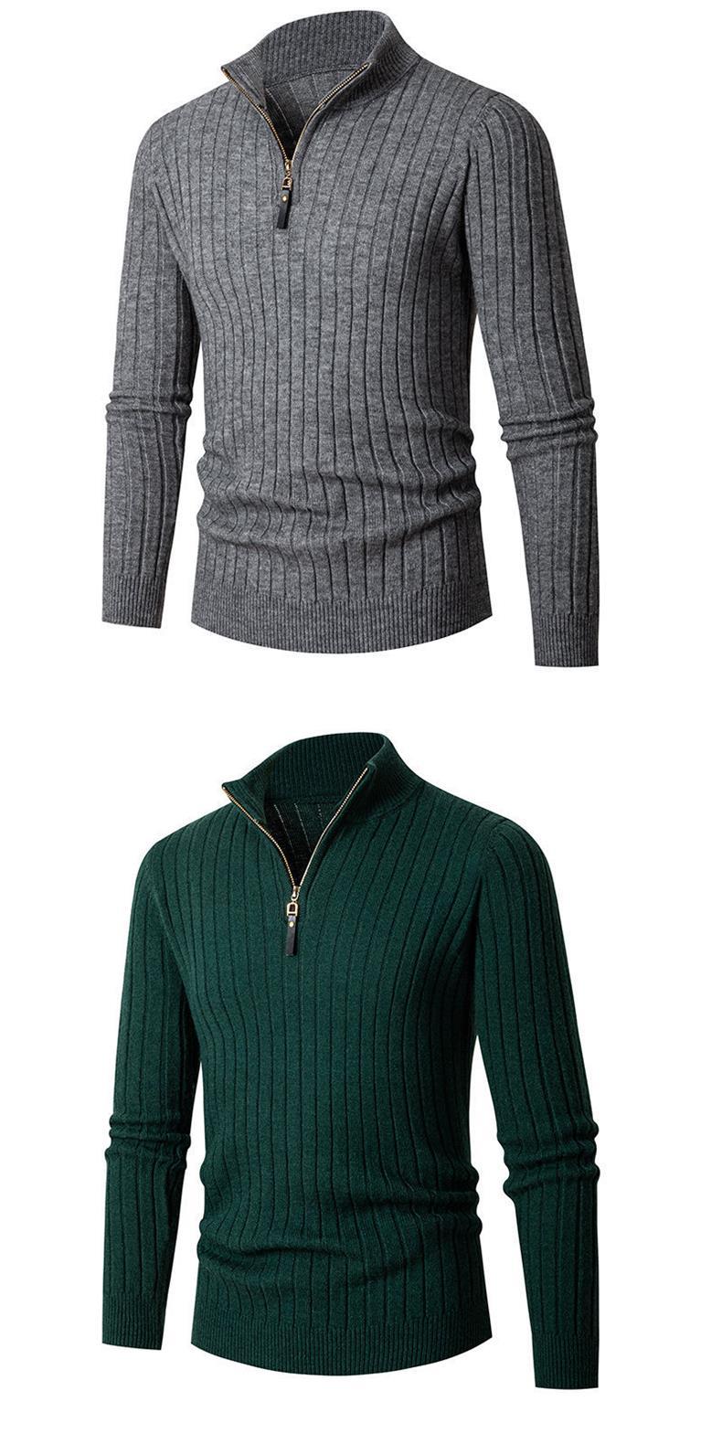2024 년 대외 무역 가을과 겨울 새로운 유럽과 미국의 남성 긴 소매 수직 스트립 하프 하이 칼라 지퍼 베이스 스웨터 남성용 스웨터스토어 가기