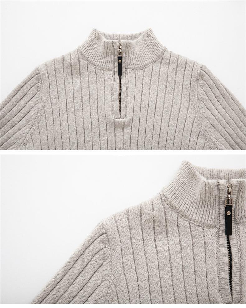 2024 년 대외 무역 가을과 겨울 새로운 유럽과 미국의 남성 긴 소매 수직 스트립 하프 하이 칼라 지퍼 베이스 스웨터 남성용 스웨터