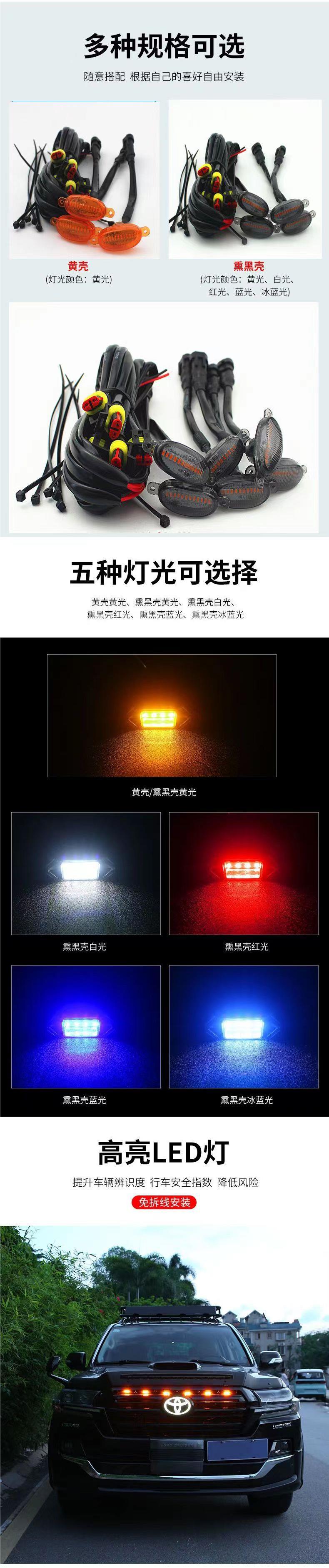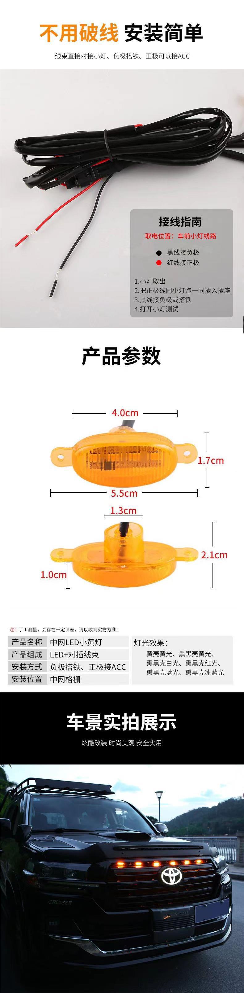 자동차 그물 빛 오프로드 차량 수정 된 곤충 그물 LED 라이트 픽업 트럭 전면 얼굴 작은 노란색 빛 방수 보편적 인 하루 달리기 조명