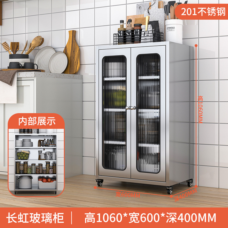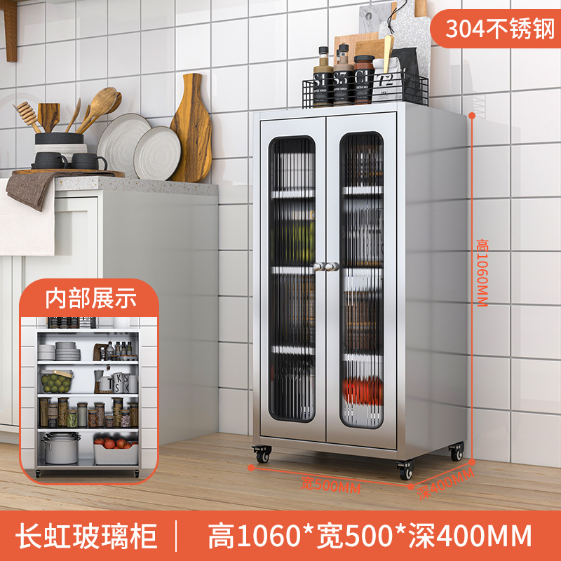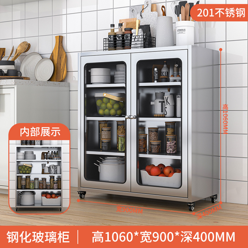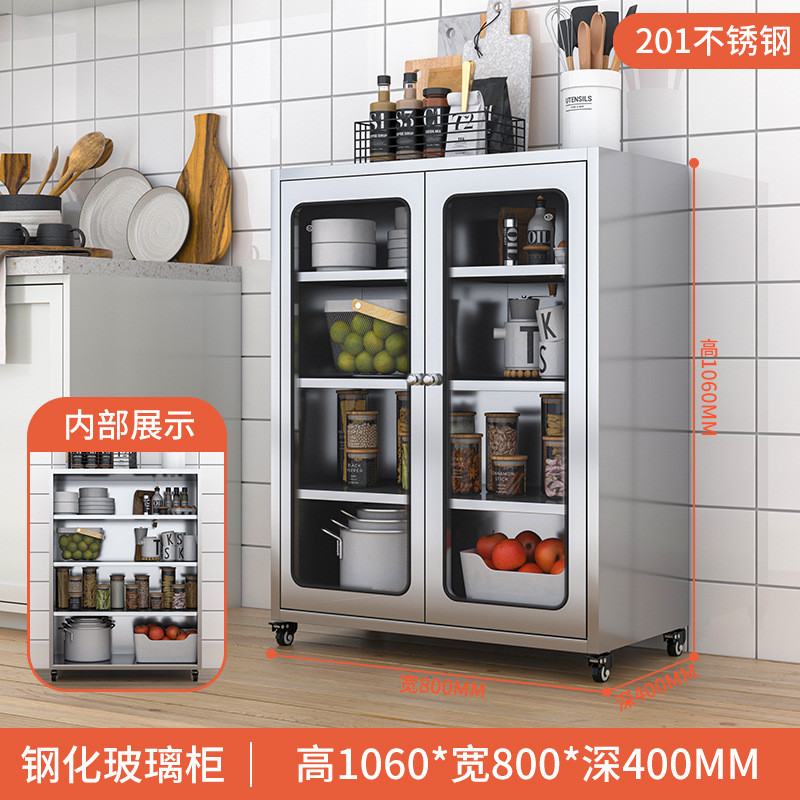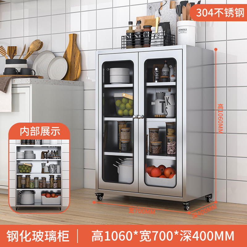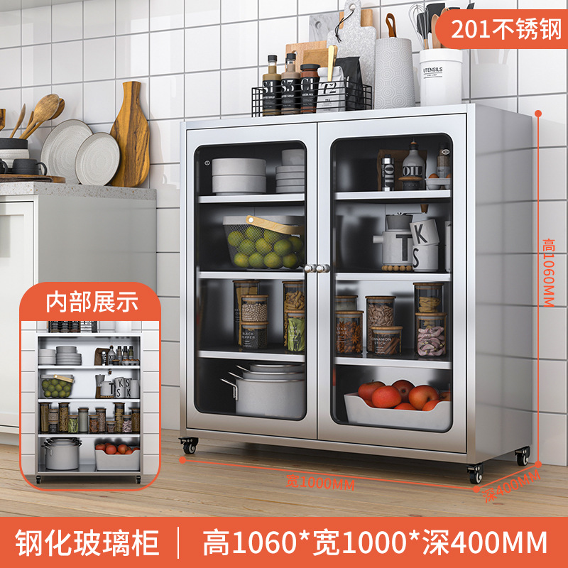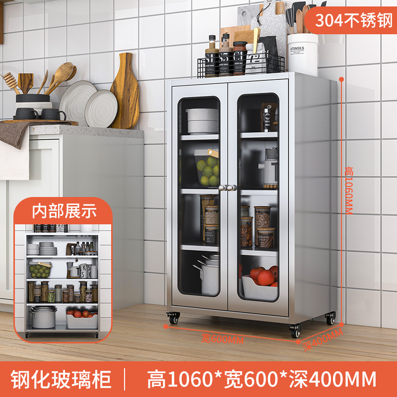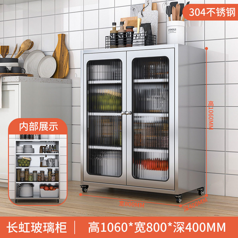 不锈钢厨房碗柜锅具收纳柜存放柜家用多功能厨柜餐边储物柜置物柜