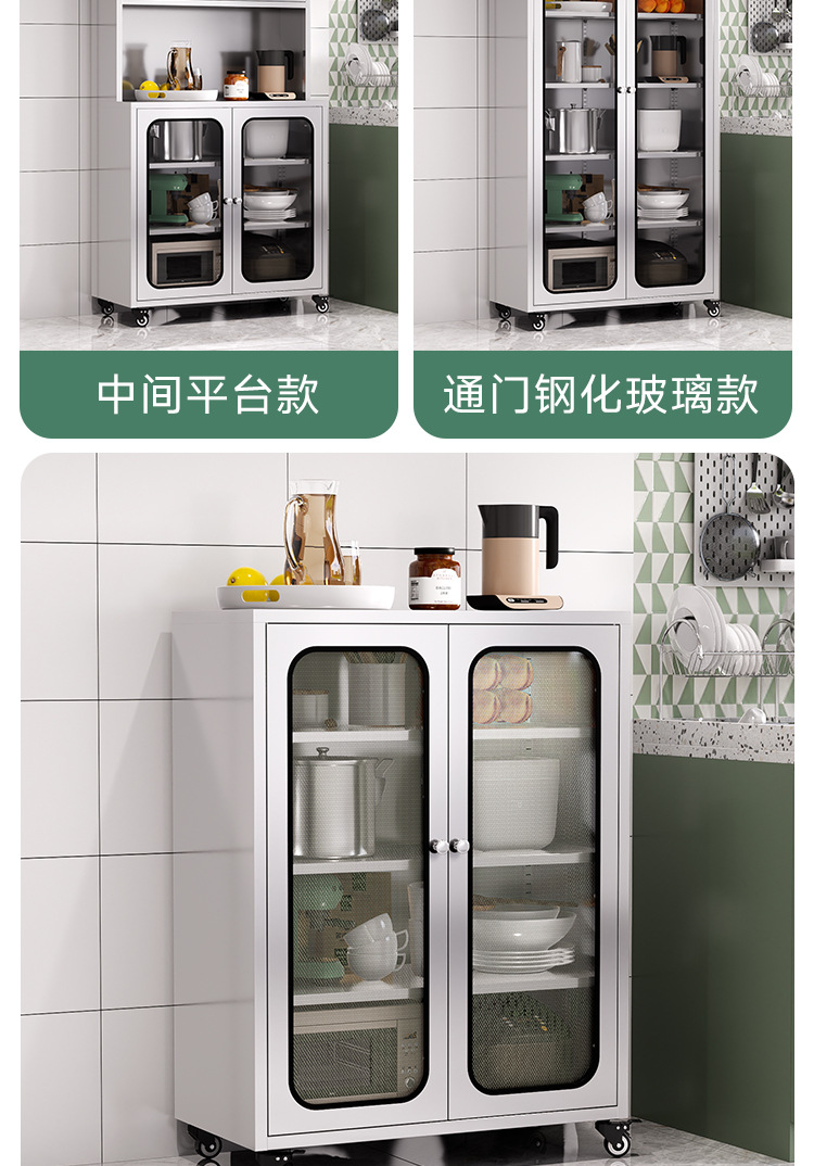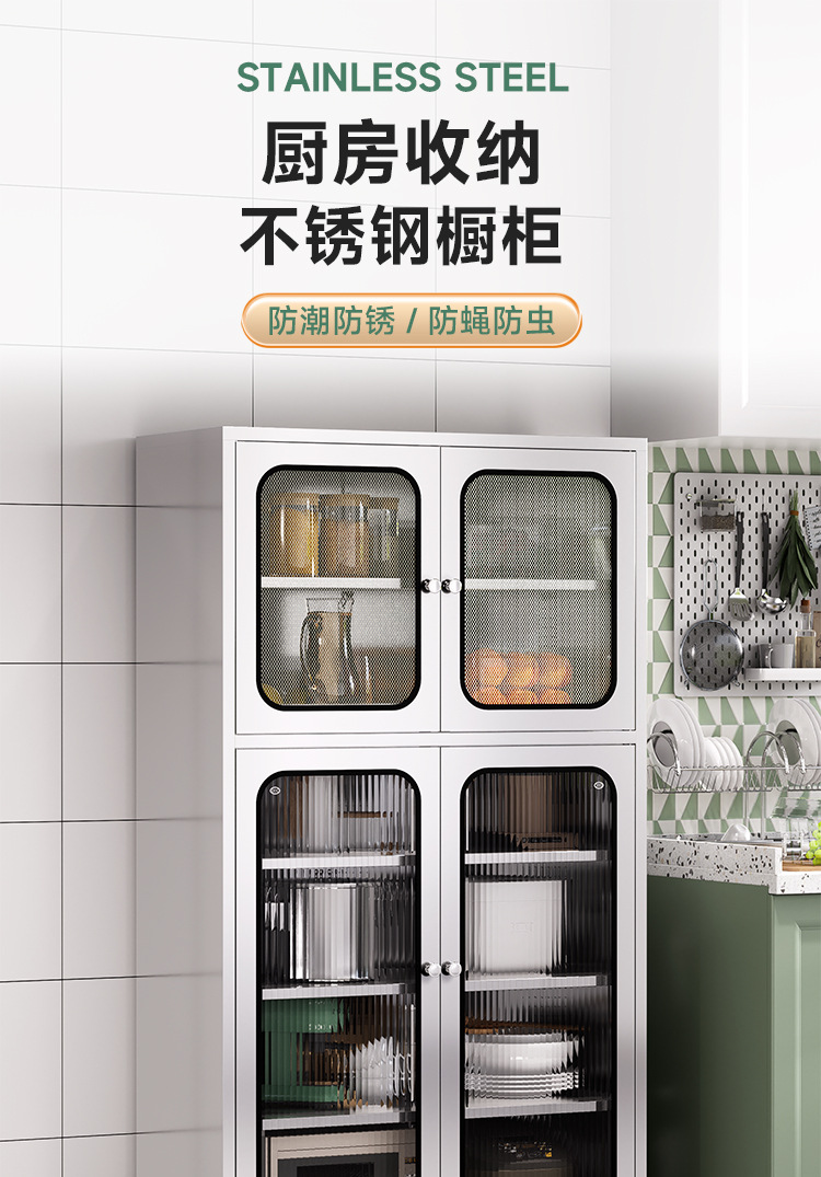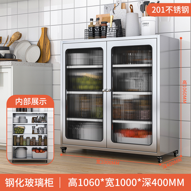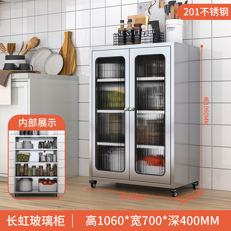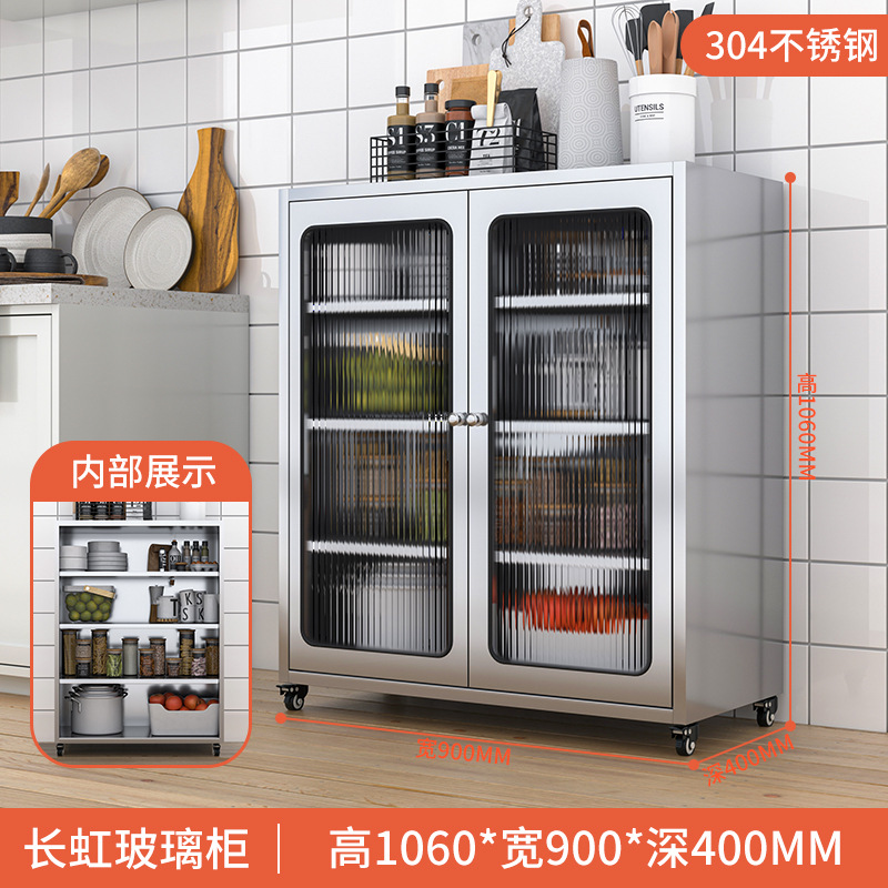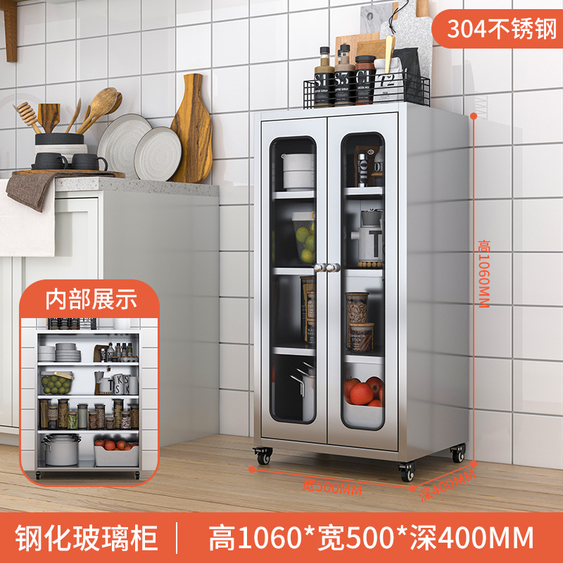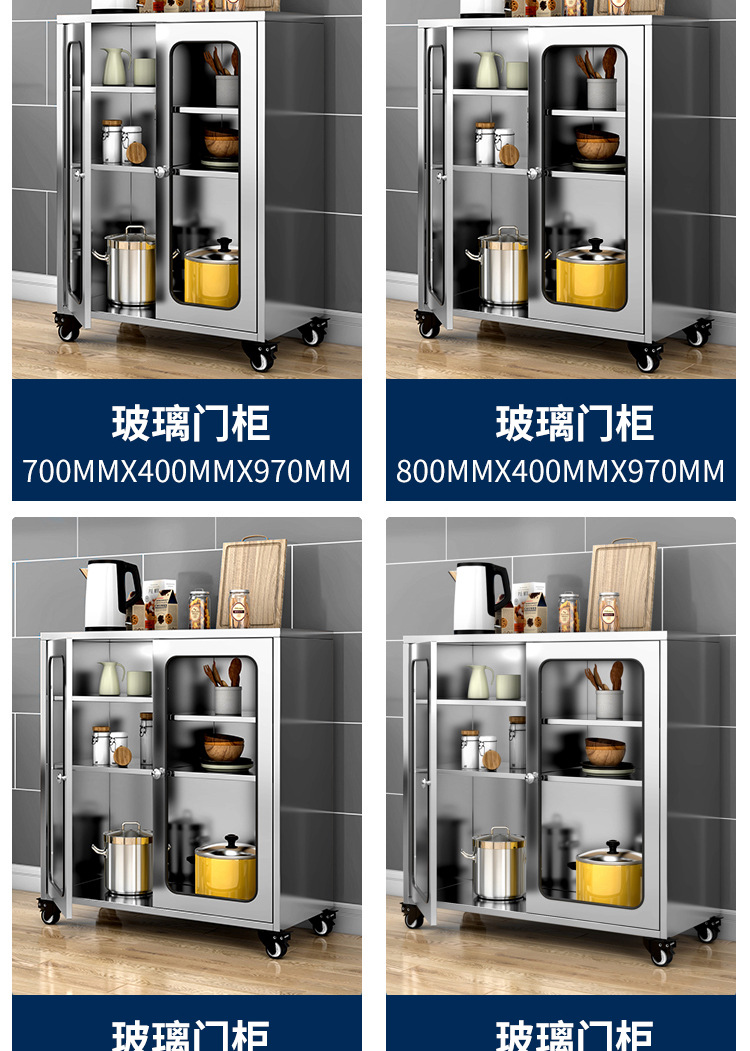 不锈钢厨房碗柜锅具收纳柜存放柜家用多功能厨柜餐边储物柜置物柜