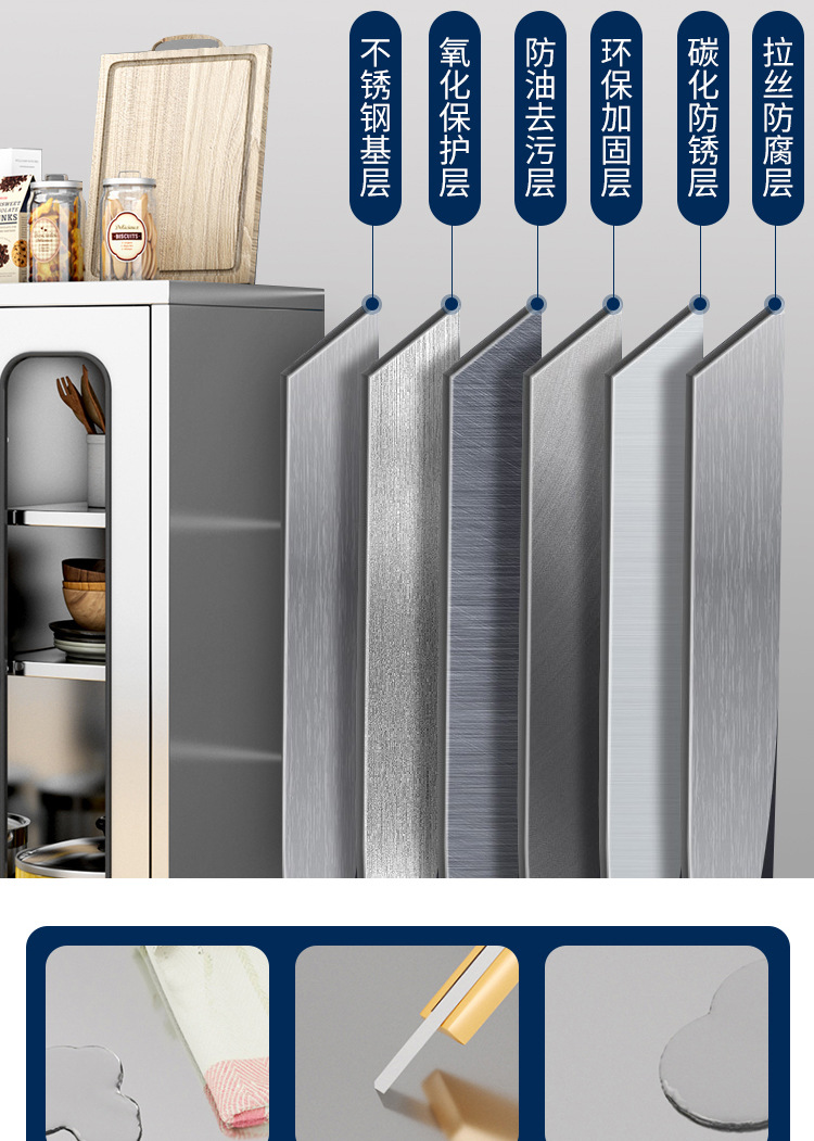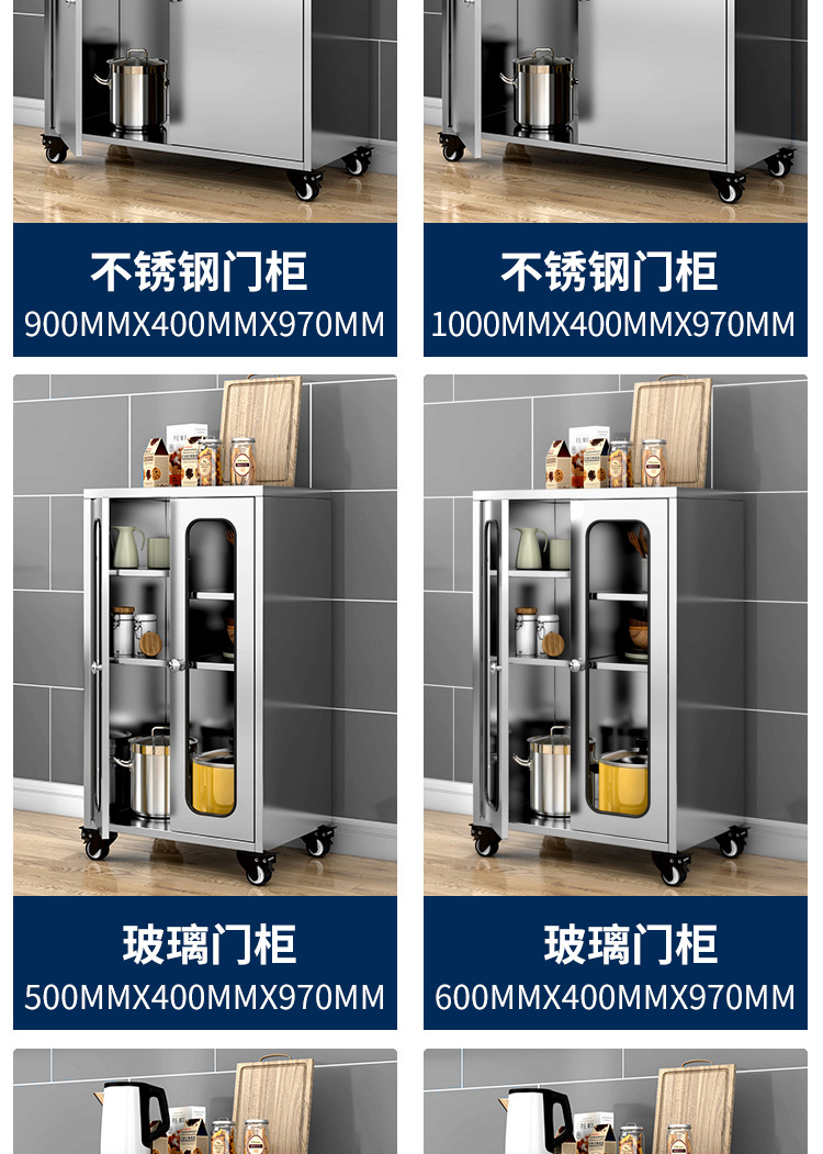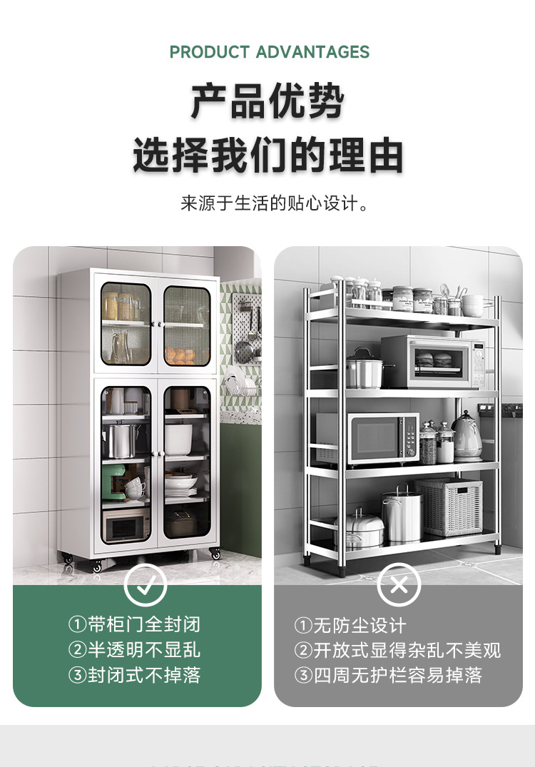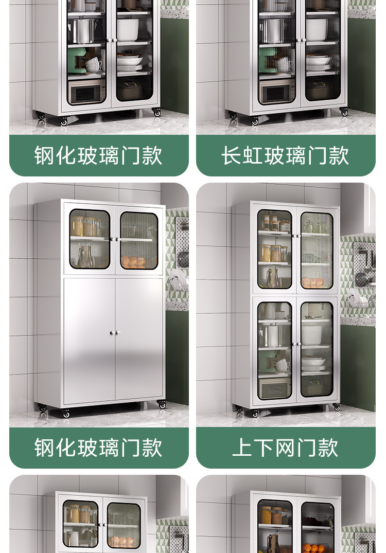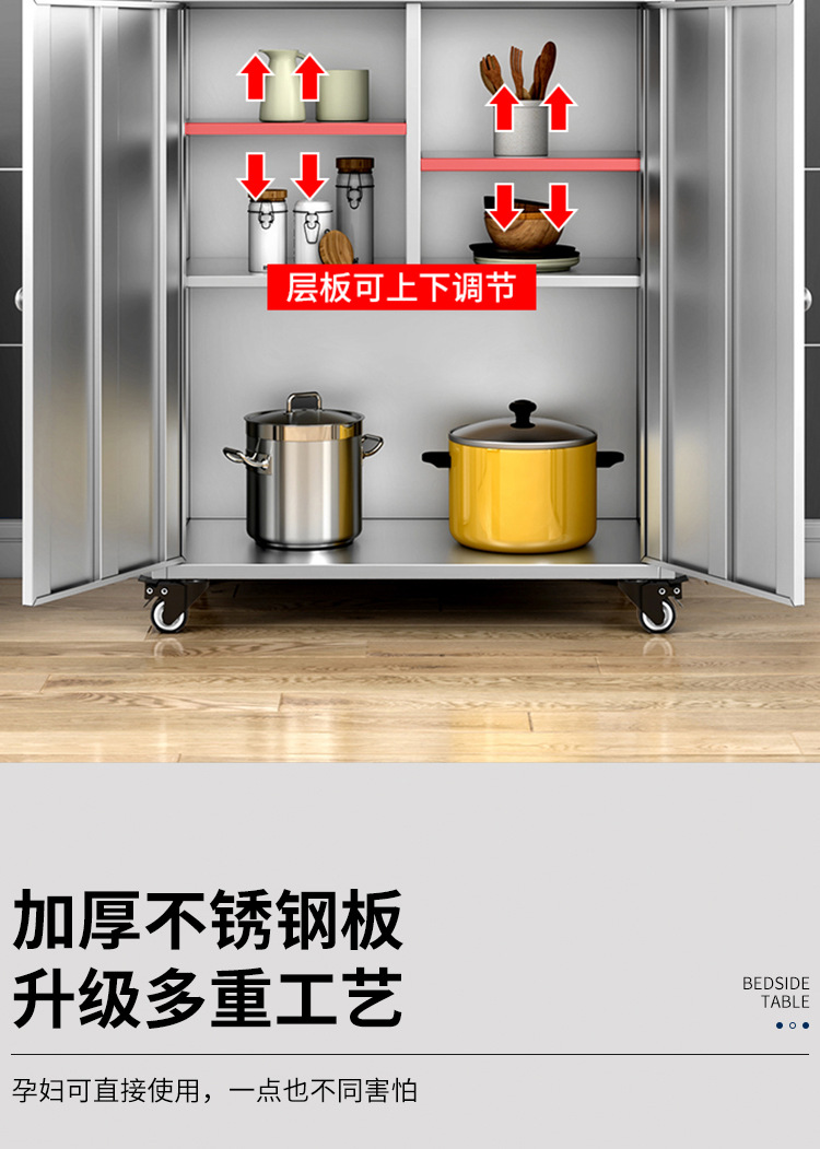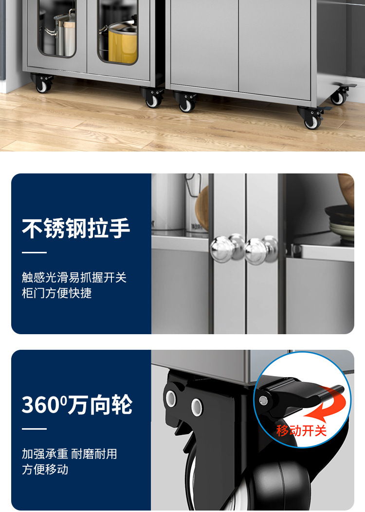不锈钢厨房碗柜锅具收纳柜存放柜家用多功能厨柜餐边储物柜置物柜