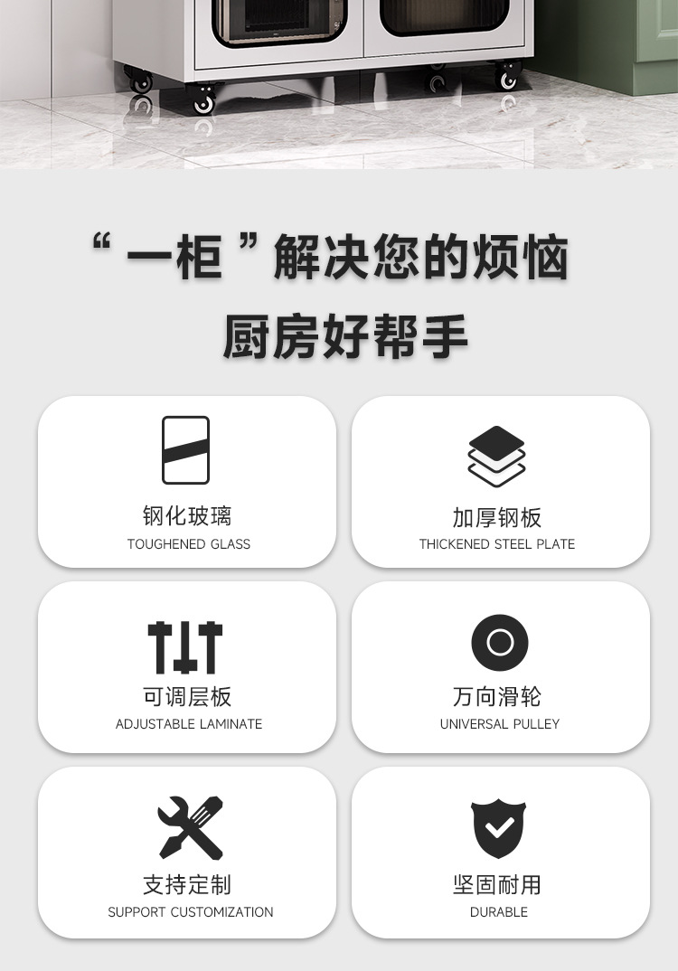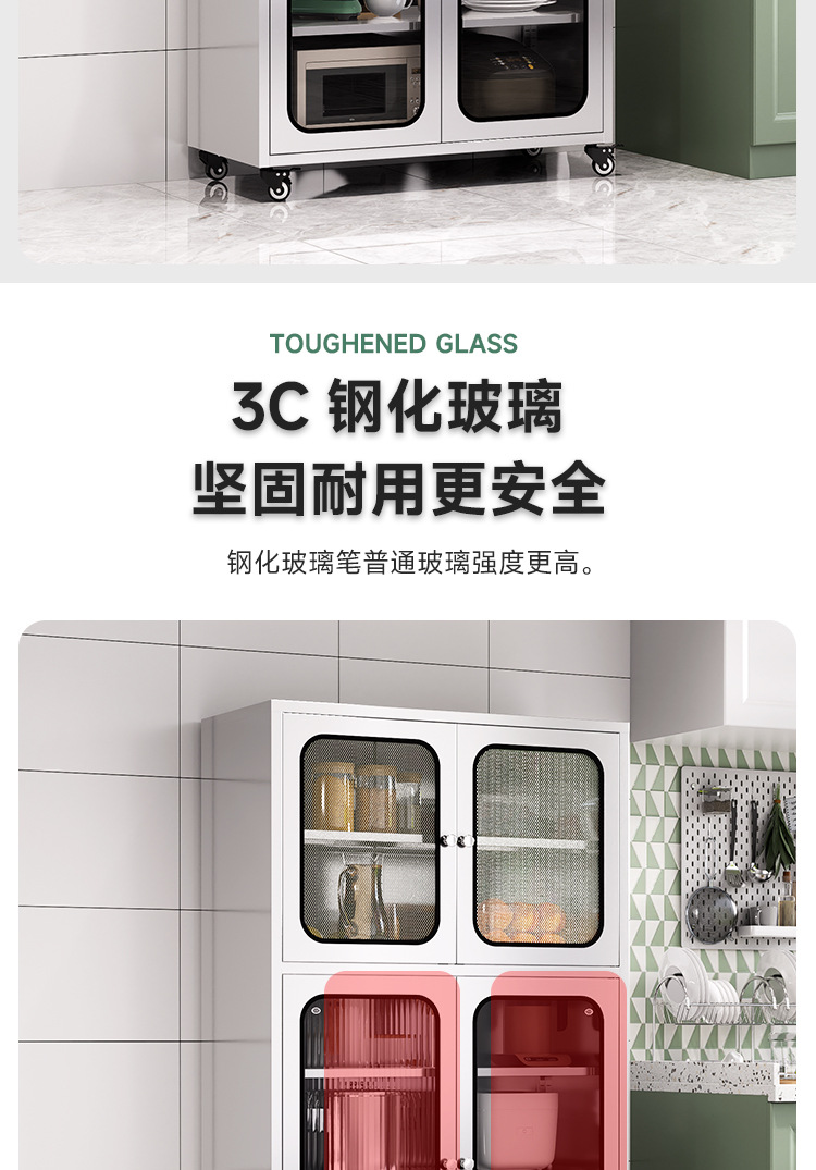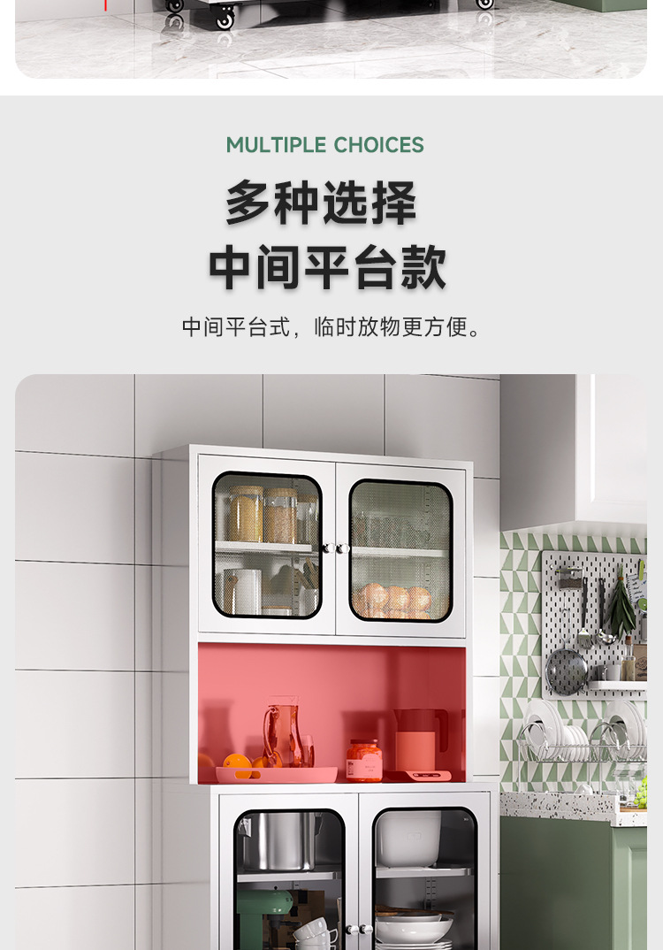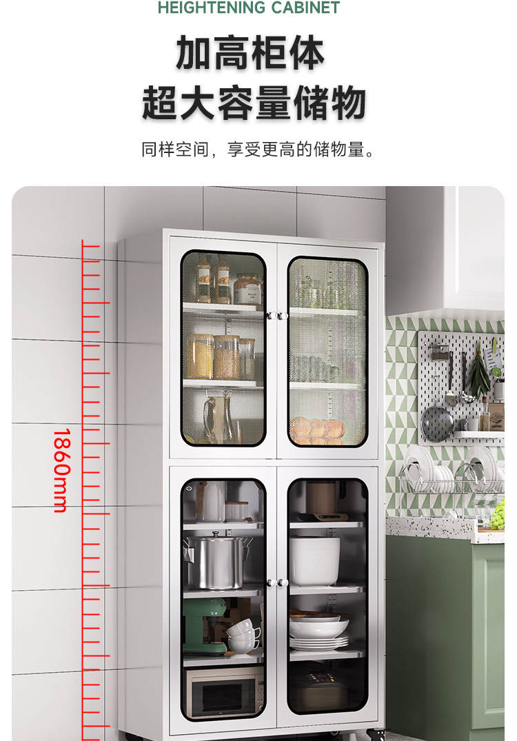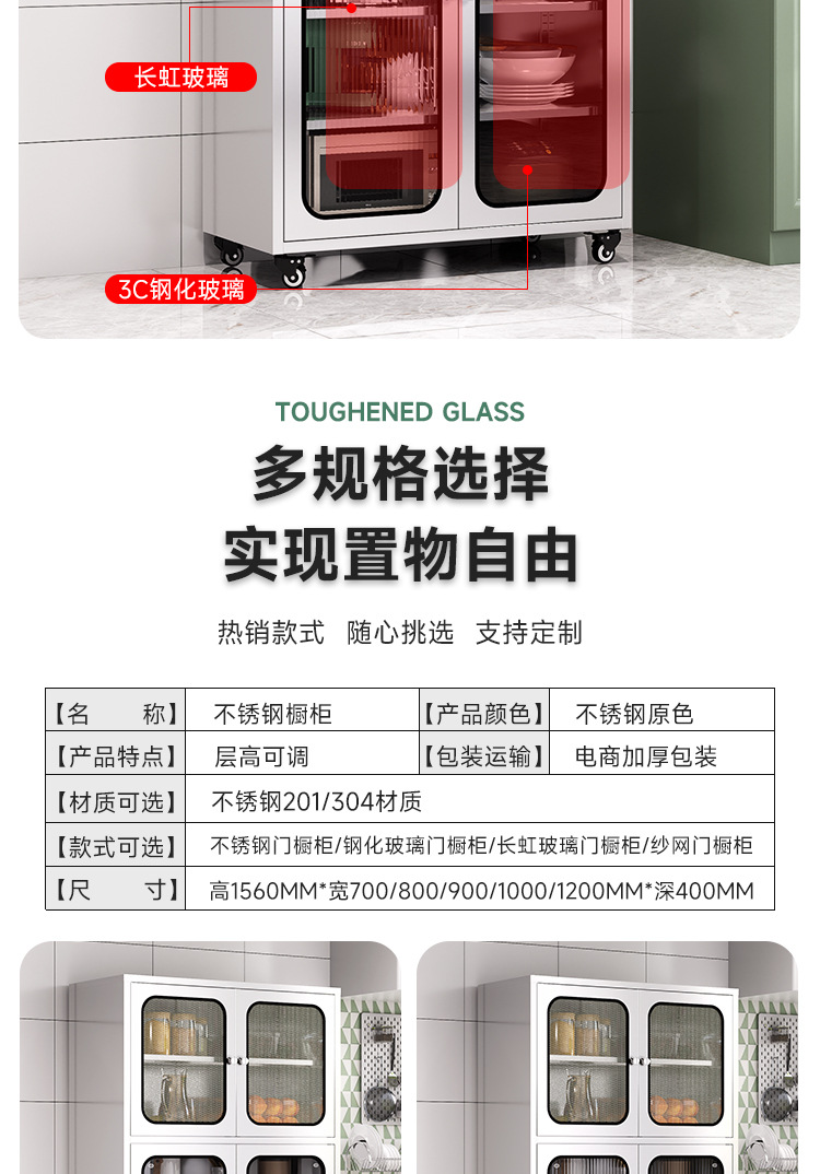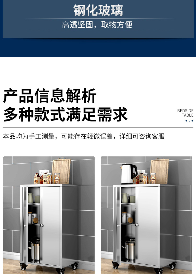 不锈钢厨房碗柜锅具收纳柜存放柜家用多功能厨柜餐边储物柜置物柜