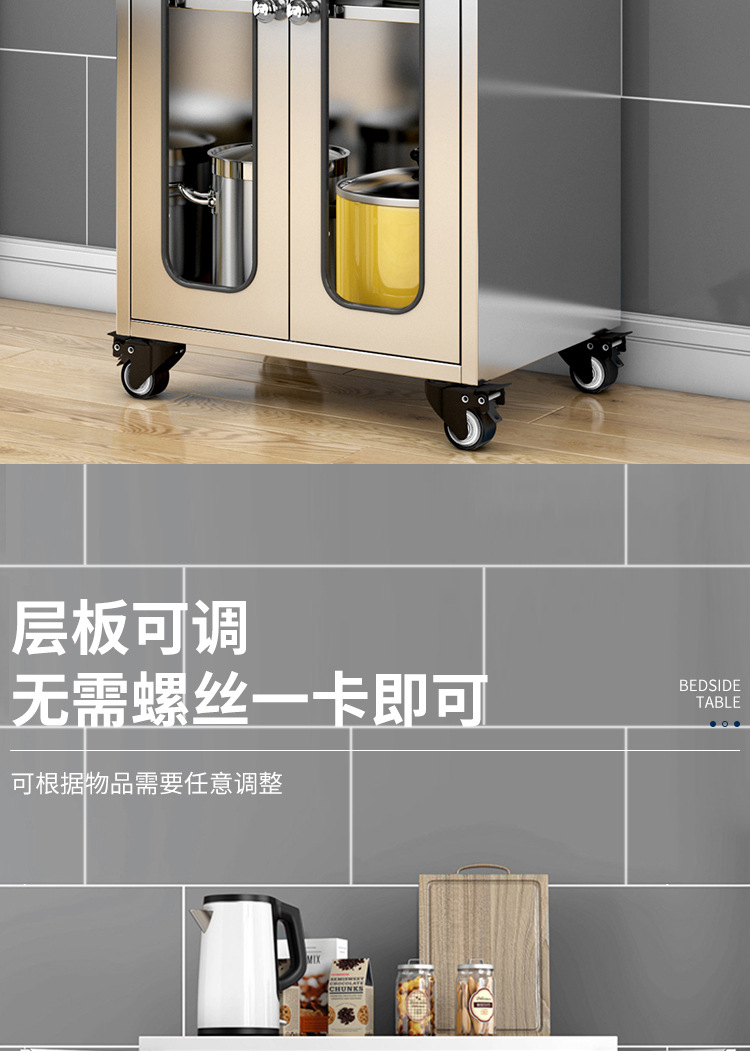스테인레스 스틸 주방 찬장 냄비 보관 캐비닛 캐비닛 가정용 다기능 주방 캐비닛 사이드 사이드 사이드 스토리지 캐비닛 보관 캐비닛