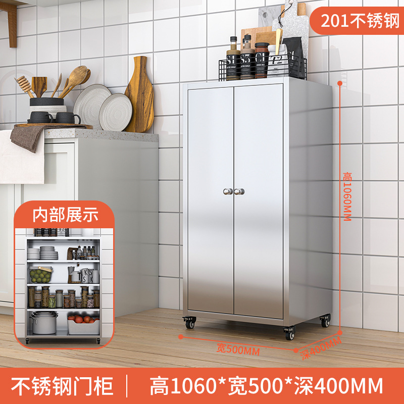 스테인레스 스틸 주방 찬장 냄비 보관 캐비닛 캐비닛 가정용 다기능 주방 캐비닛 사이드 사이드 사이드 스토리지 캐비닛 보관 캐비닛스토어 가기