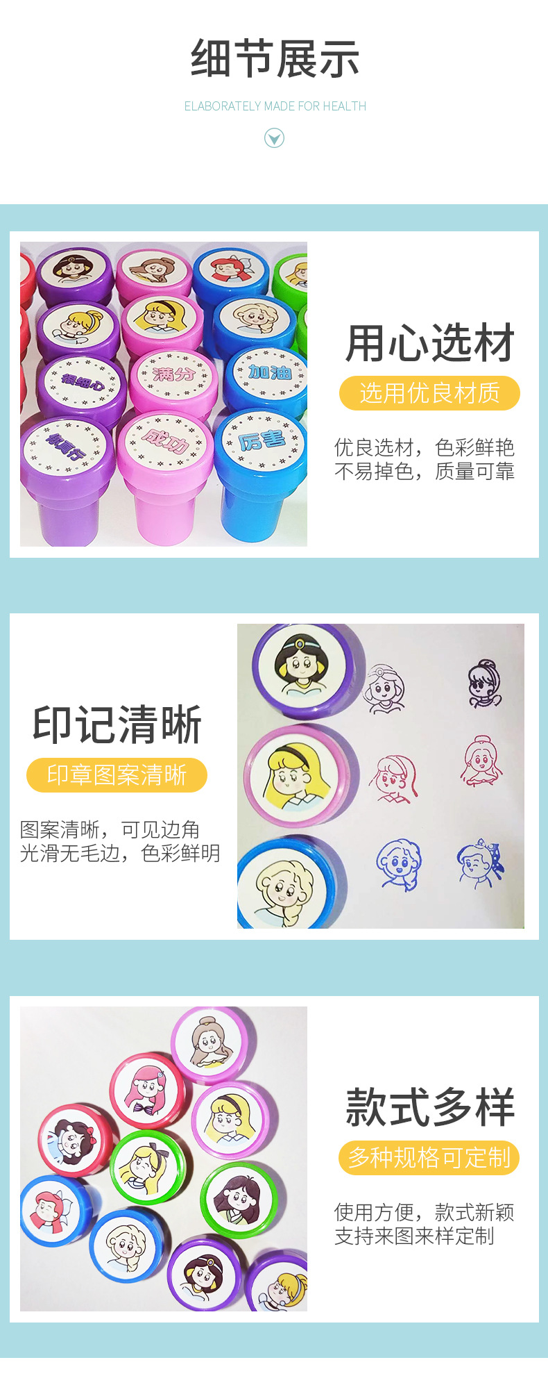 창의적인 만화 공주 도장 어린이 귀여운 유치원 교사 보상 도장 신데렐라 도장 장난감