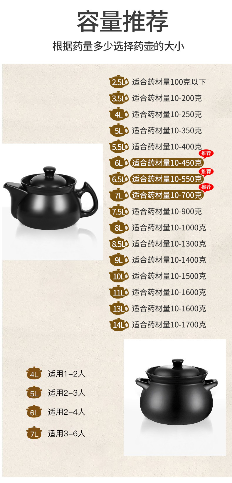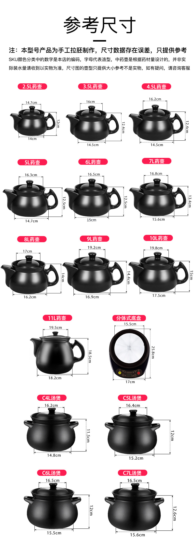• 4.5L 내부 무글레이즈 주전자 + 알루미늄 냄비 + 검정색 베이스