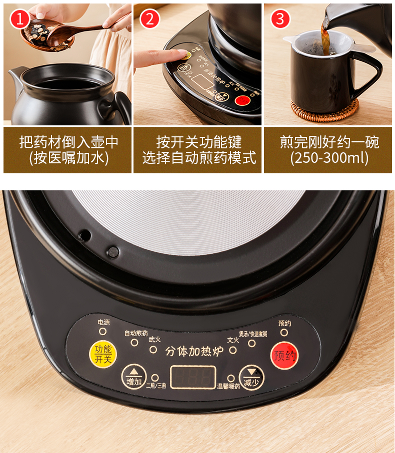 전기 달기 냄비 자동 요리 약 프라이팬 가정용 캐서롤 한약 세라믹 다기능