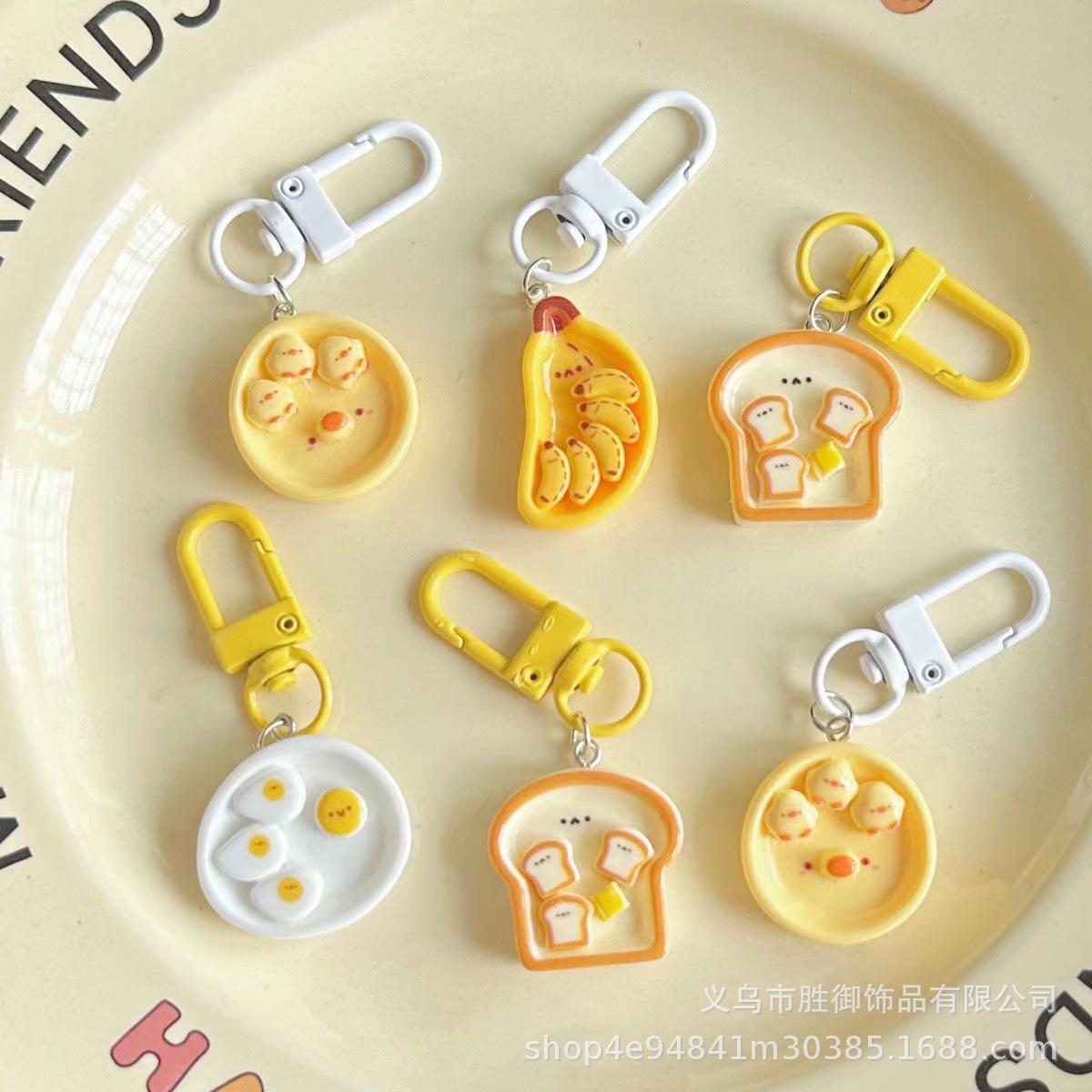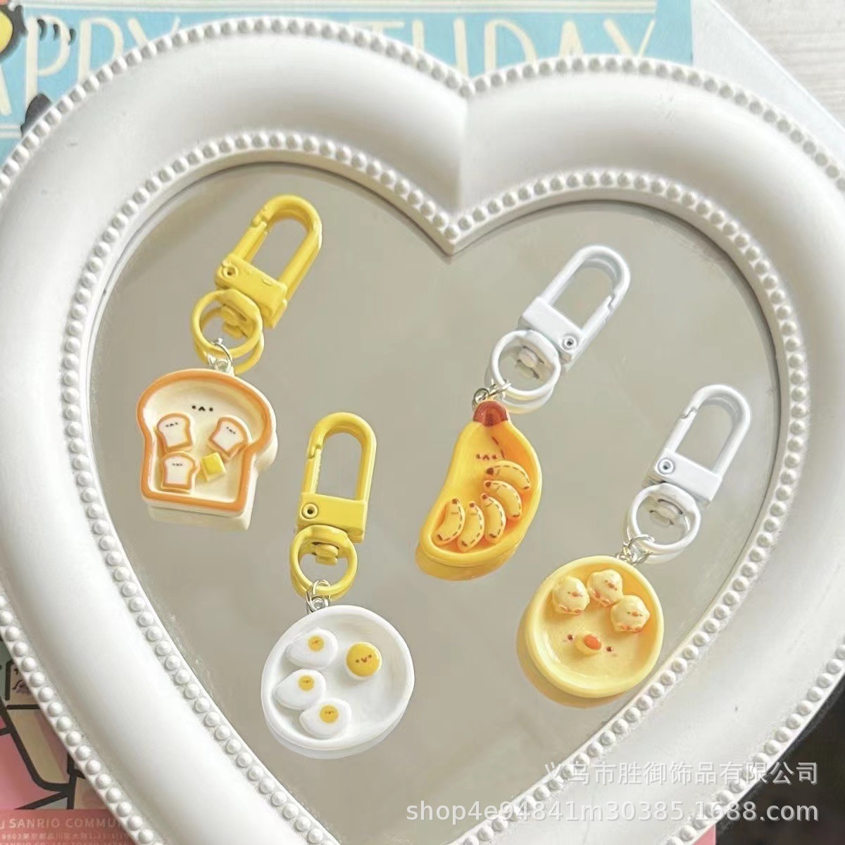 귀여운 아침 식사 접시 펜던트 재미있는 시뮬레이션 음식 놀이 키 체인 소녀 하트 배낭 액세서리 커플 여자 친구 선물스토어 가기
