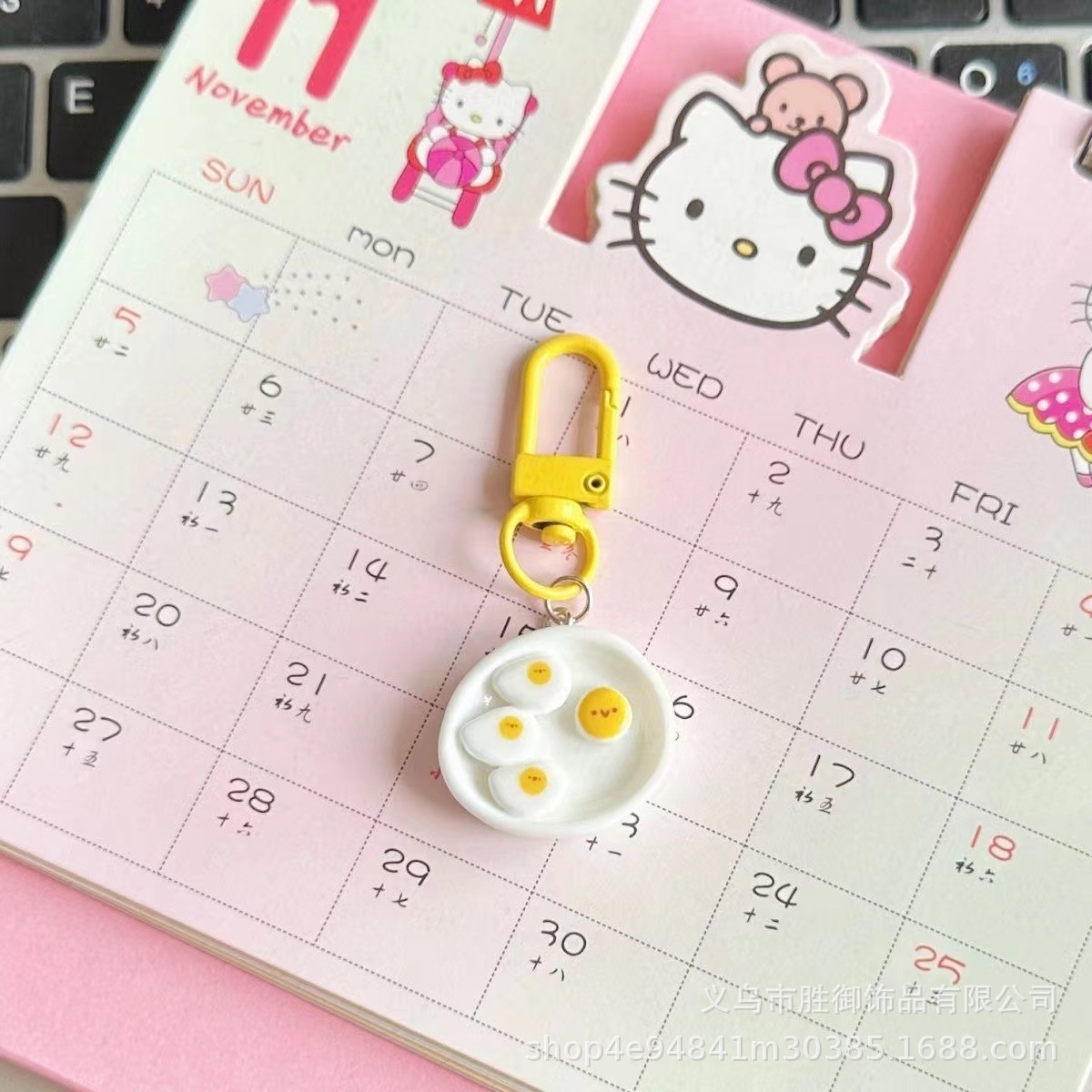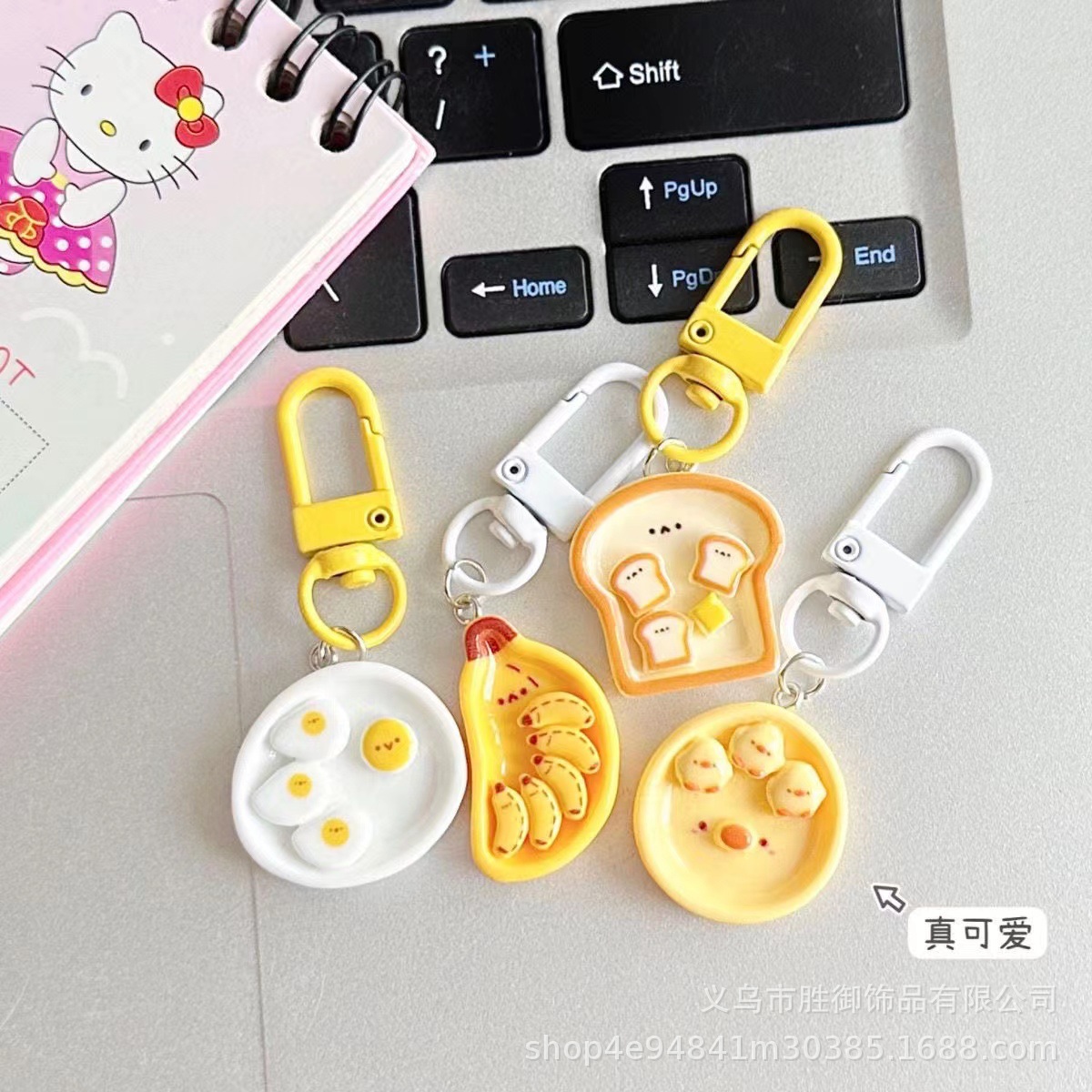귀여운 아침 식사 접시 펜던트 재미있는 시뮬레이션 음식 놀이 키 체인 소녀 하트 배낭 액세서리 커플 여자 친구 선물