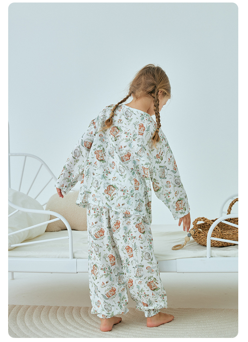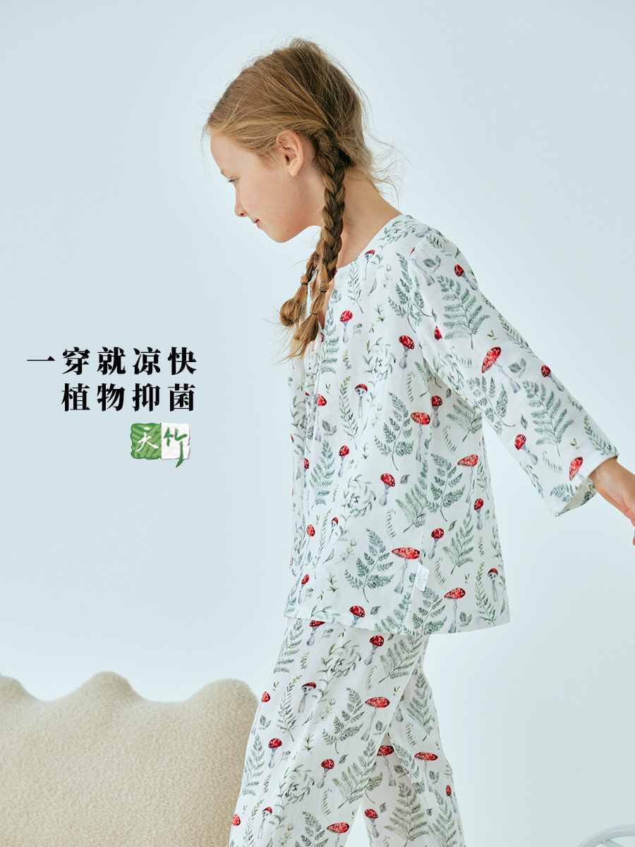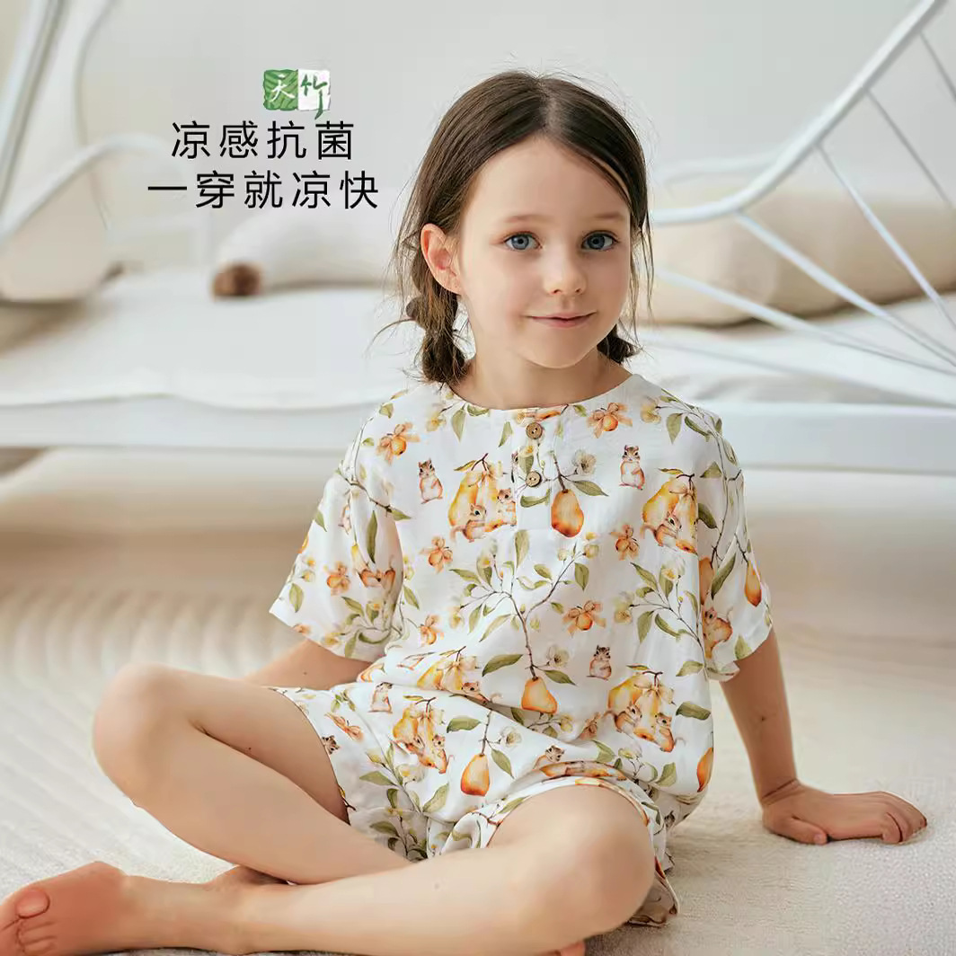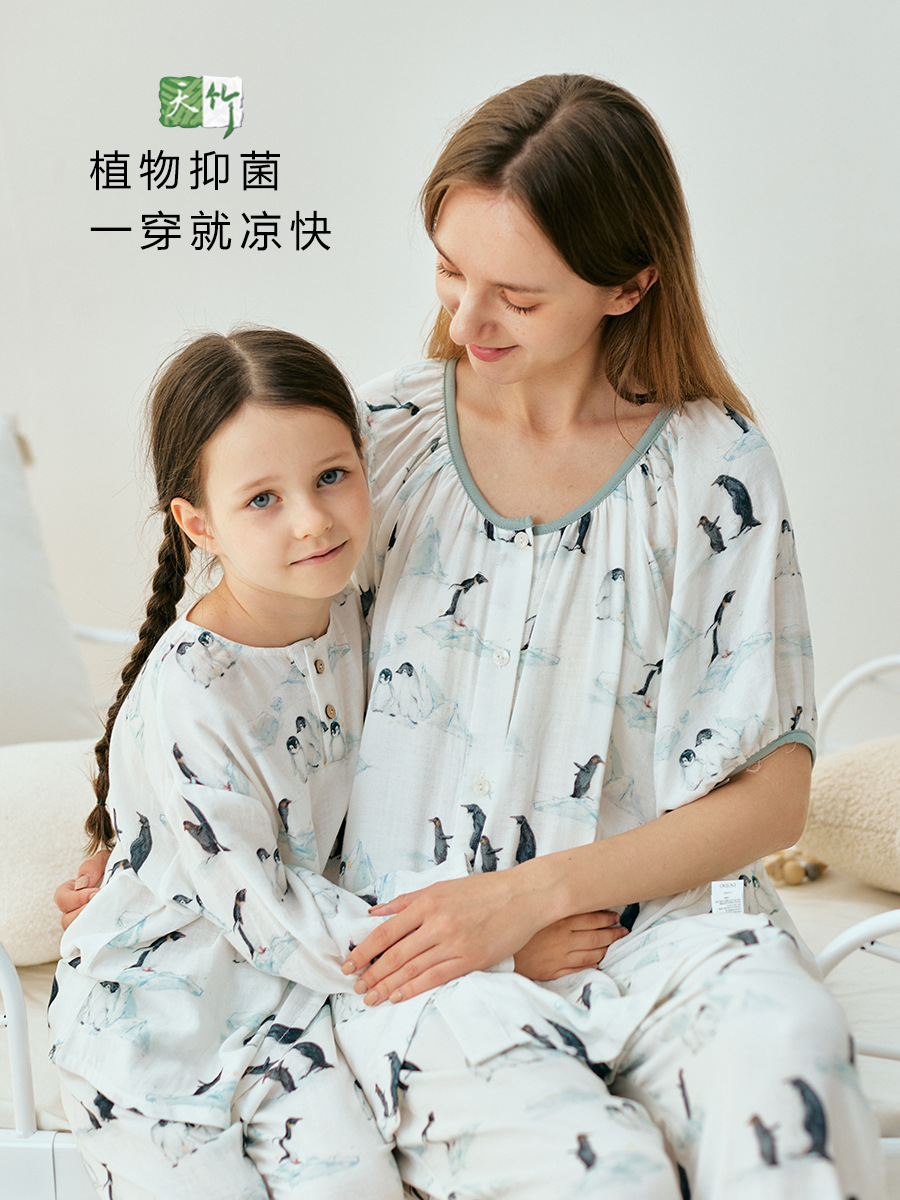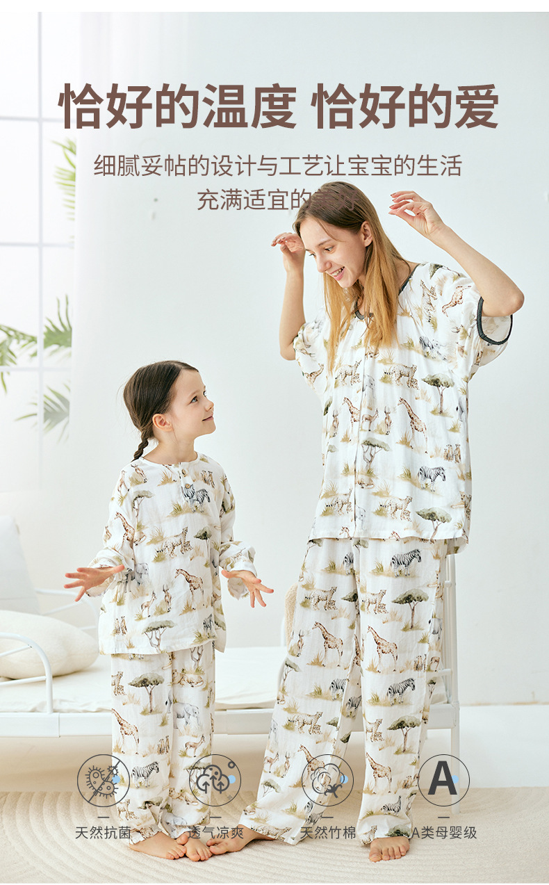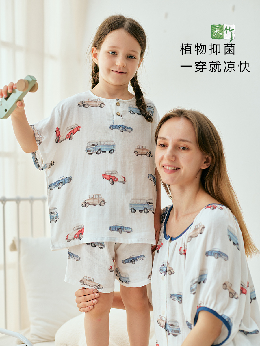 봄과 여름 대나무 섬유 얇은 유아 소년과 소녀 에어컨 셔츠 모기 방지 바지 부모-자식 어린이 가정 의류 잠옷스토어 가기