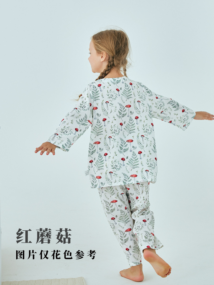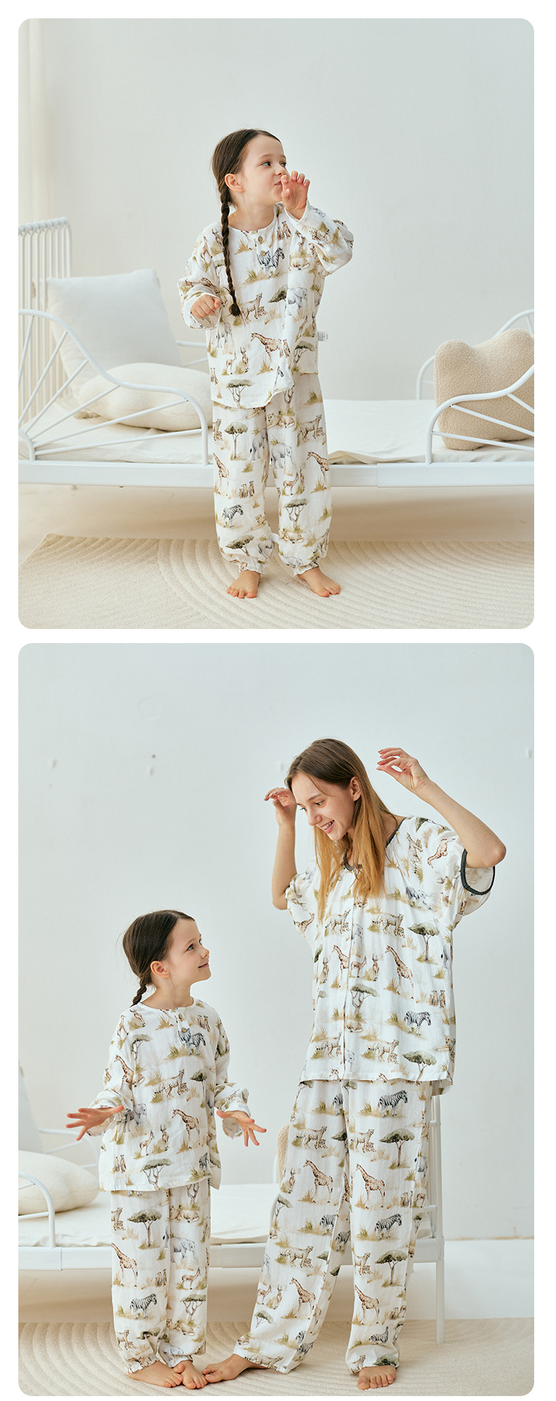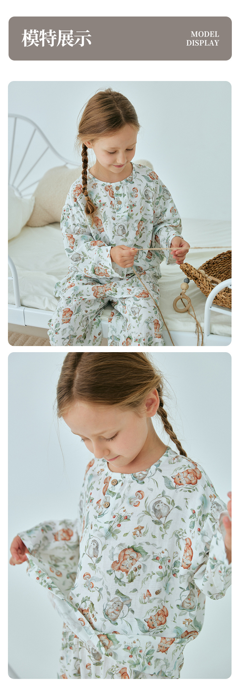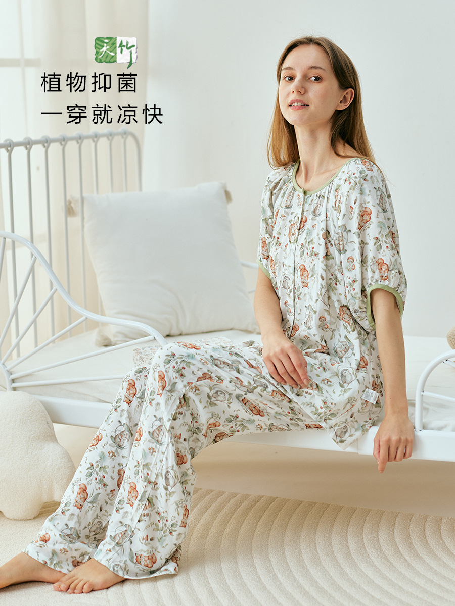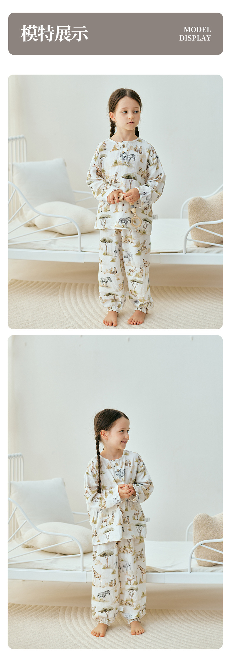 봄과 여름 대나무 섬유 얇은 유아 소년과 소녀 에어컨 셔츠 모기 방지 바지 부모-자식 어린이 가정 의류 잠옷스토어 가기