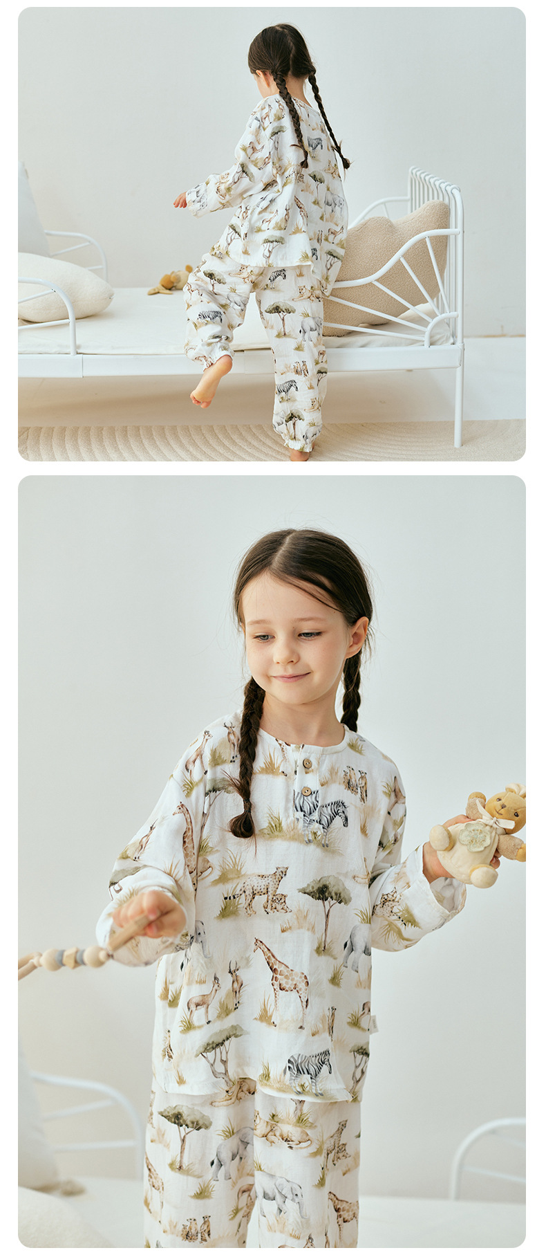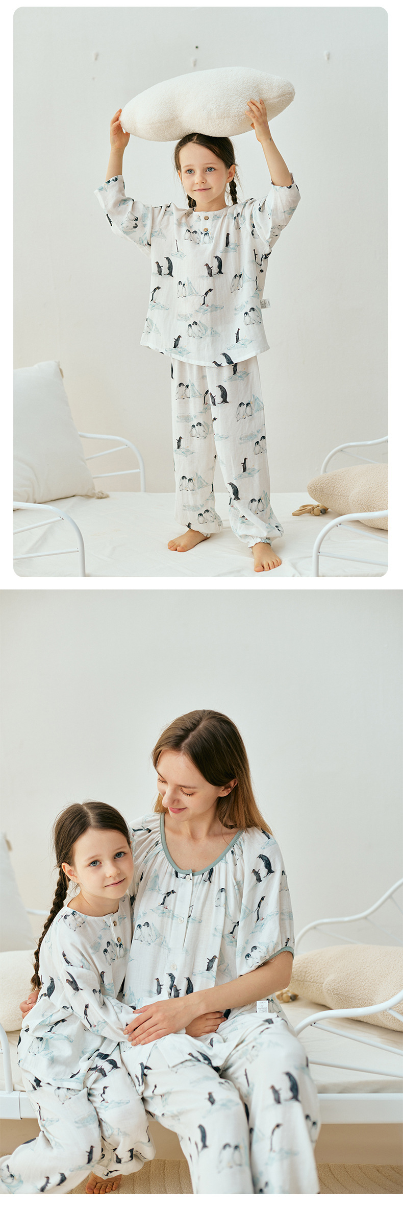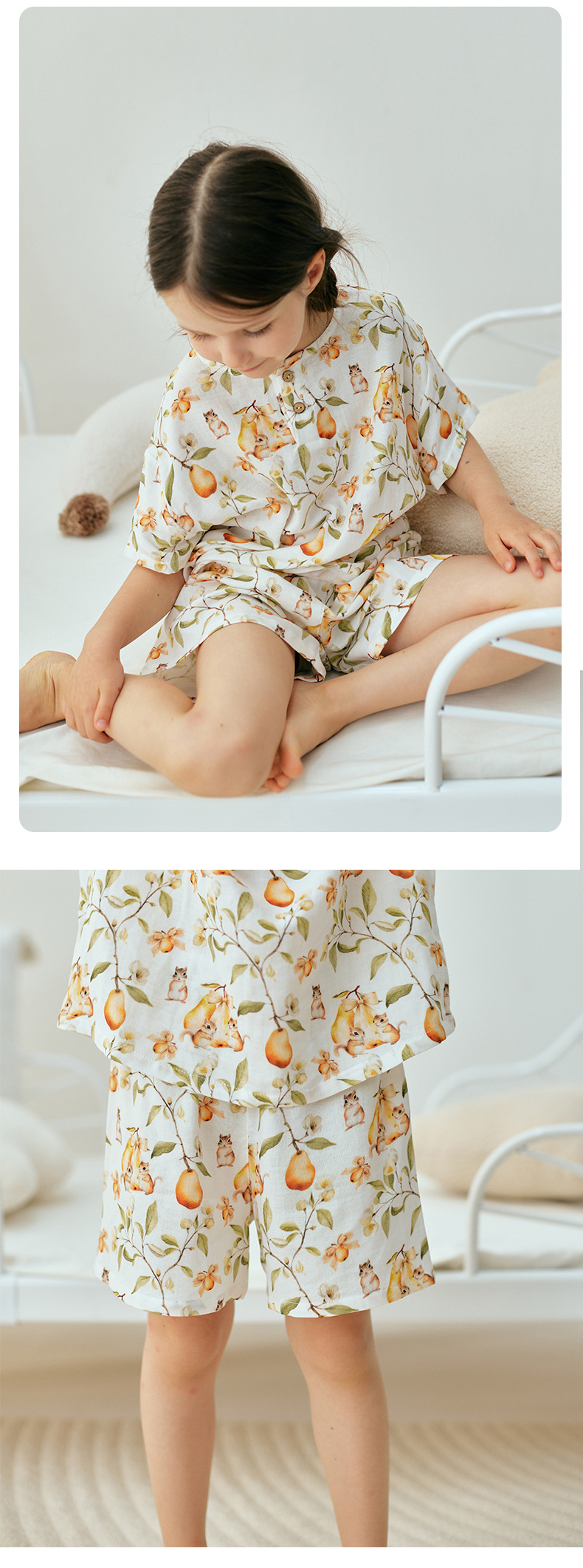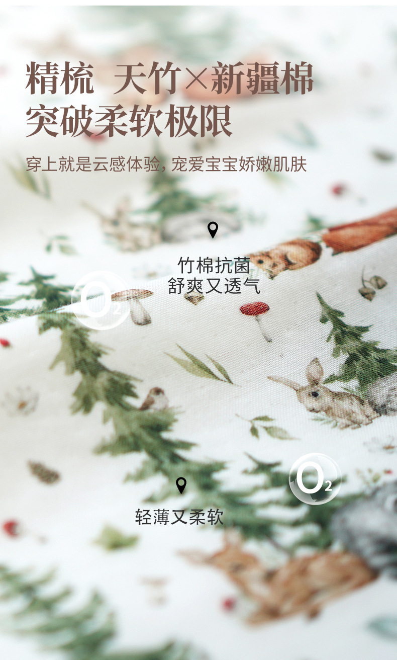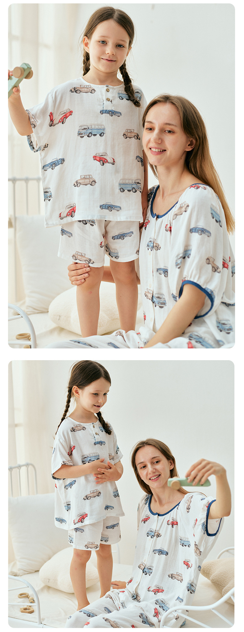 봄과 여름 대나무 섬유 얇은 유아 소년과 소녀 에어컨 셔츠 모기 방지 바지 부모-자식 어린이 가정 의류 잠옷스토어 가기