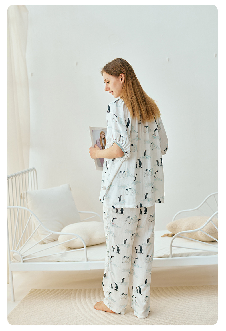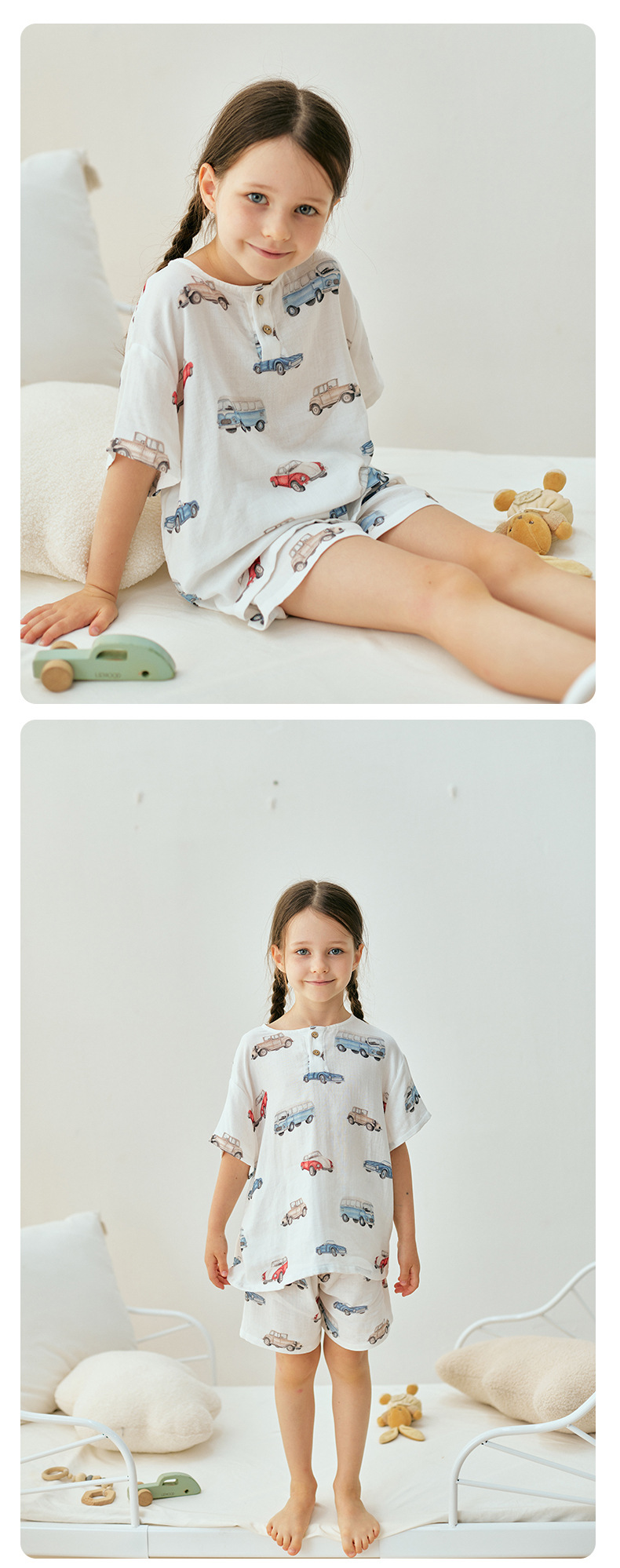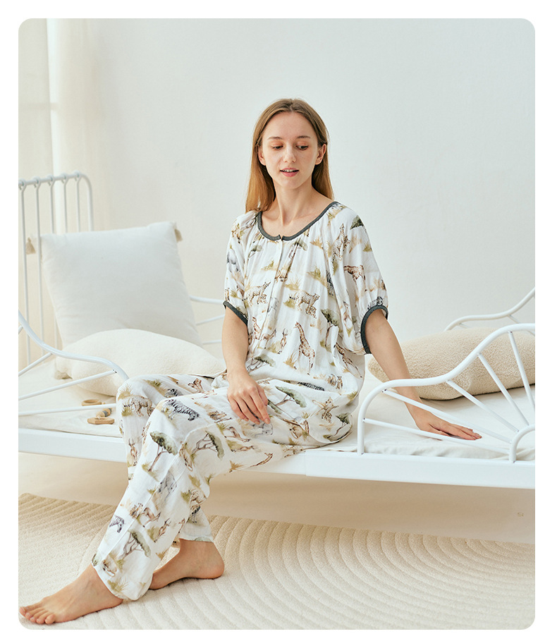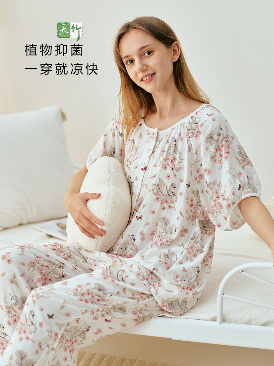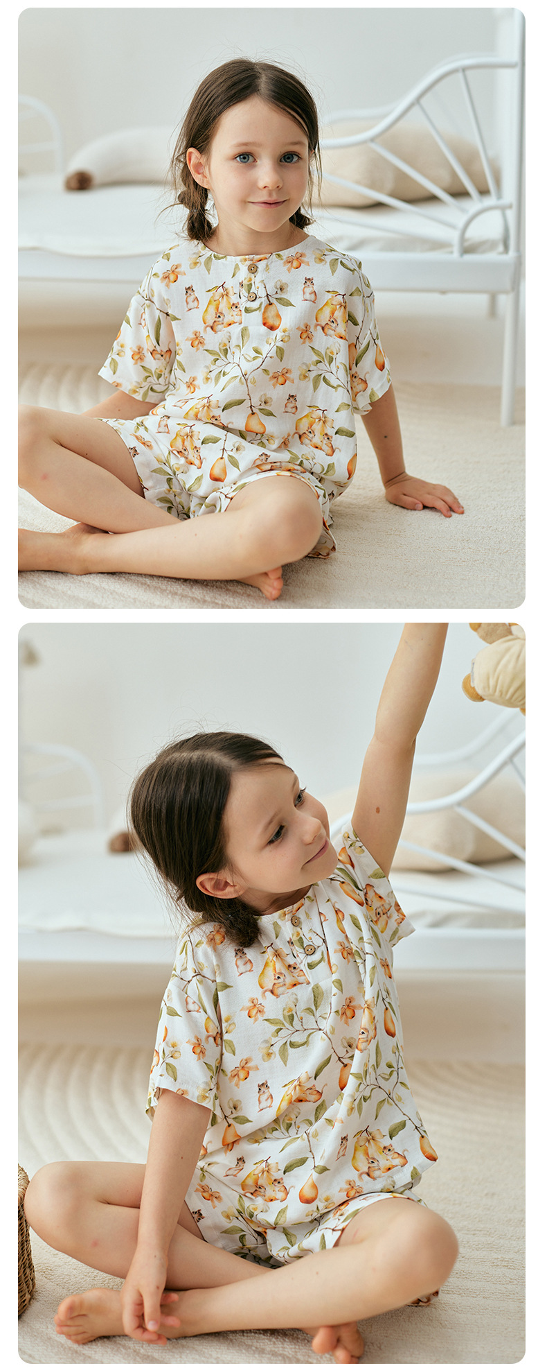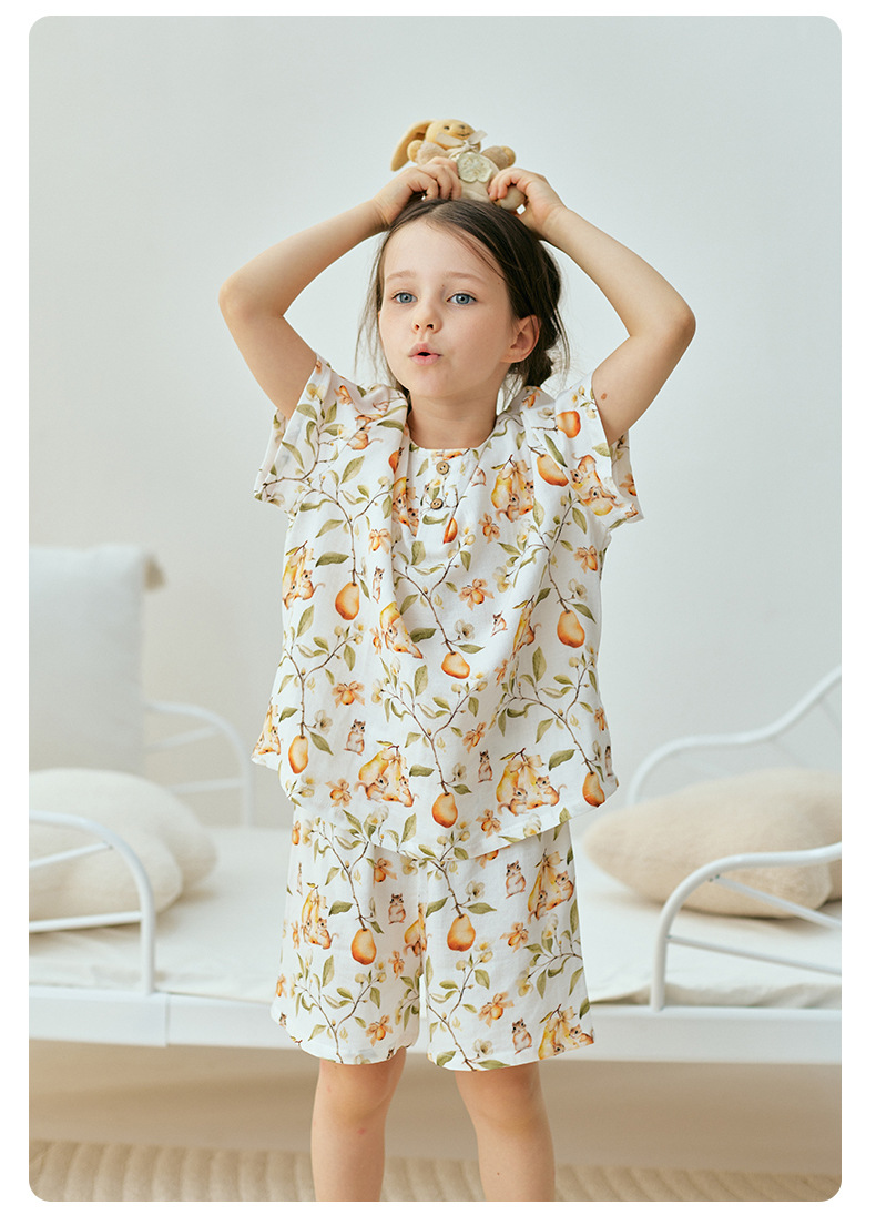 봄과 여름 대나무 섬유 얇은 유아 소년과 소녀 에어컨 셔츠 모기 방지 바지 부모-자식 어린이 가정 의류 잠옷스토어 가기