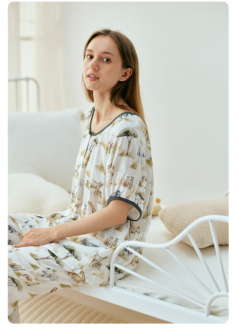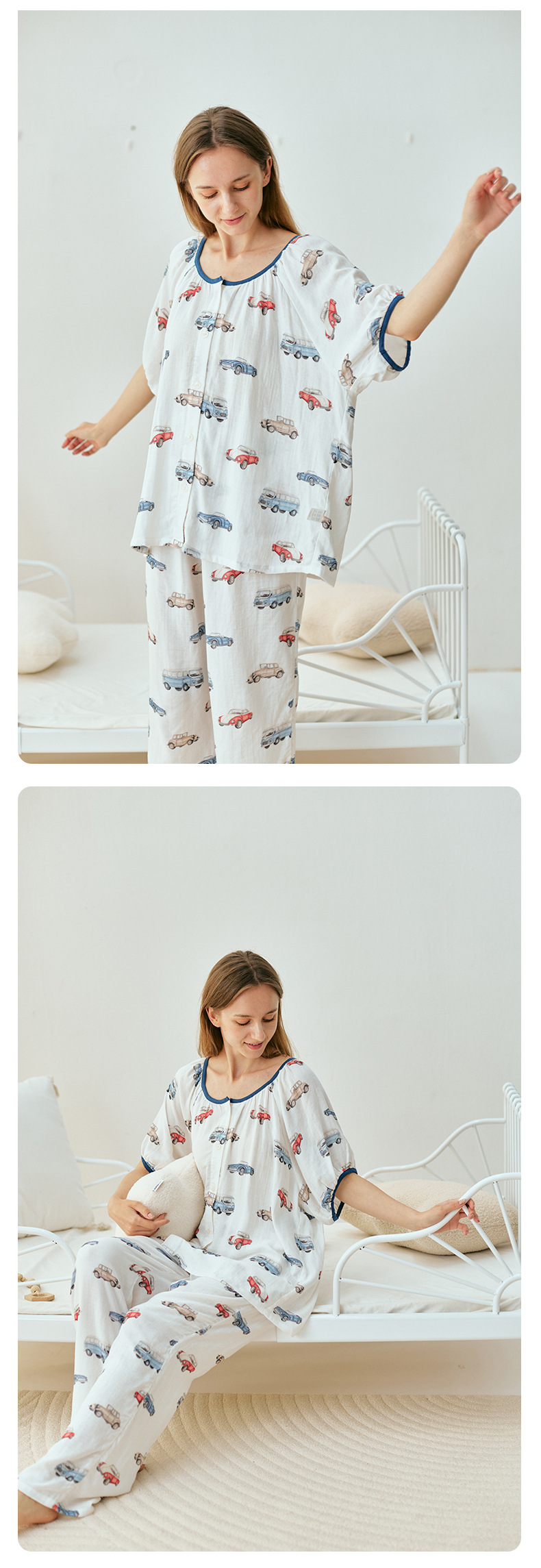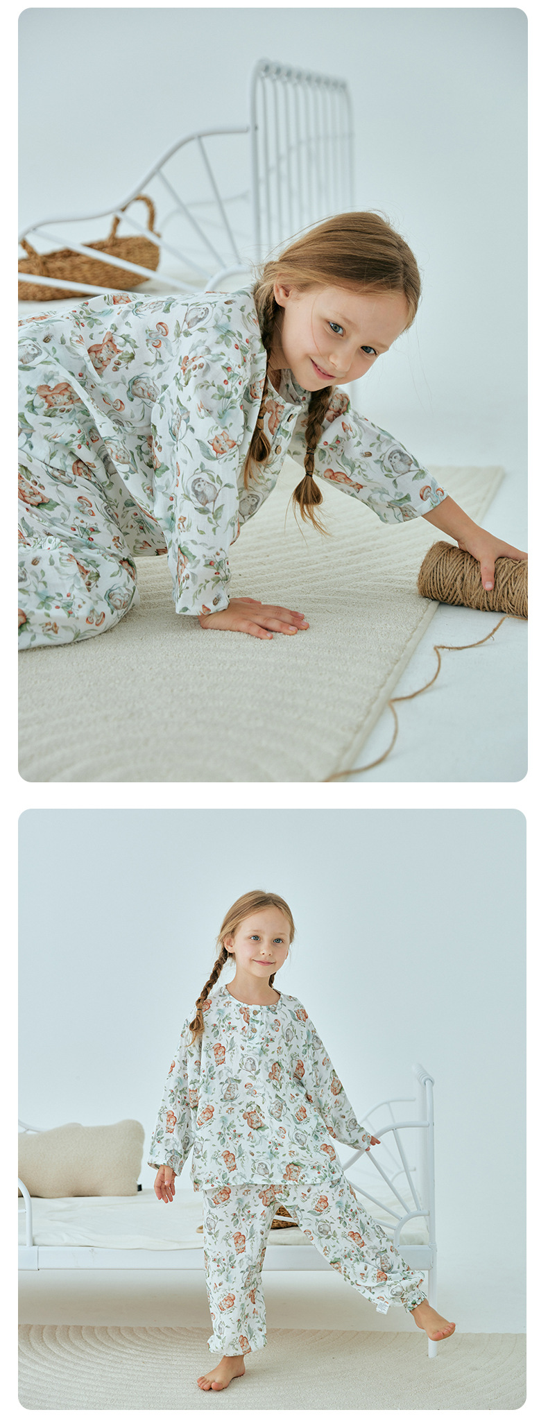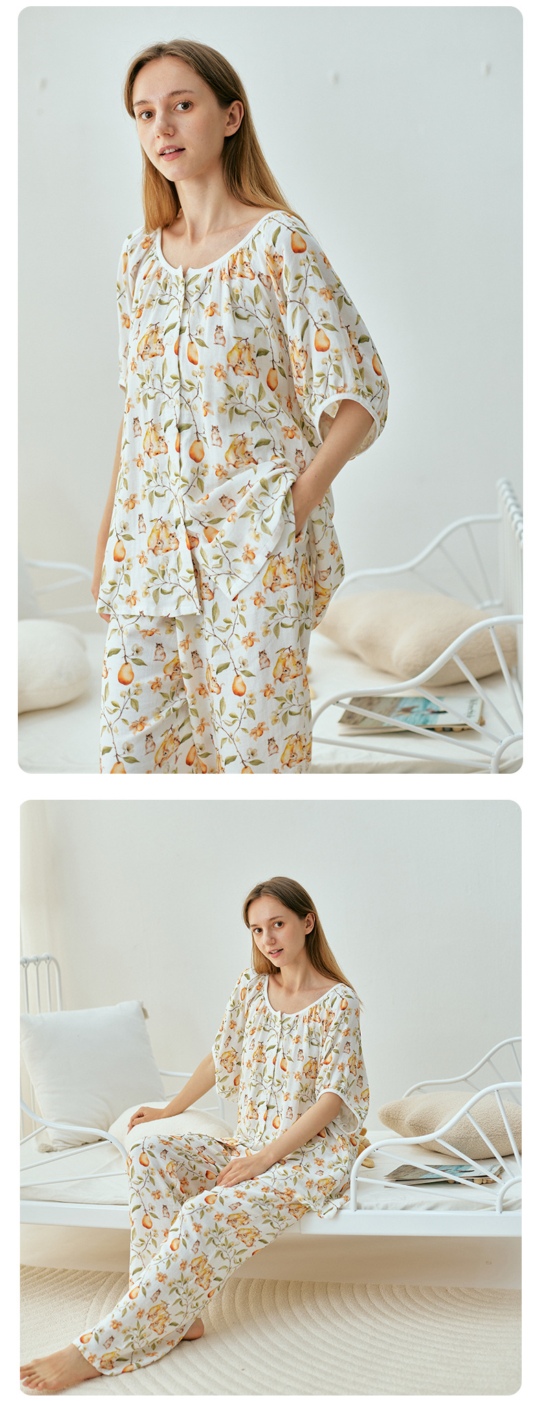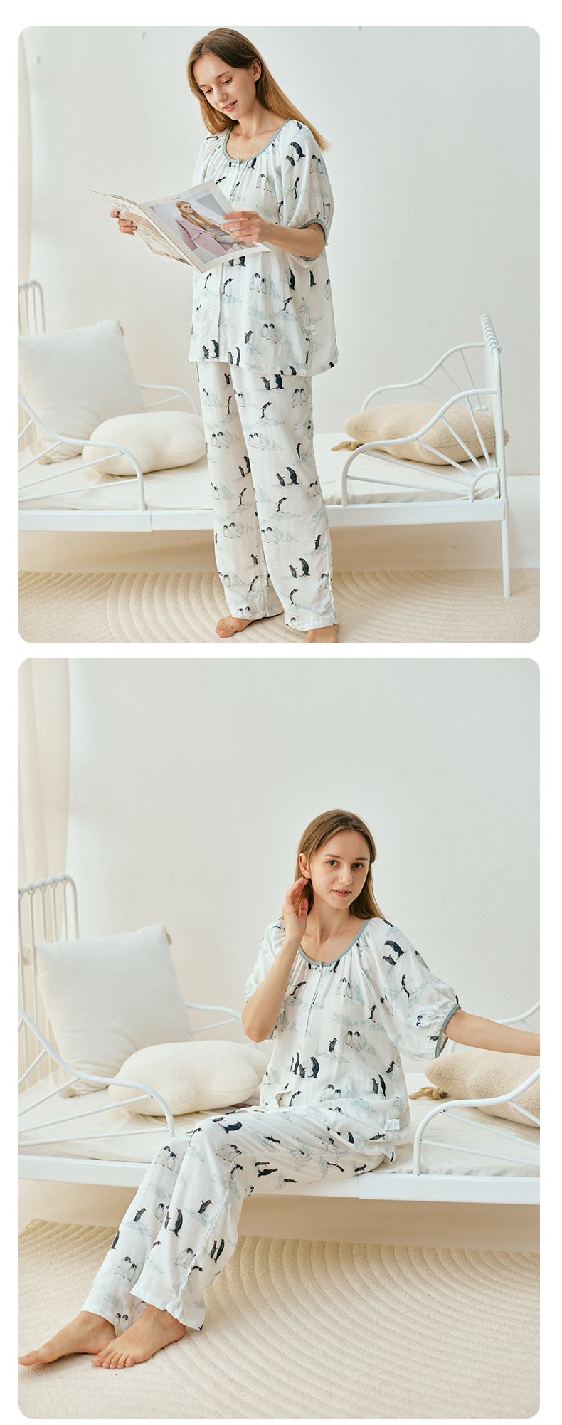 봄과 여름 대나무 섬유 얇은 유아 소년과 소녀 에어컨 셔츠 모기 방지 바지 부모-자식 어린이 가정 의류 잠옷스토어 가기
