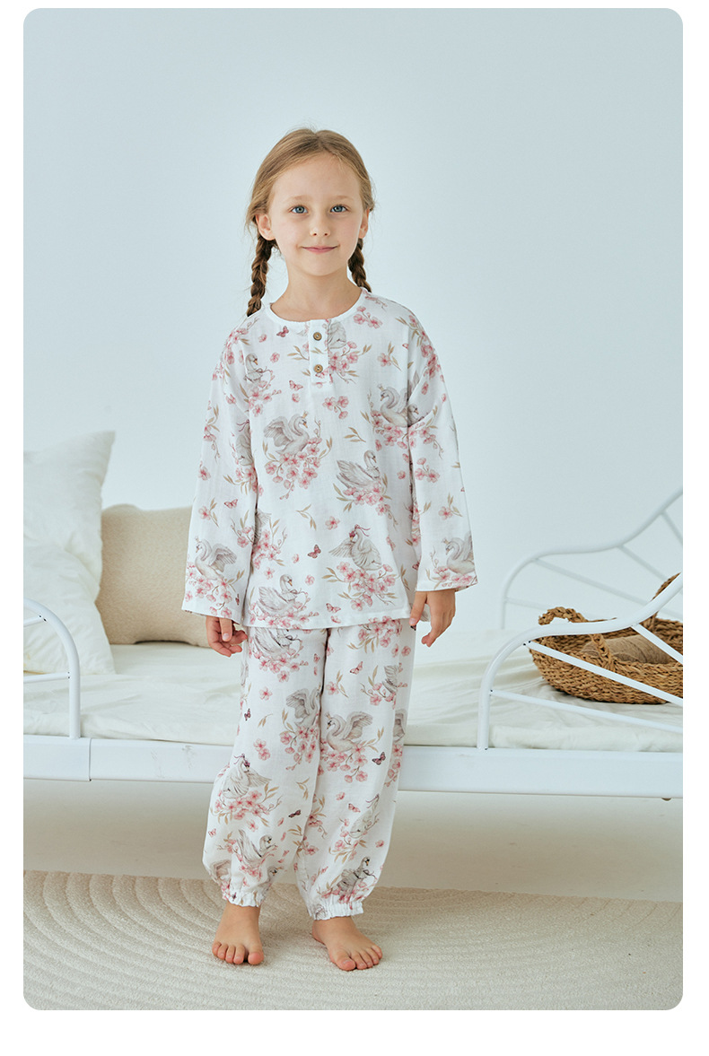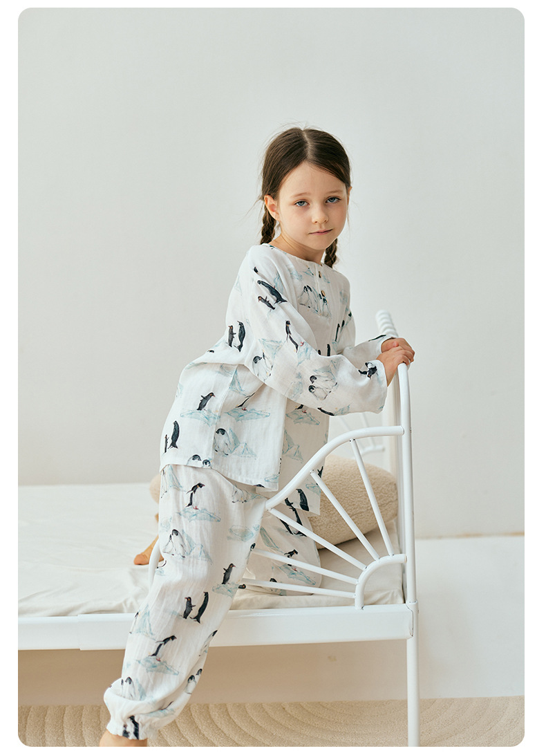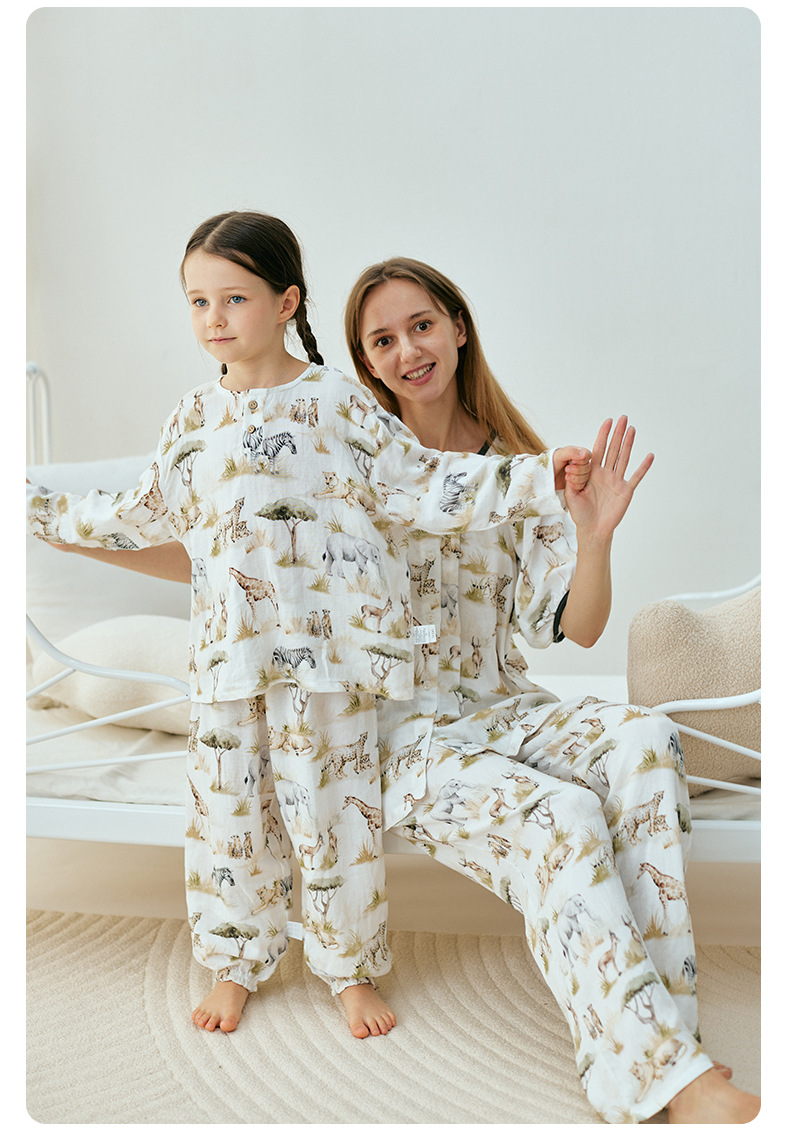 봄과 여름 대나무 섬유 얇은 유아 소년과 소녀 에어컨 셔츠 모기 방지 바지 부모-자식 어린이 가정 의류 잠옷