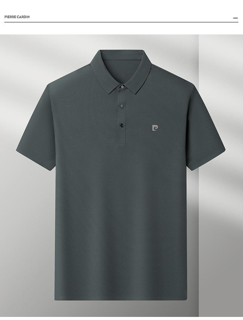 皮尔卡丹男士冰丝无痕短袖T恤夏季时尚华夫格休闲纯色翻领Polo衫
