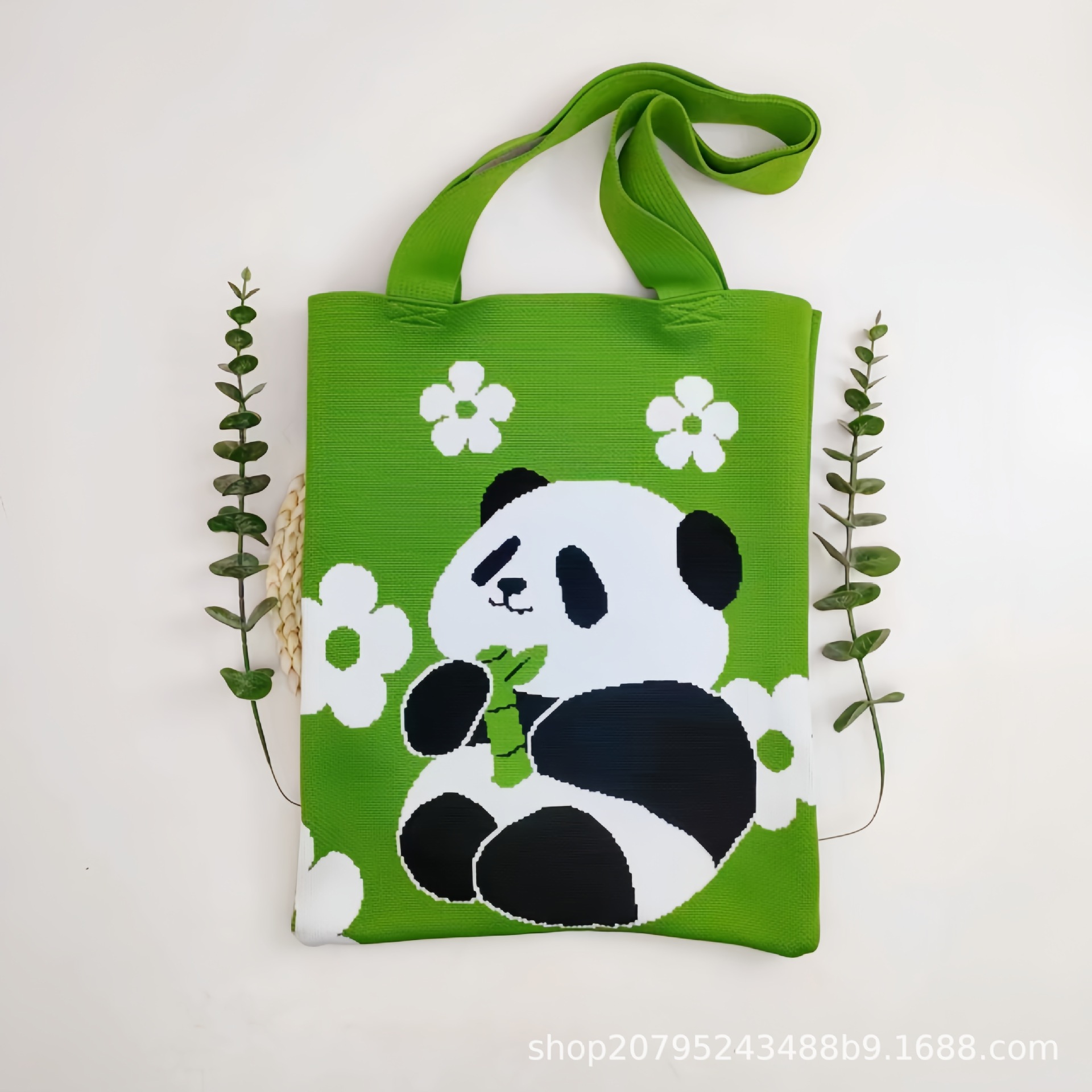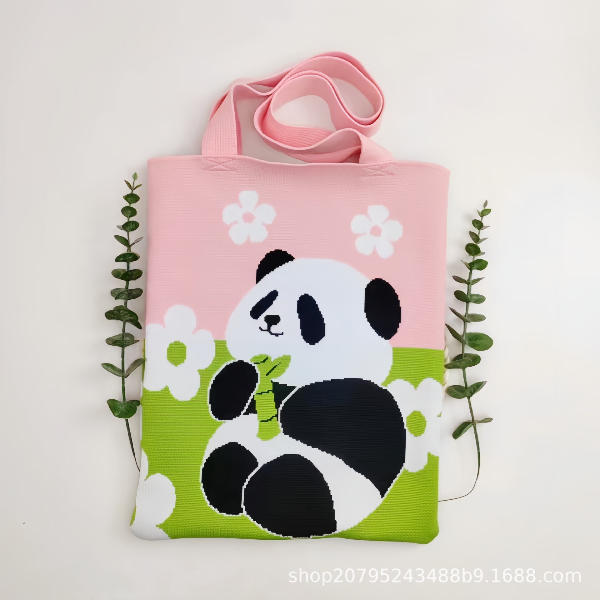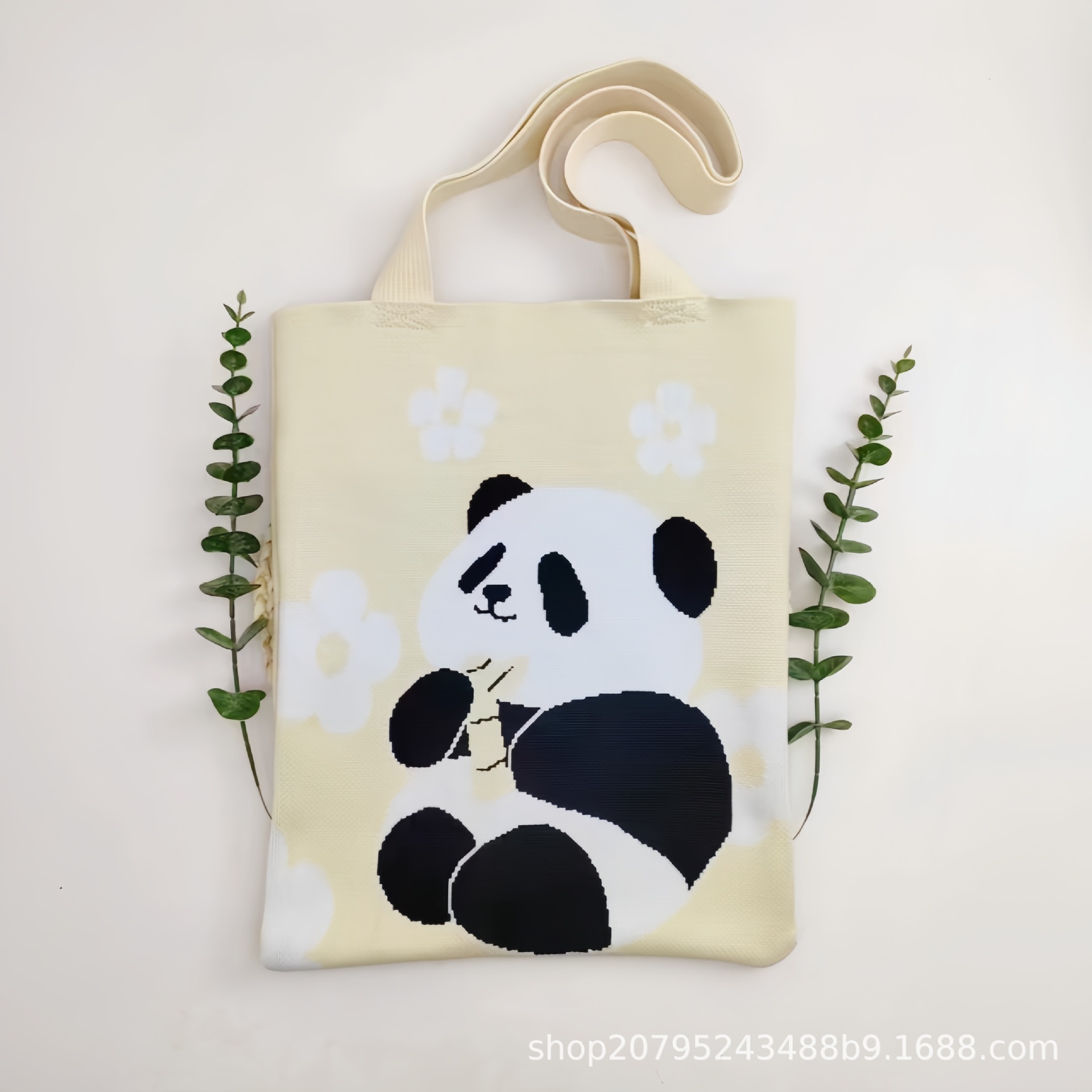 즉시 출고 도매 청두 팬더 할아버지와 동일한 스타일의 숄더백 귀여운 만화 손가방 선물용 대용량 니트 가방