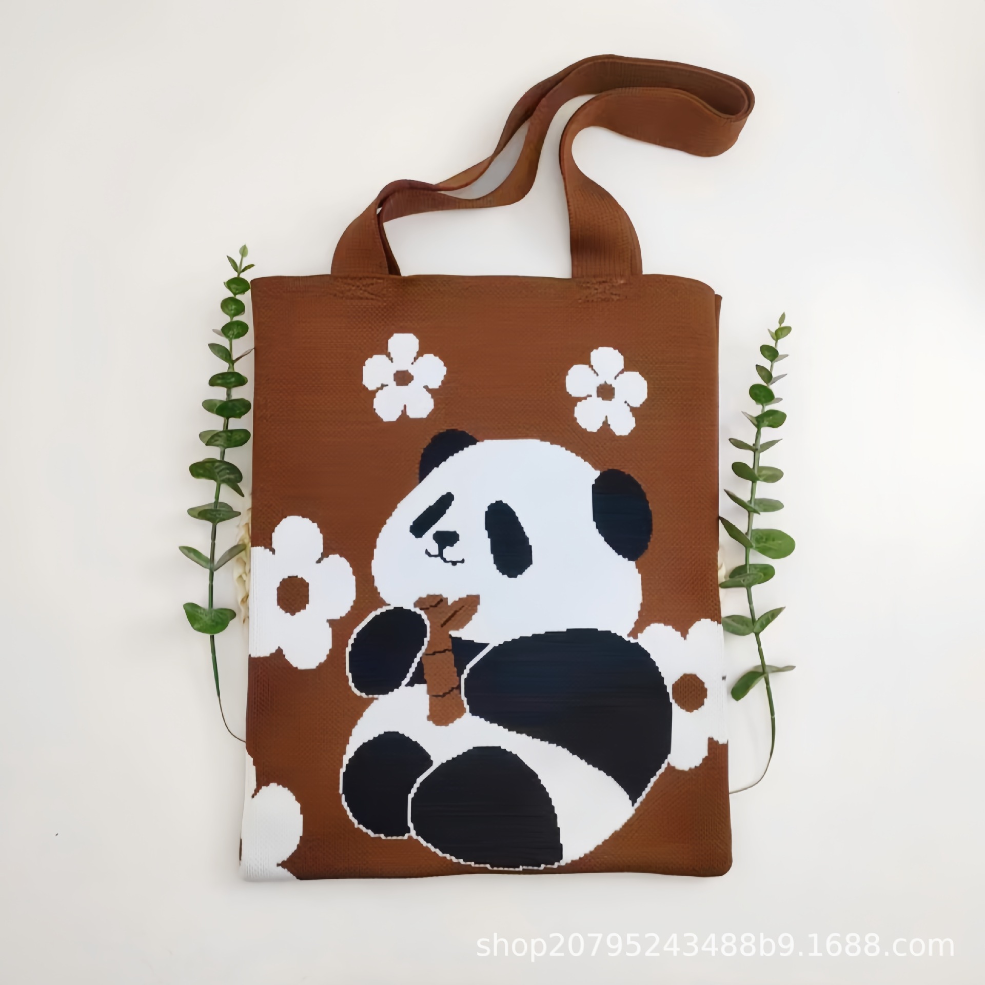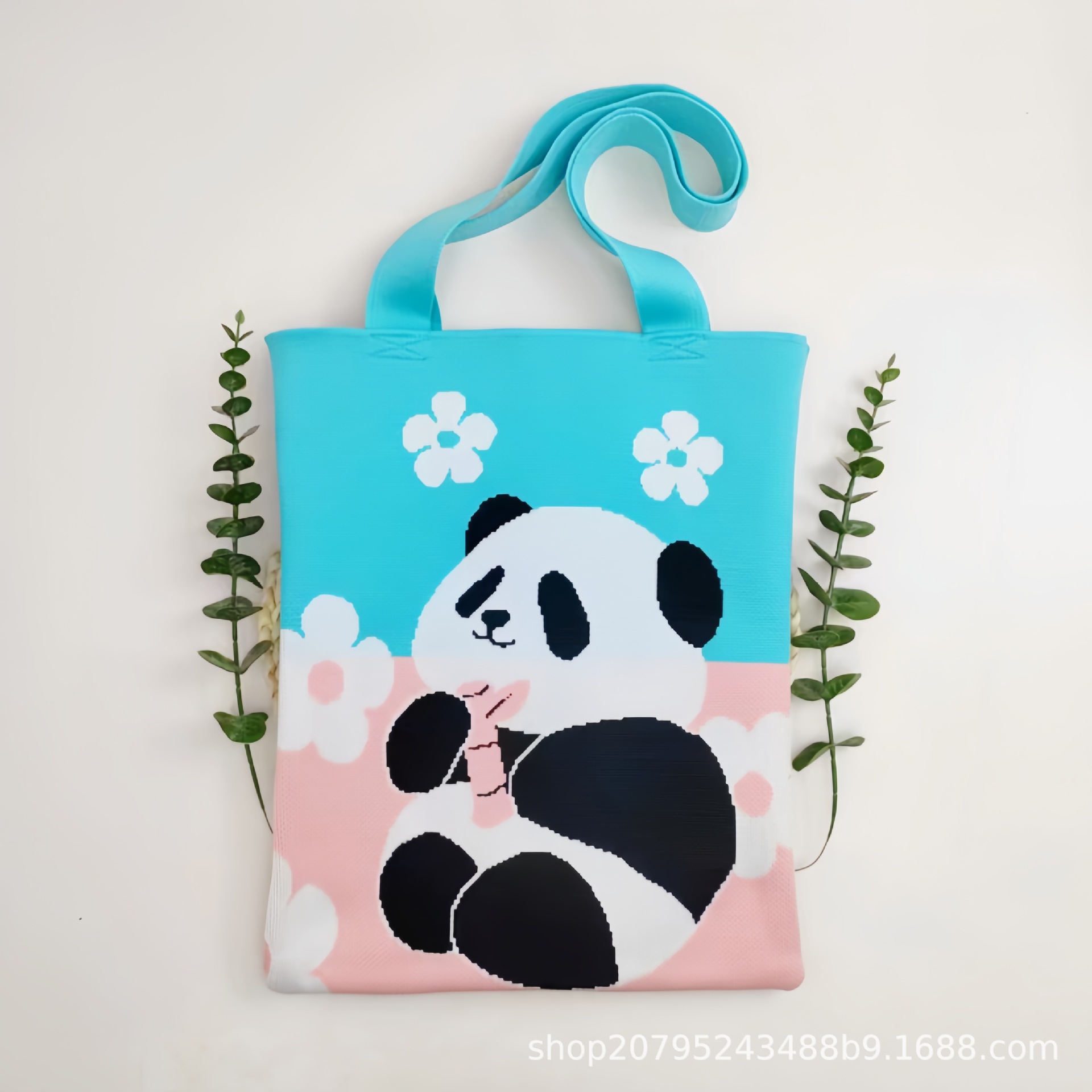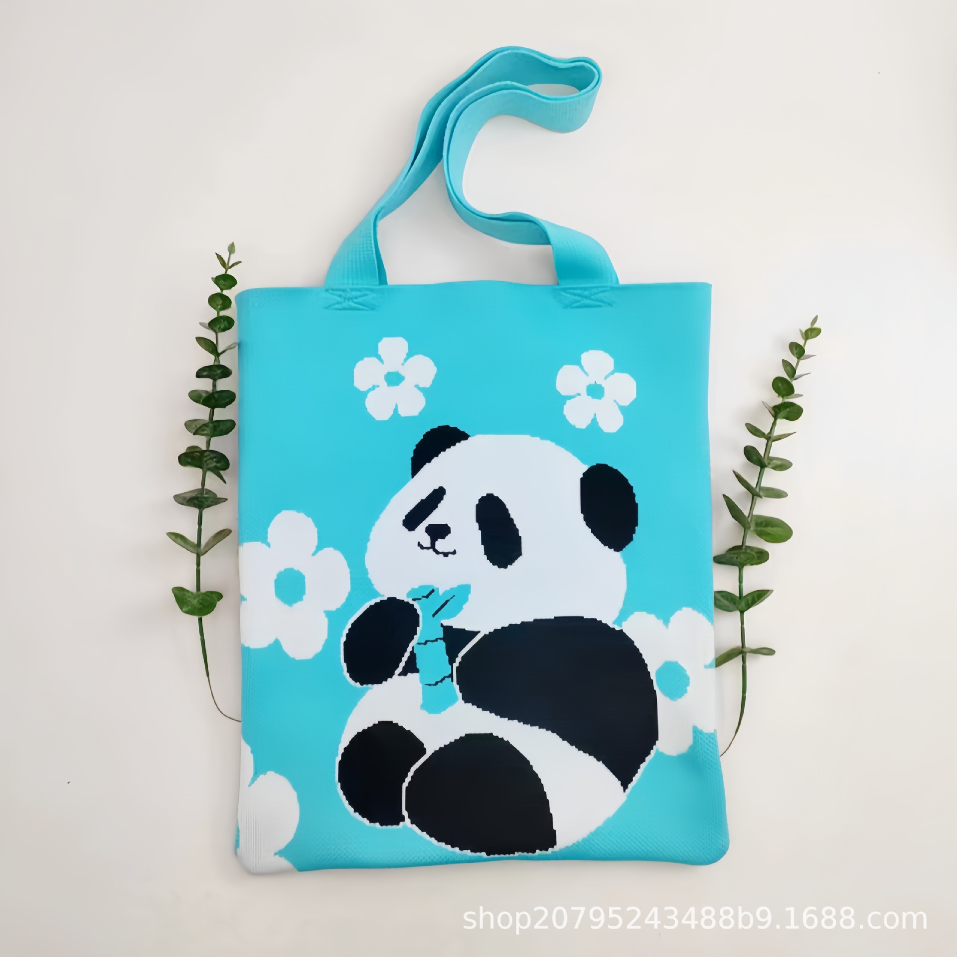 즉시 출고 도매 청두 팬더 할아버지와 동일한 스타일의 숄더백 귀여운 만화 손가방 선물용 대용량 니트 가방