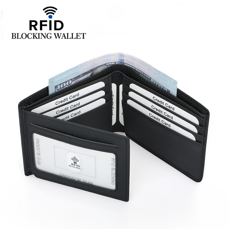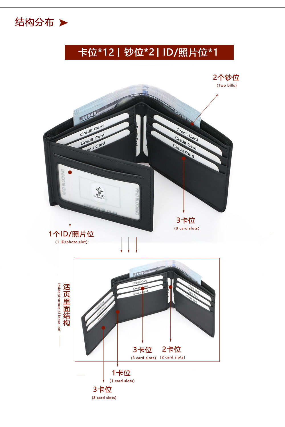 2024 새로운 남자의 짧은 지갑 멀티 카드 RFID 도난 방지 브러시 가죽 지갑 도매스토어 가기