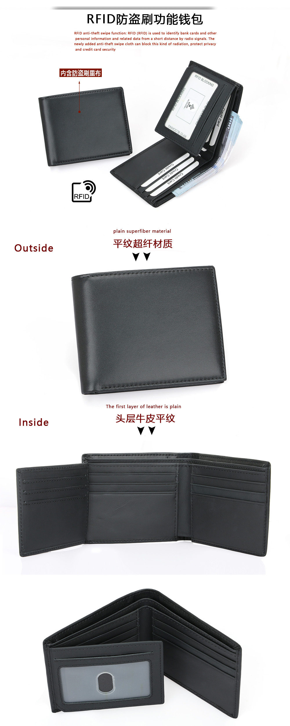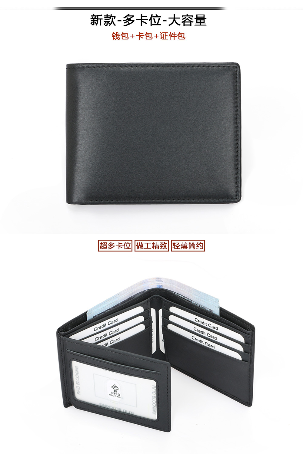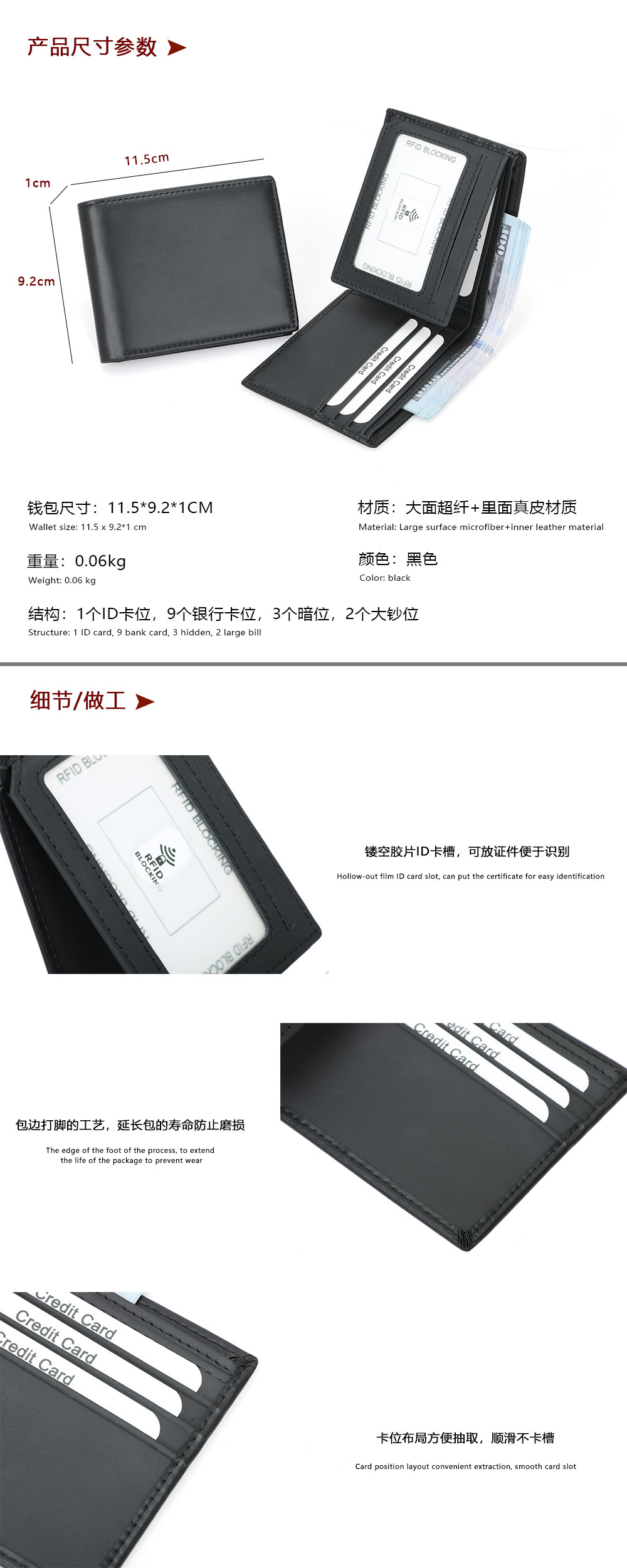 2024 새로운 남자의 짧은 지갑 멀티 카드 RFID 도난 방지 브러시 가죽 지갑 도매
