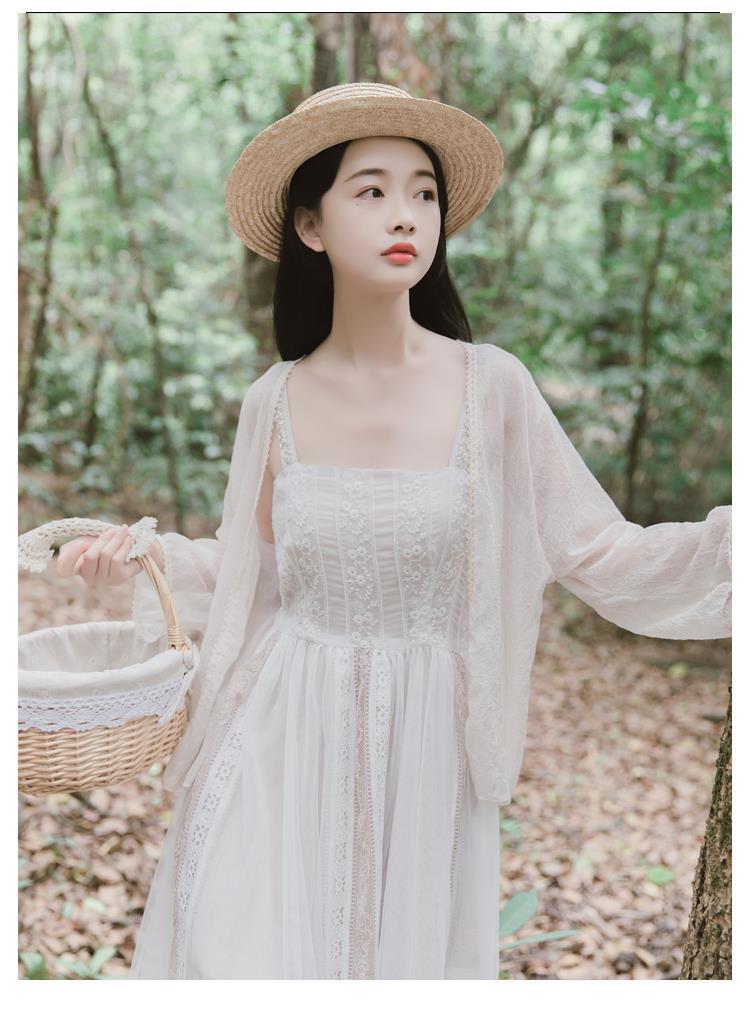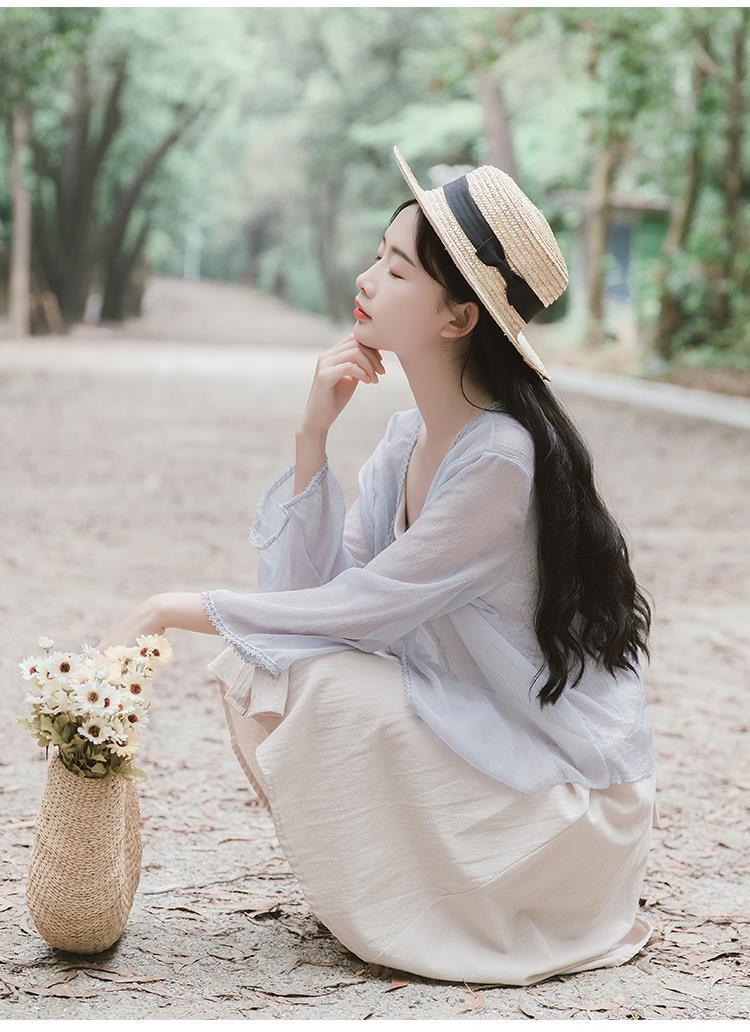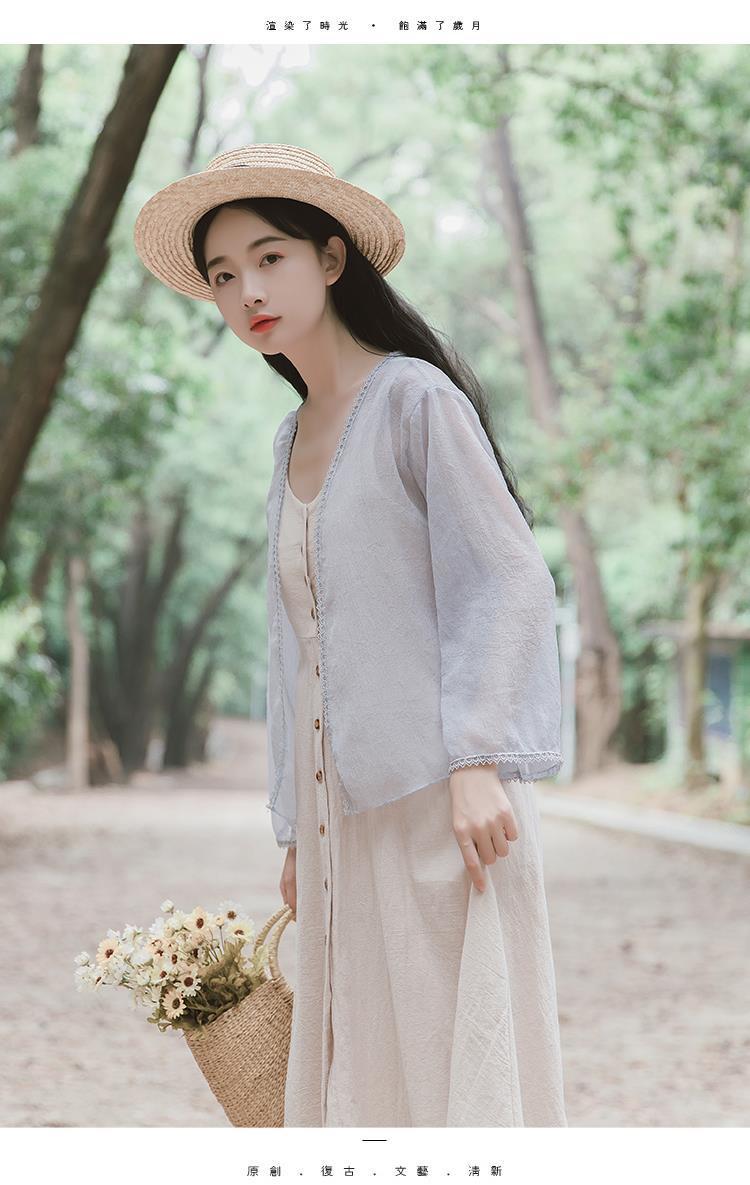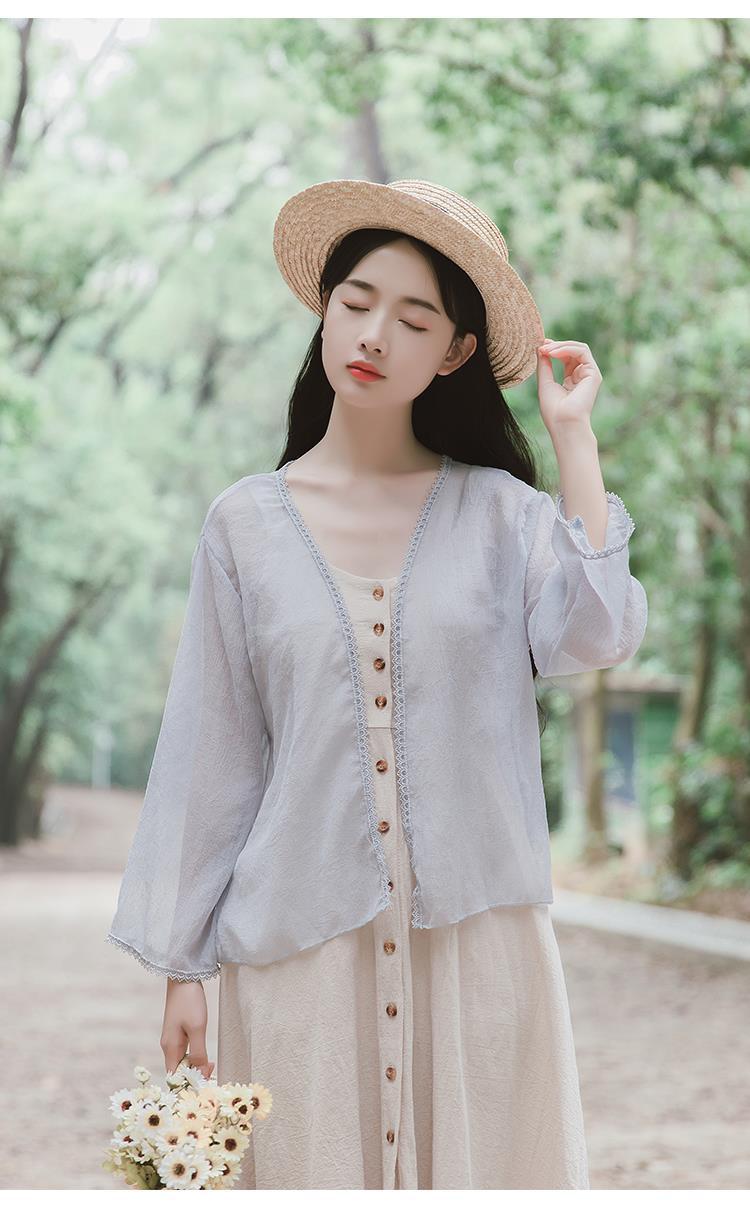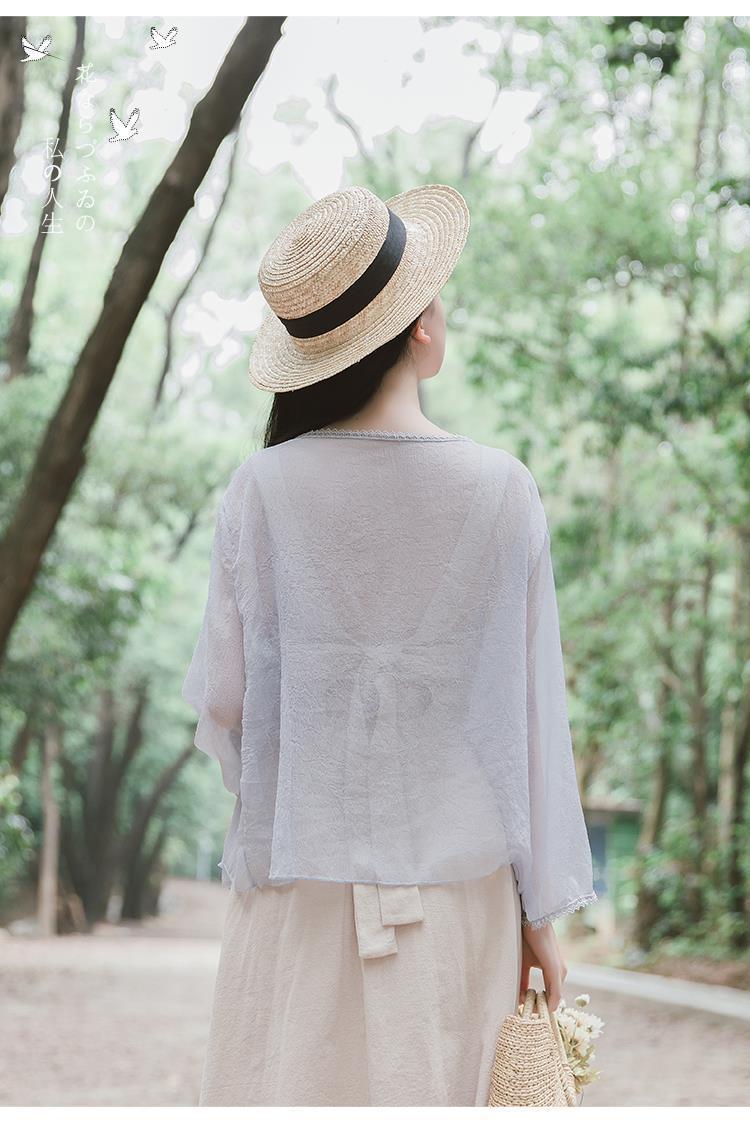 태양 보호 의류 요정 여성 짧은 시폰 올 매치 여름 스커트 오버레이 얇은 코트 작은 목도리 메쉬 태양 보호 블라우스스토어 가기