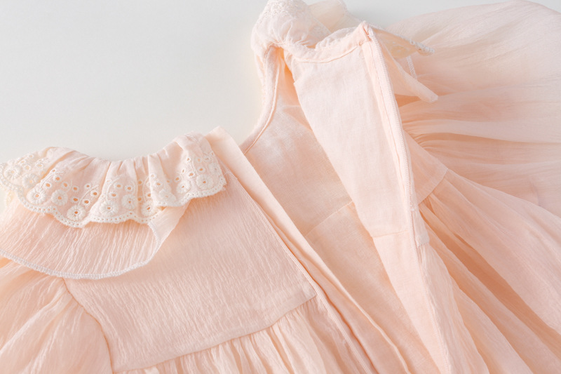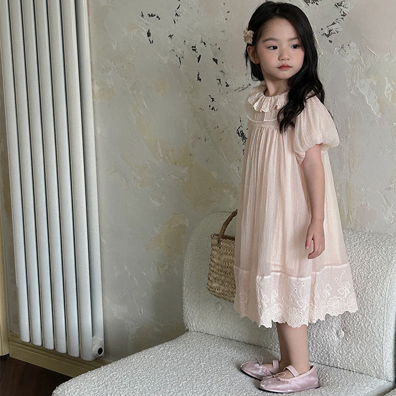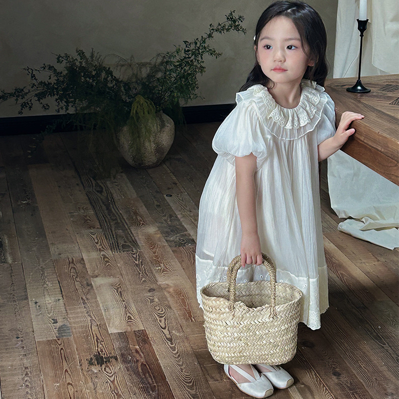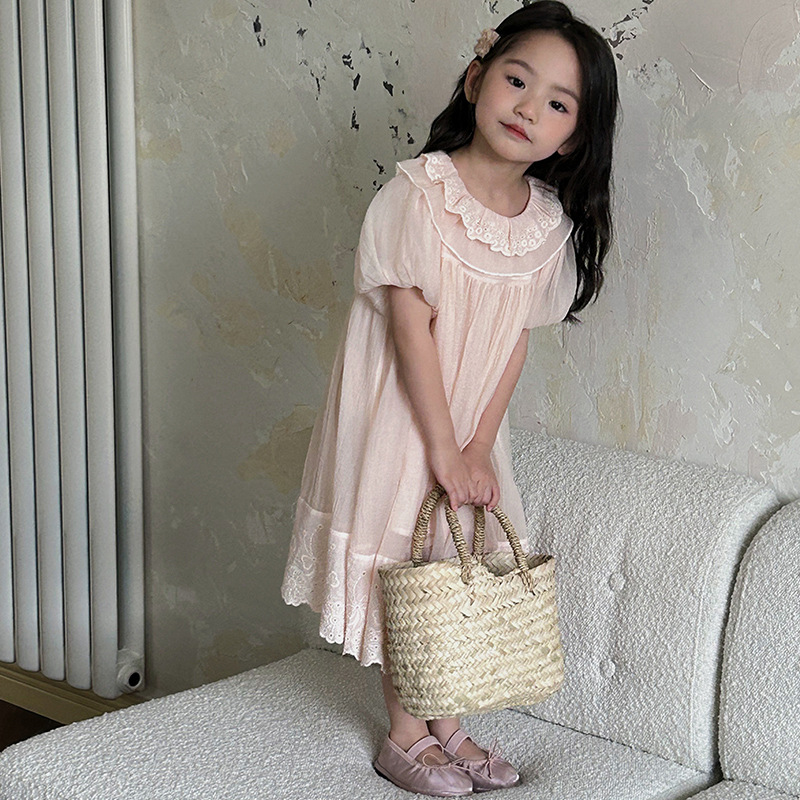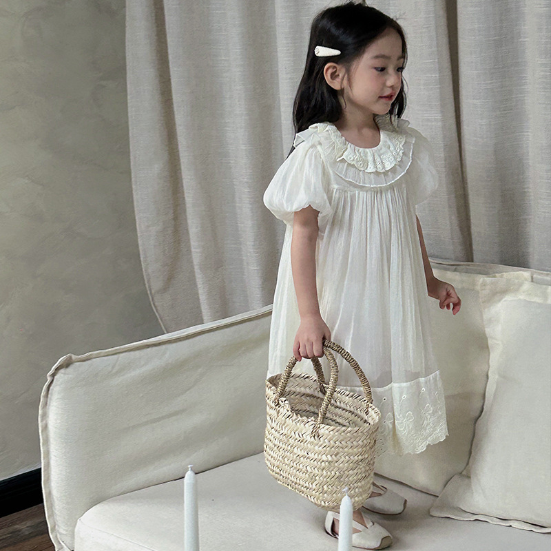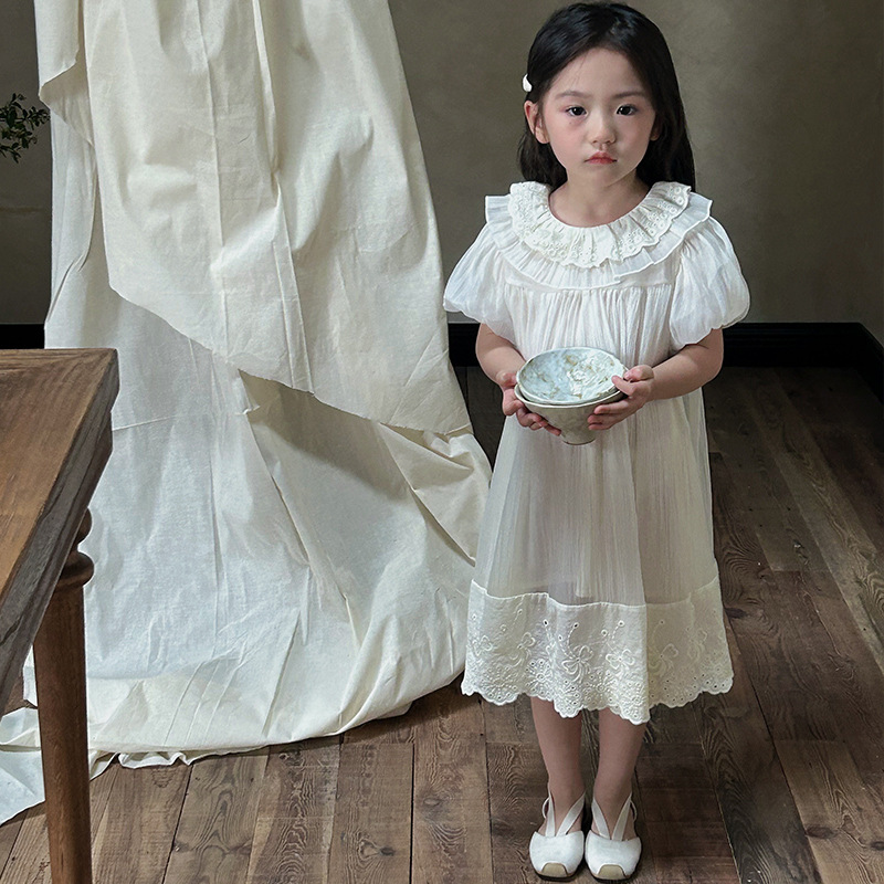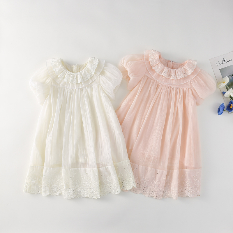 한국 스타일 소녀의 원피스 2024 여름 새로운 어린이 공주 원피스 아기의 레이스 메쉬 원피스 아동복스토어 가기