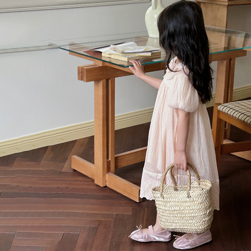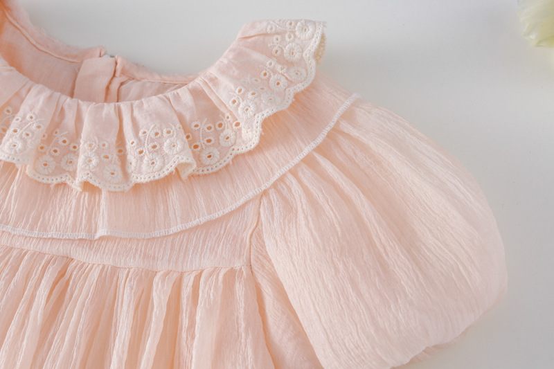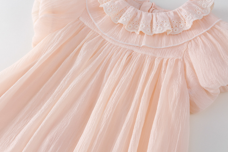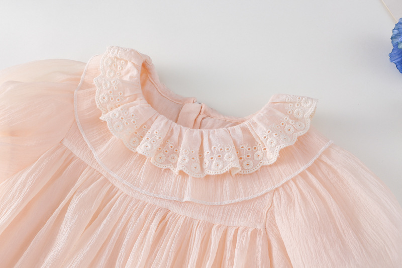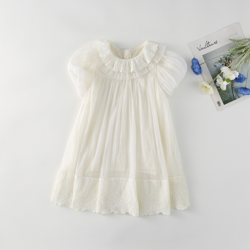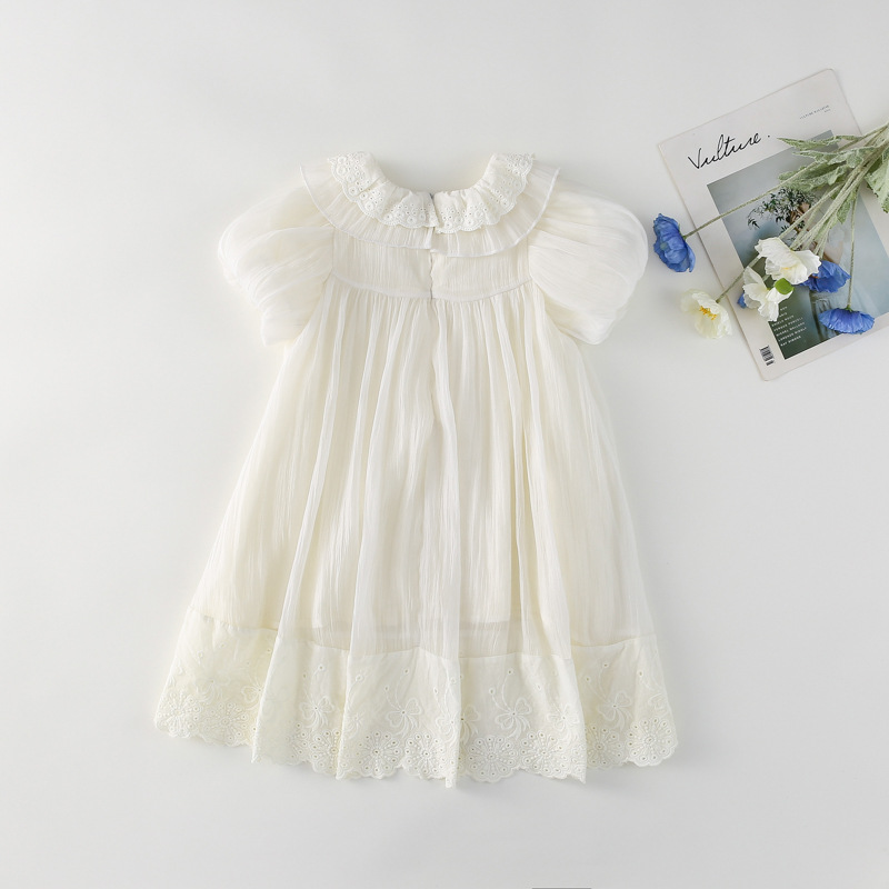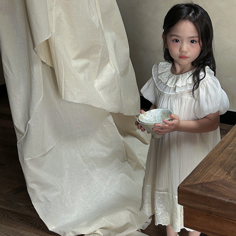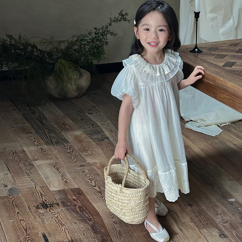 한국 스타일 소녀의 원피스 2024 여름 새로운 어린이 공주 원피스 아기의 레이스 메쉬 원피스 아동복스토어 가기