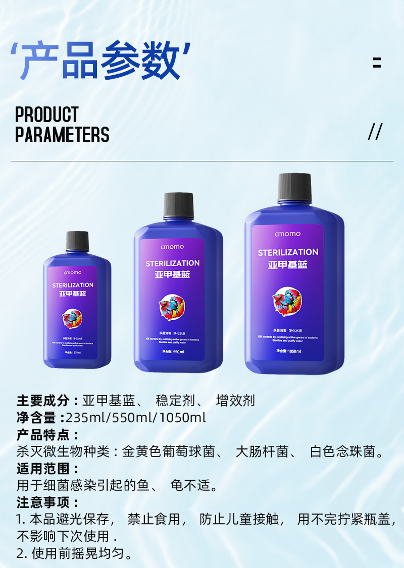 메틸렌 블루 어항 물고기 안정적인 수질 소독 및 살균 수족관 양어 양식업 질산화 박테리아 용액