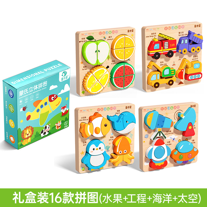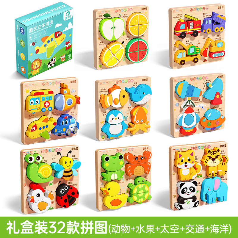 유아용 입체 퍼즐 보드 나무 몬테소리 조기 교육 교육용 퍼즐 블록 아기 0~3세 남아 여아 장난감