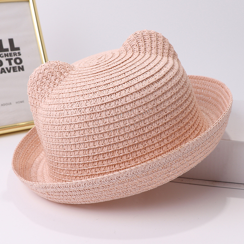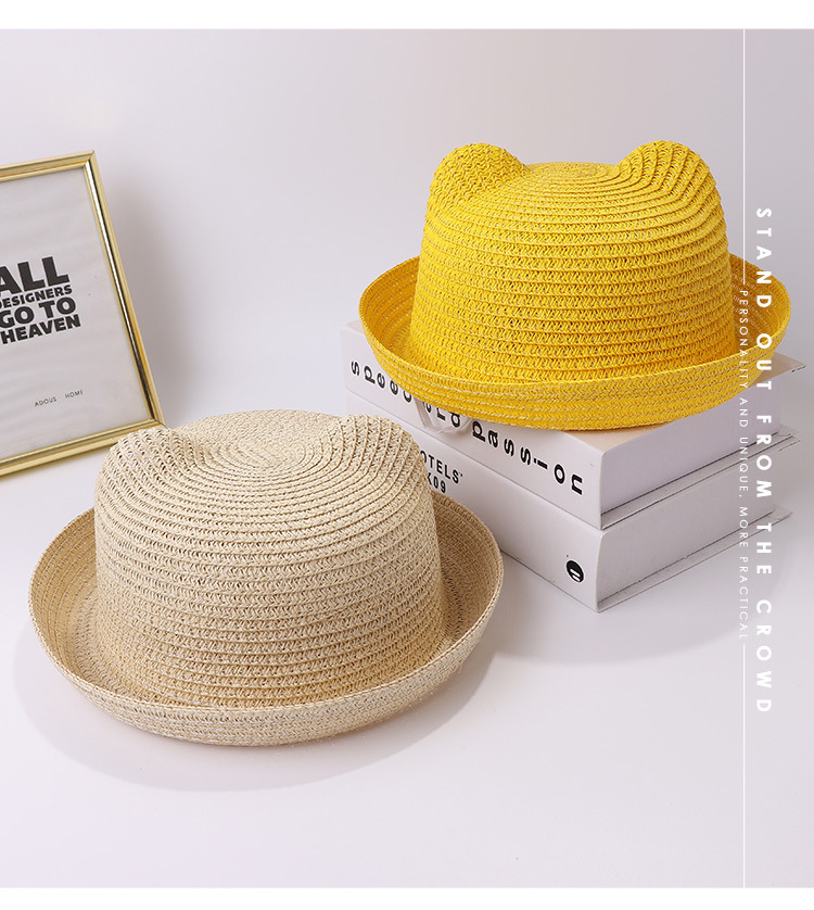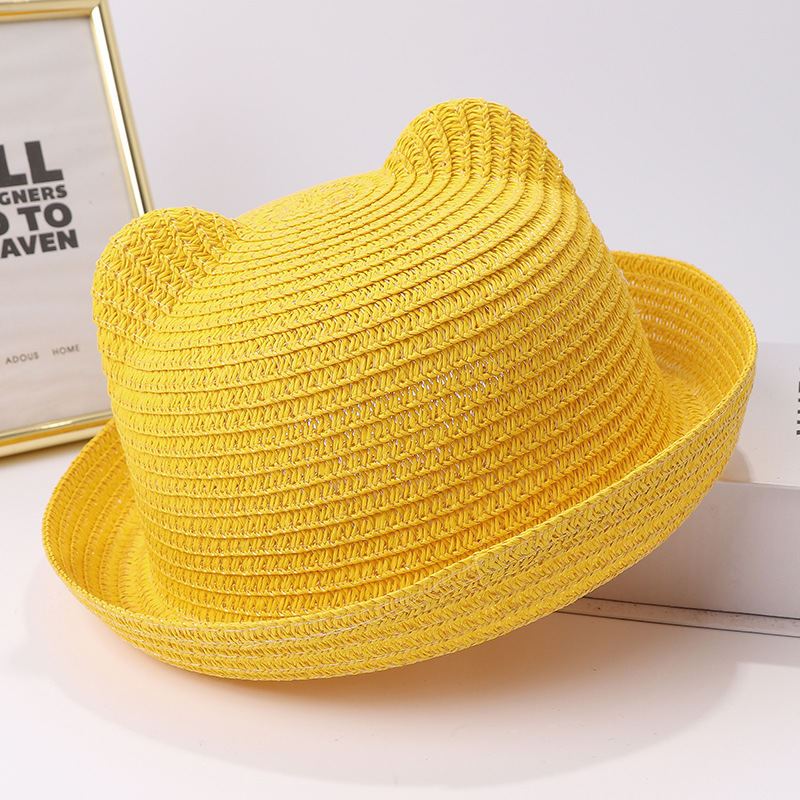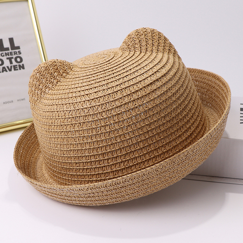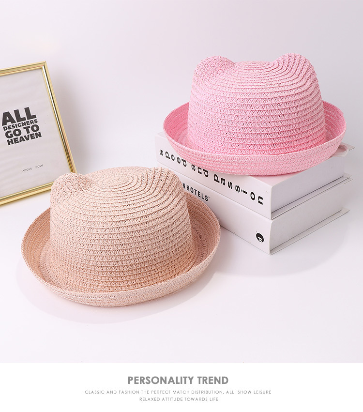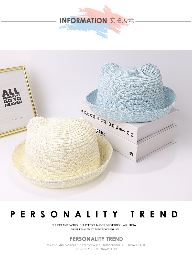 한국의 새로운 여름 모자 귀여운 고양이 귀 단색 밀짚 모자 어린이 만화 야외 태양 모자 도매스토어 가기